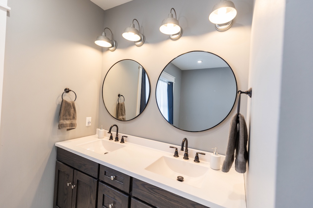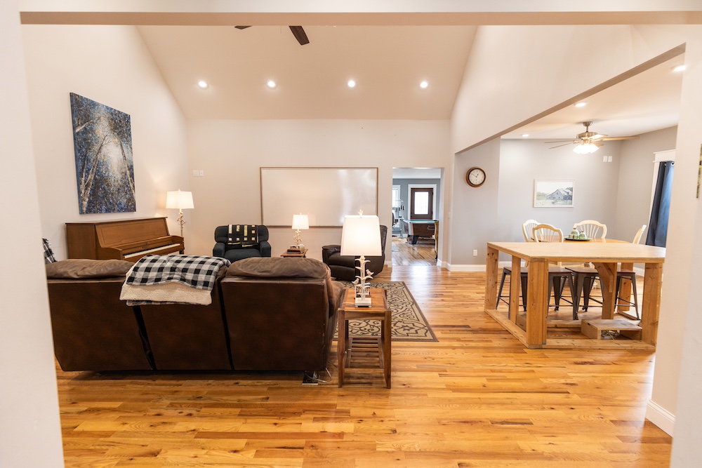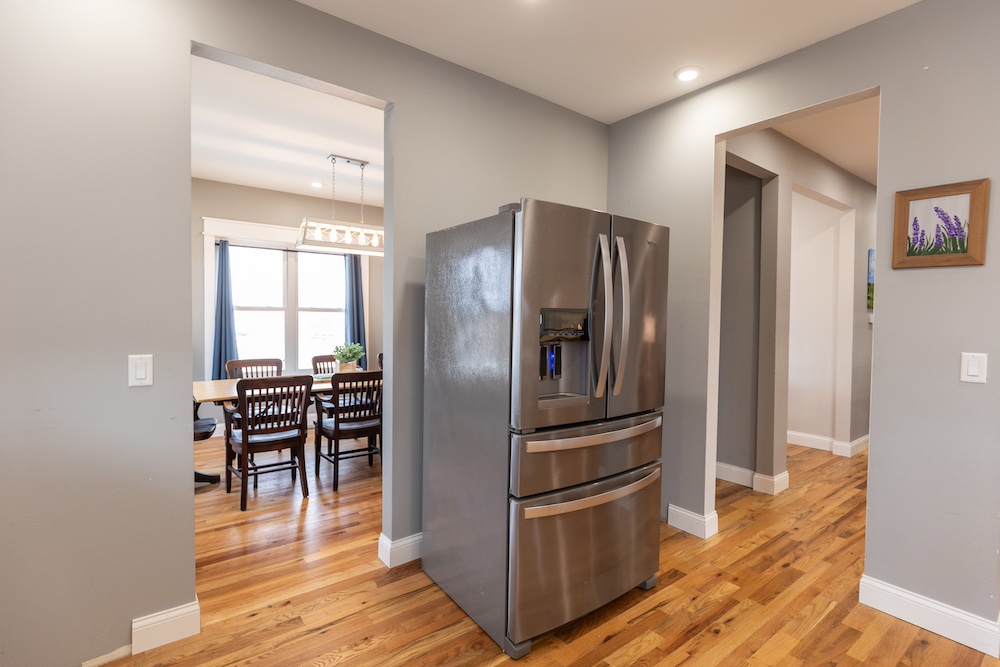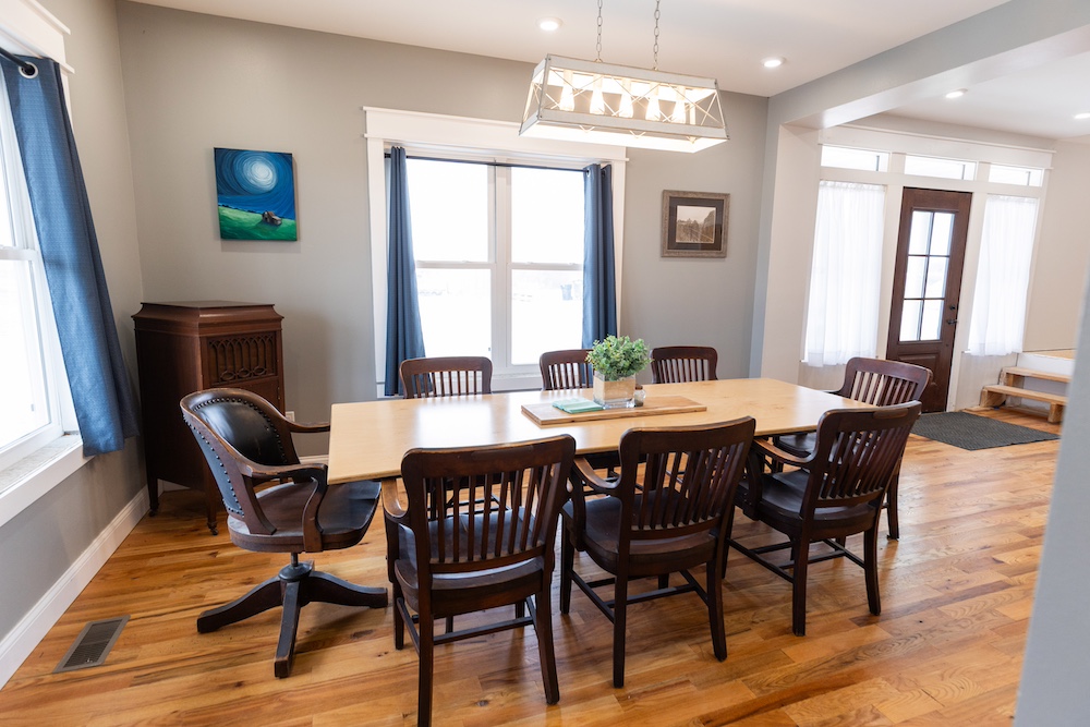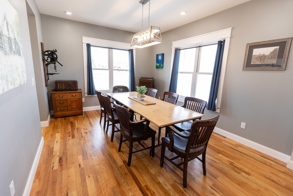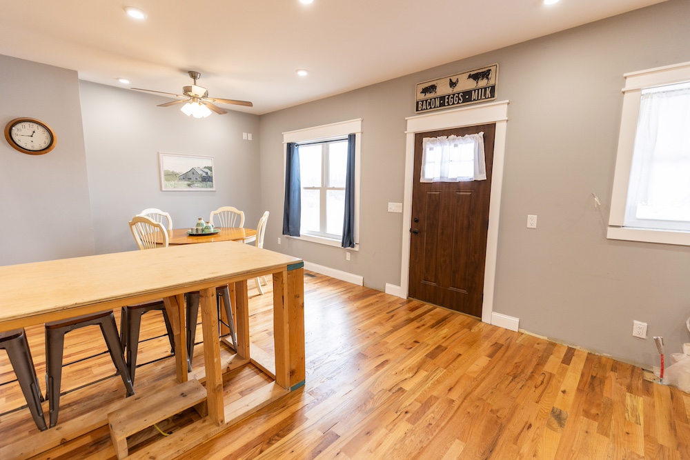 - Red oak hardwood floors, solid wood doors and farmhouse-style finishes