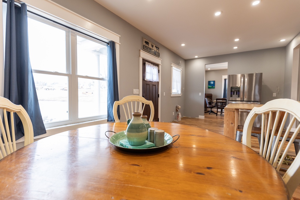 Utilities are well-suited for modern rural living, including reliable rural water service and high-speed fiber internet that is available along the road. A 90-foot wraparound concrete porch is a defining feature of the home and an easy place to enjoy quiet mornings and evenings, watching the light change across the land.