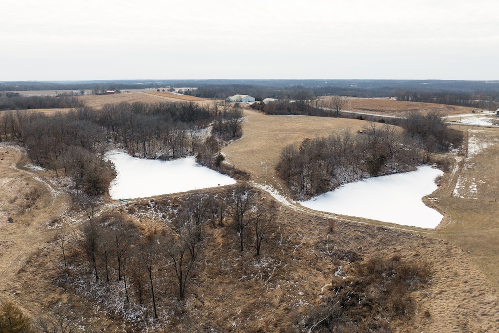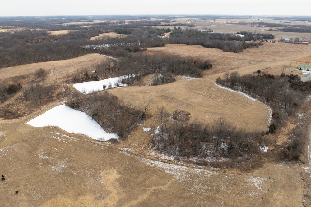 - Rolling pasture, hay ground, timbered draws, two ponds and open views