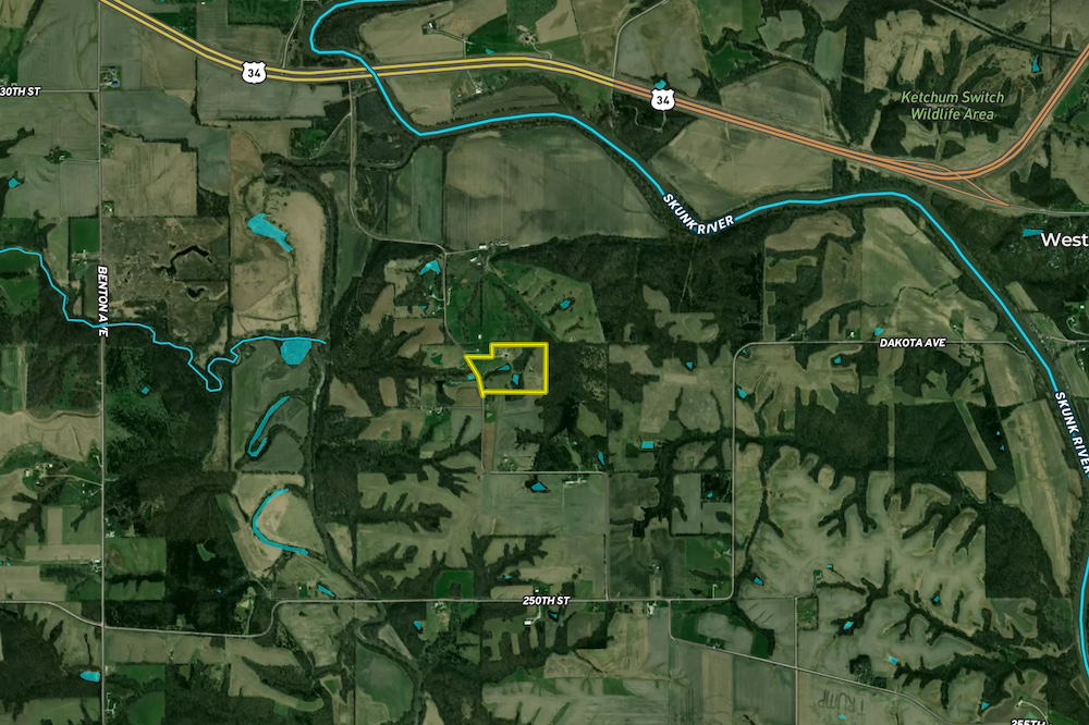 - Scenic 30-acre property in Henry County near Cedar Creek and the Skunk River