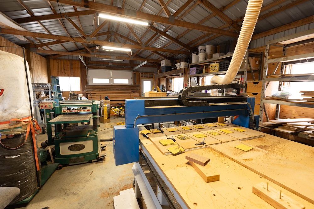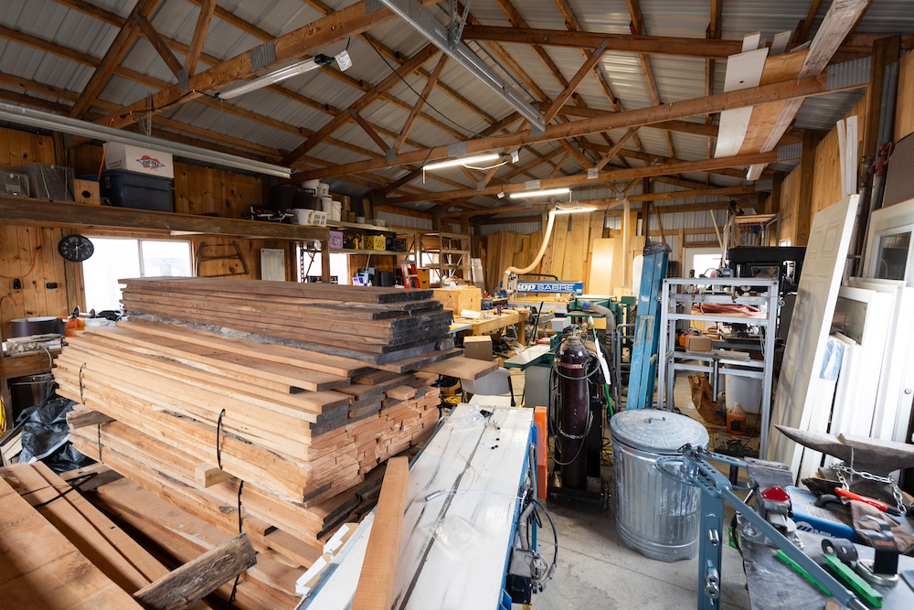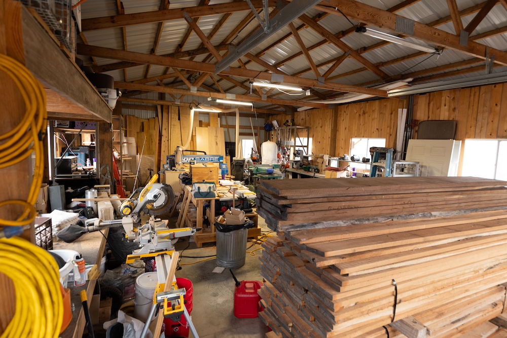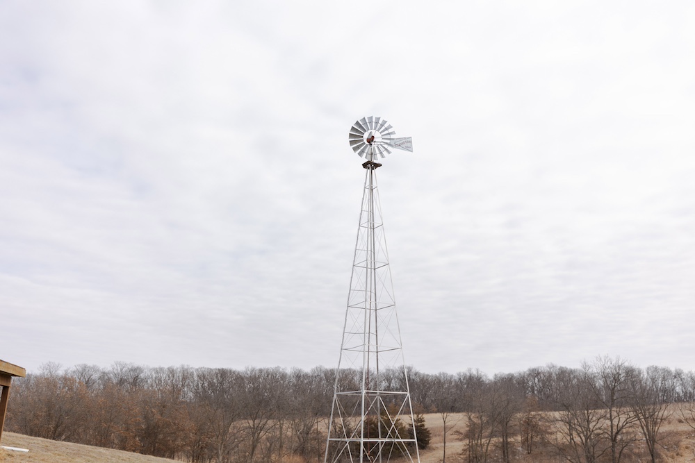 Outside, the property is set up for a sustainable farm-to-table lifestyle. The pasture is fenced for livestock, with approximately two acres currently enclosed and a loading yard in place. A newer perimeter fence runs along the northern boundary. Additional improvements include a 24’x40’ pole building with electric that is used as a wood shop, an RV electric hookup, mature fruit trees, and a tall windmill.