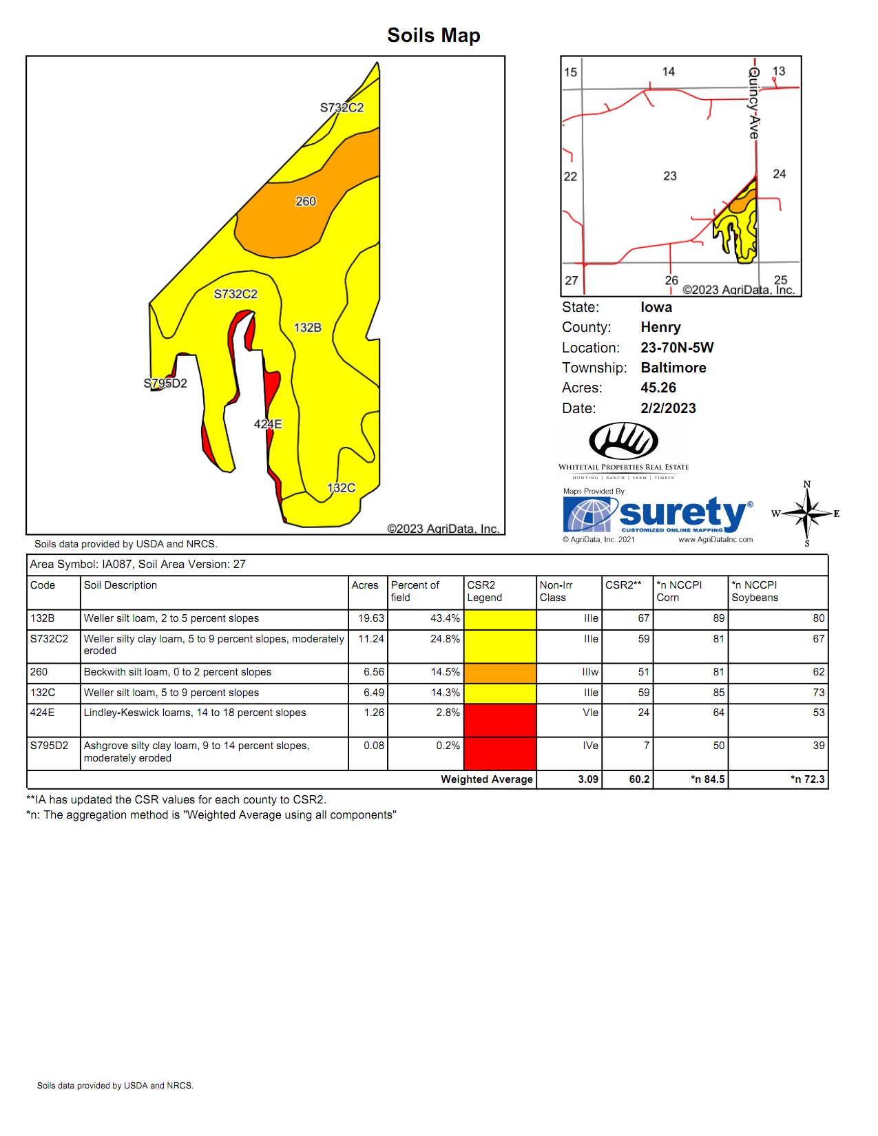 - Tillable: all tillable is in CRP currently, but has an average CSR2 of 60.2
