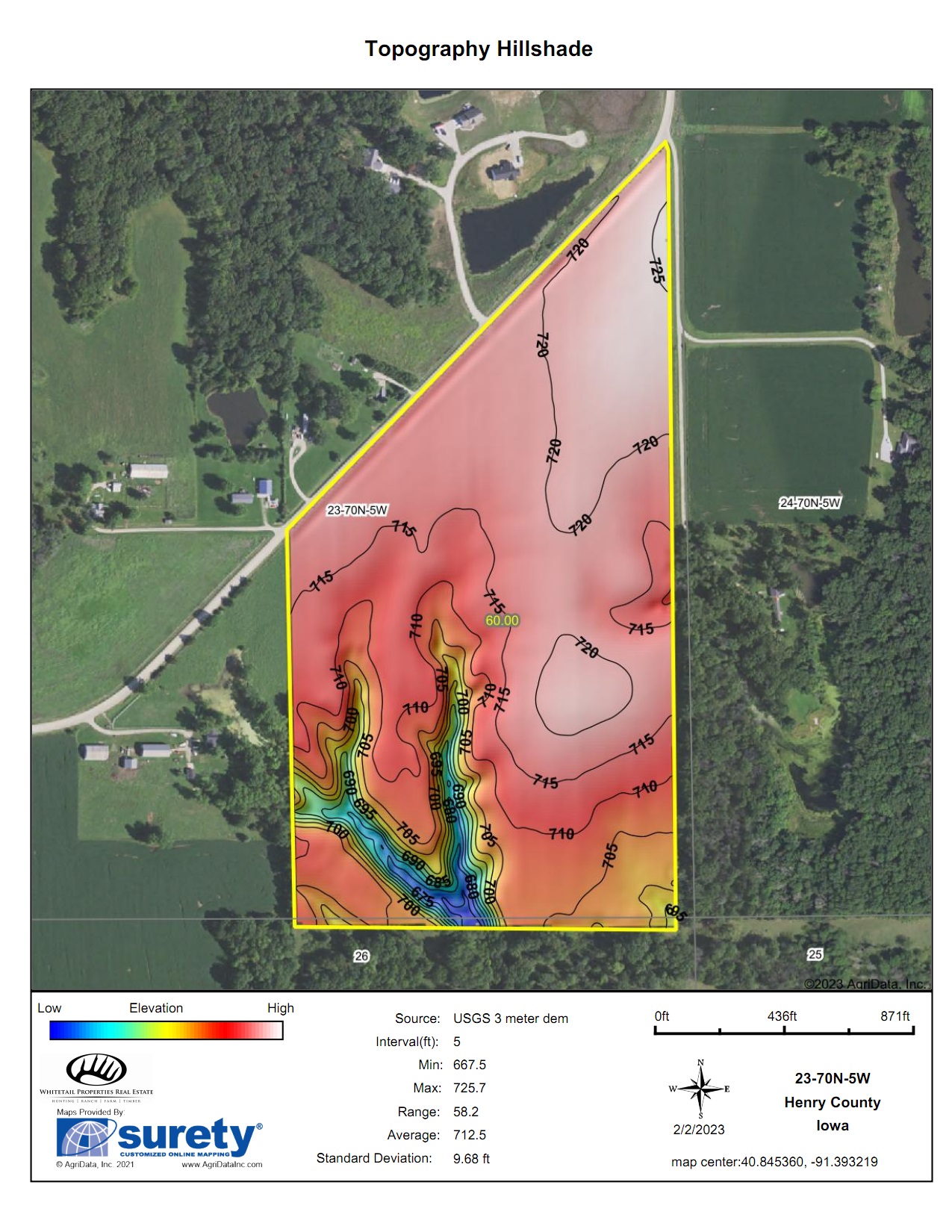 - Two food plot locations on the south end, next to heavy cover