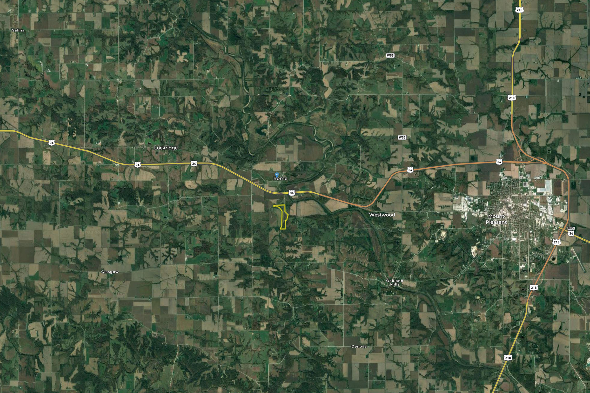 - Location: 7 miles west from Mount Pleasant, Iowa, straight south of Rome
