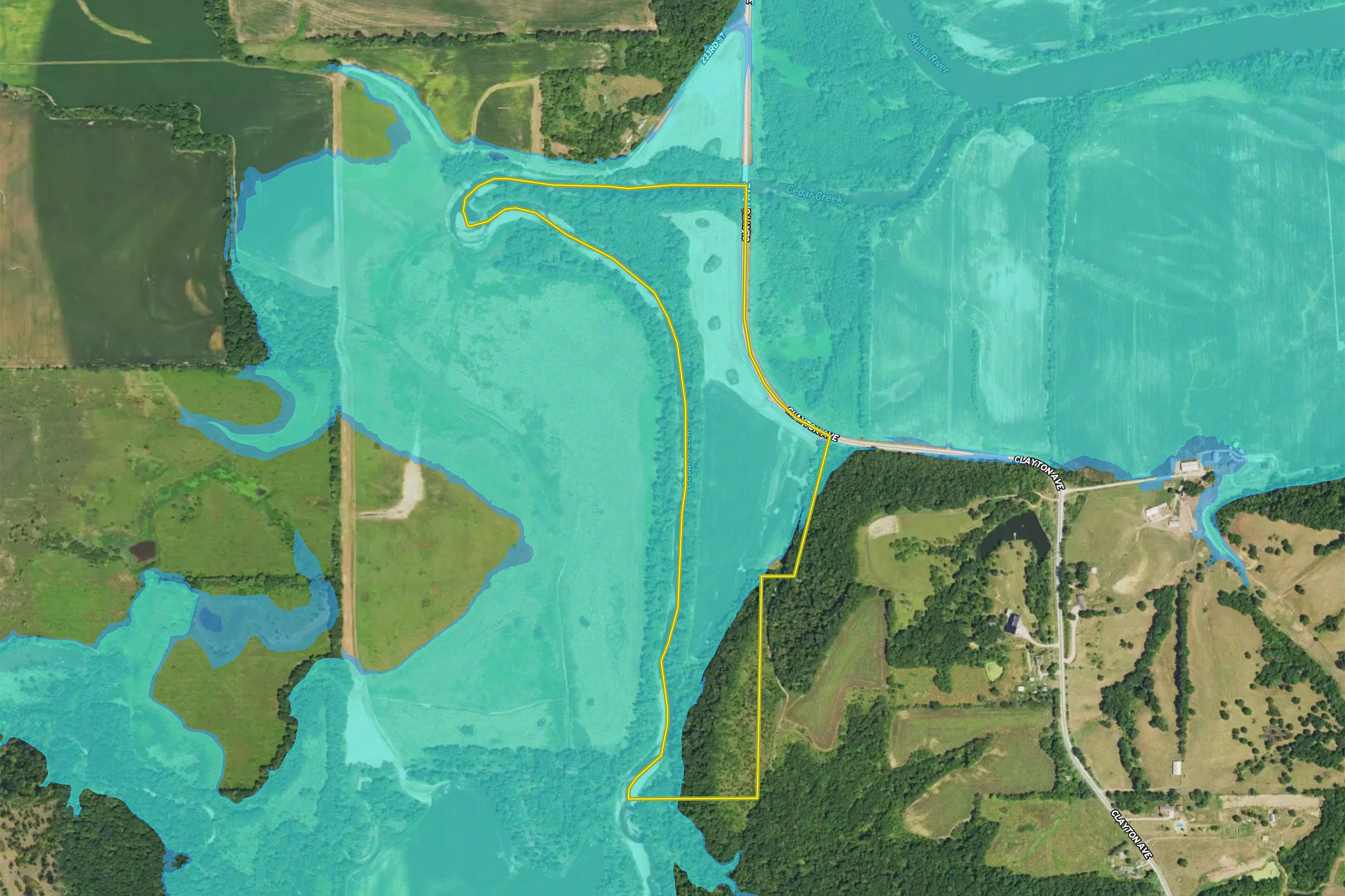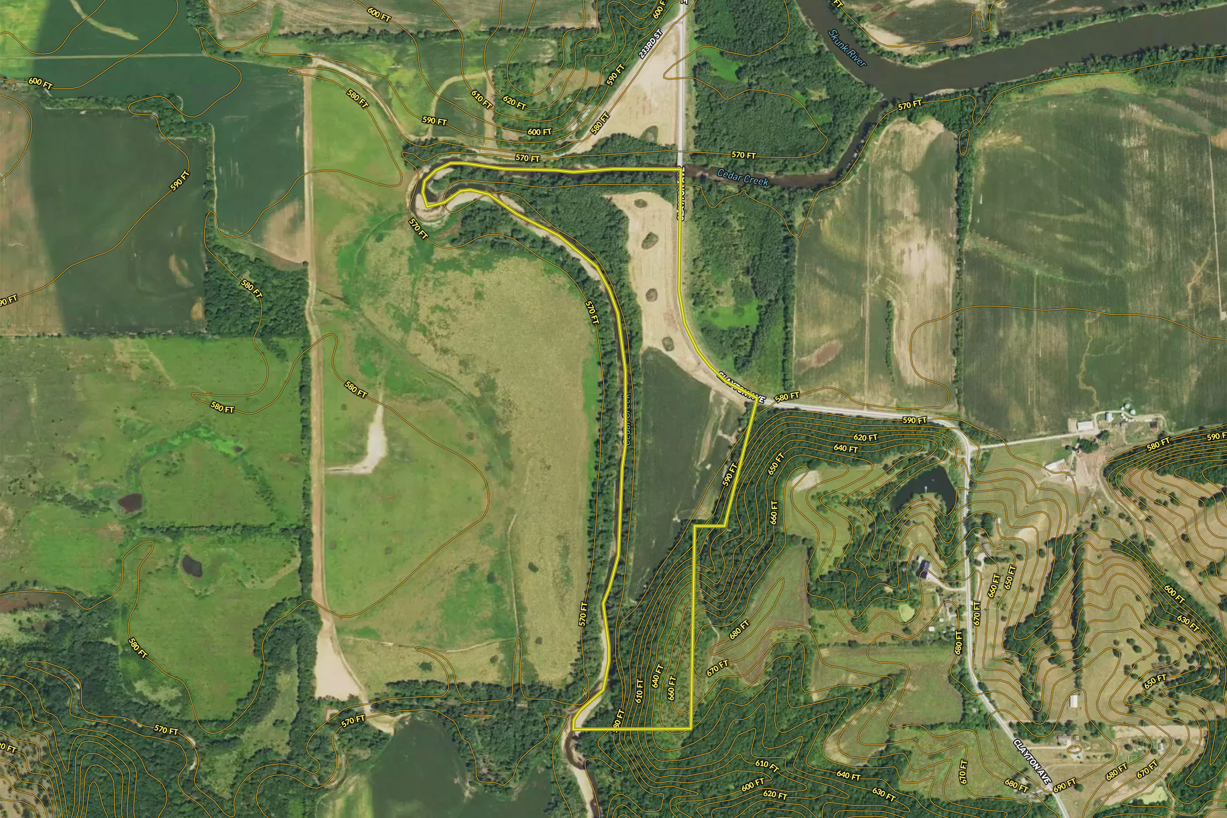 - .25 miles of Skunk River frontage with bank access