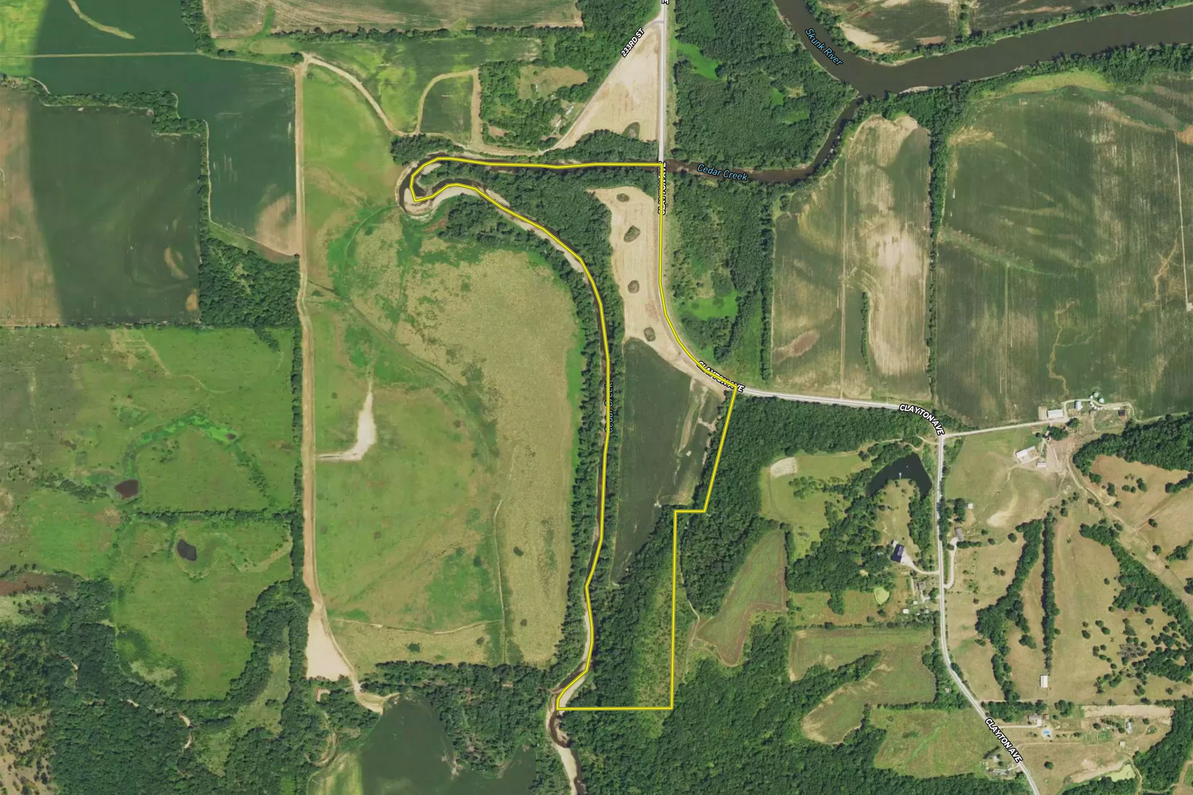 - Cedar Creek meets the Skunk River in the NE