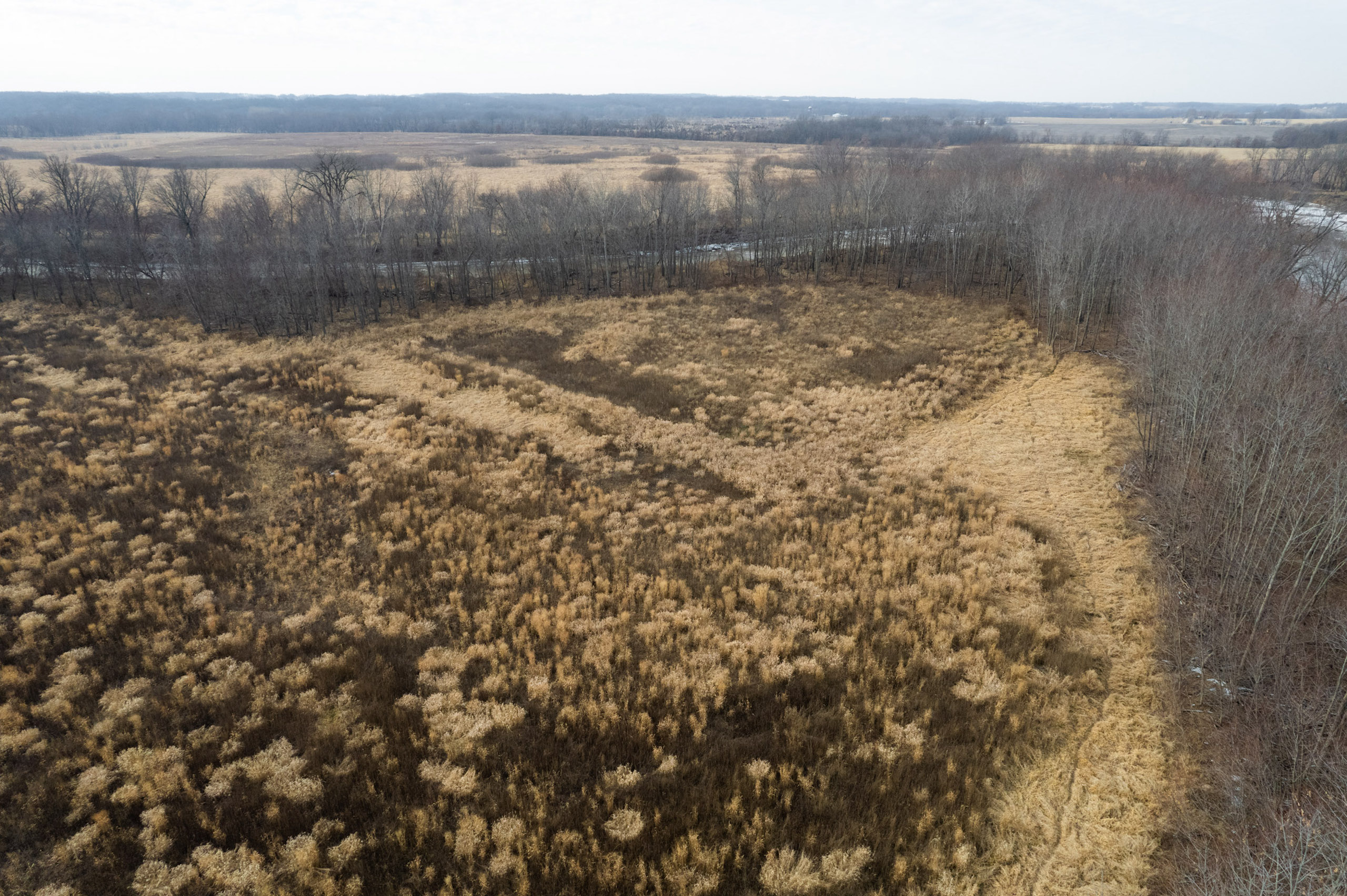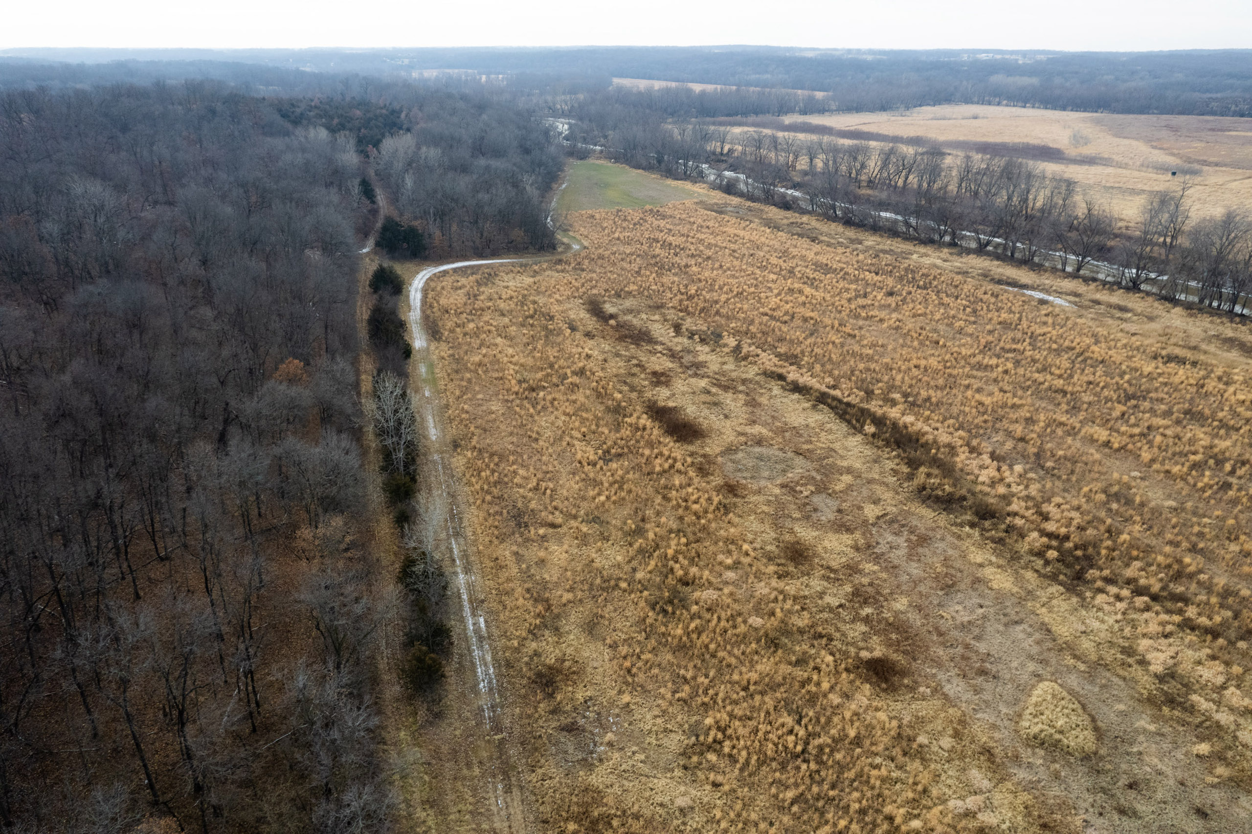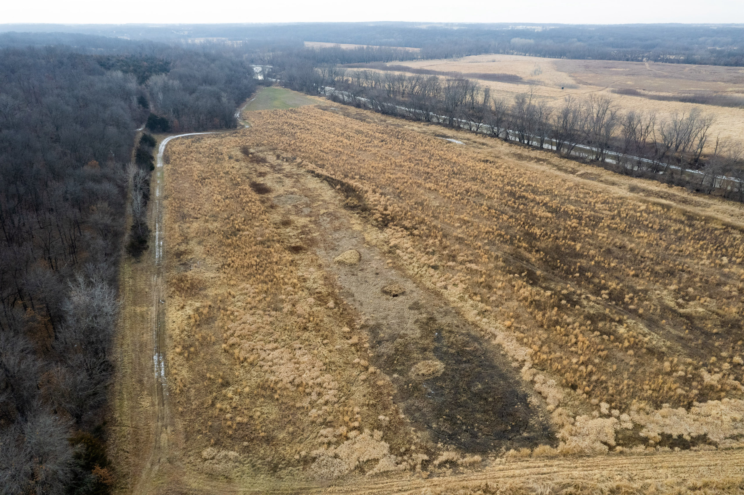 The tall native grasses on the south end provide great habitat for turkey, pheasant, quail, waterfowl, small game, and predators. Deer will also bed in the grasses and use it to travel safely.