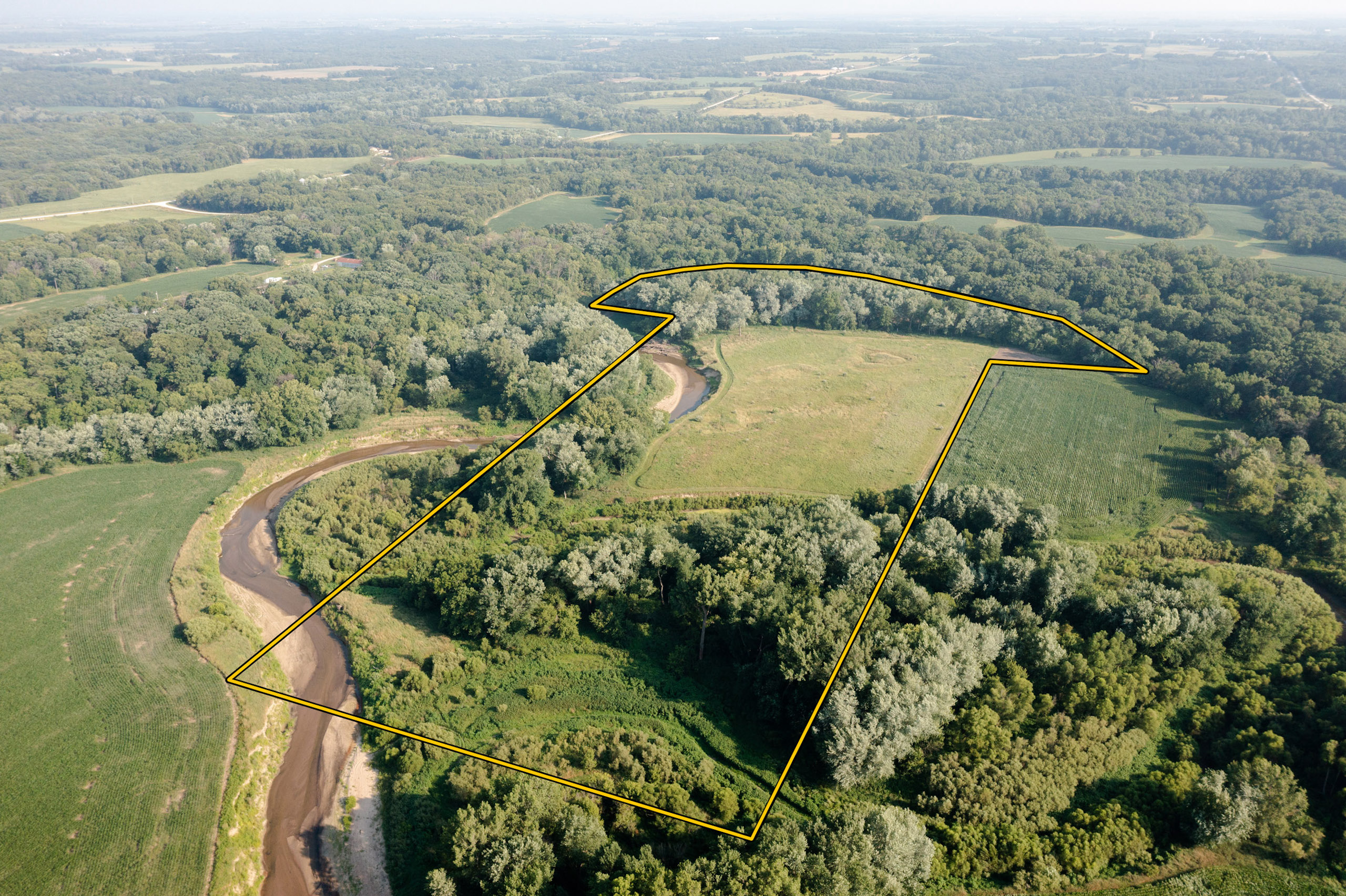 Cedar Creek runs along the South and East borders, which makes a natural travel corridor for cruising bucks. The 12 acres of CRP planting provide great bedding, nesting, and browse for the deer and turkeys, let alone a $2,422/year income. It will also stand up to the winter snow, making it a preferred bedding area. Enjoy the views of the towering Cottonwood and Maple trees that provide ample roosting for the healthy turkey population in the area. A big sand bar is also accessible with an ATV, making it a perfect place to have a campfire and enjoy the creek.