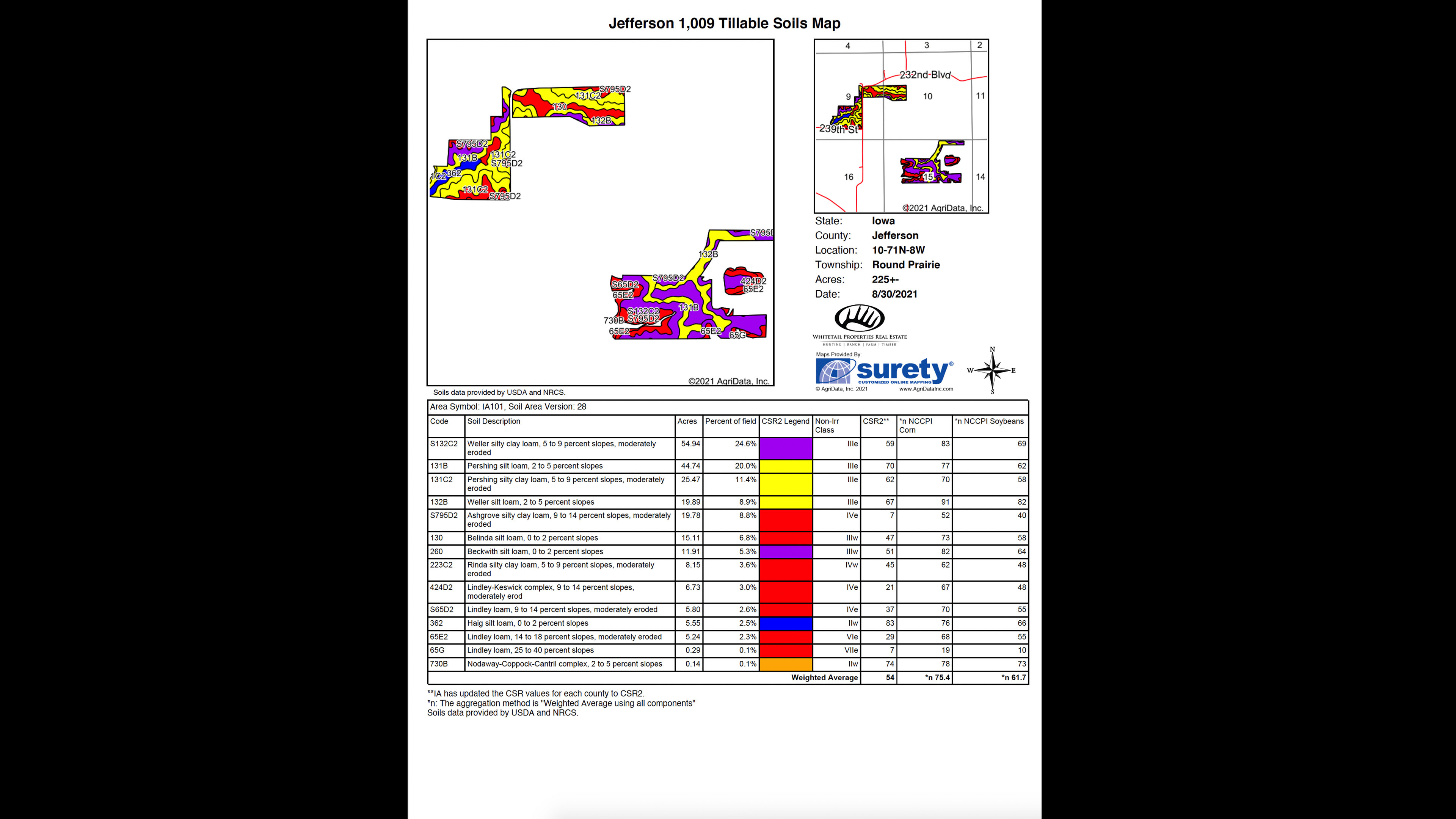 225 acres of the best tillable soils were left for crops. In total, the farm generates over $138,000 per year of income from CRP and tillable cash rent.