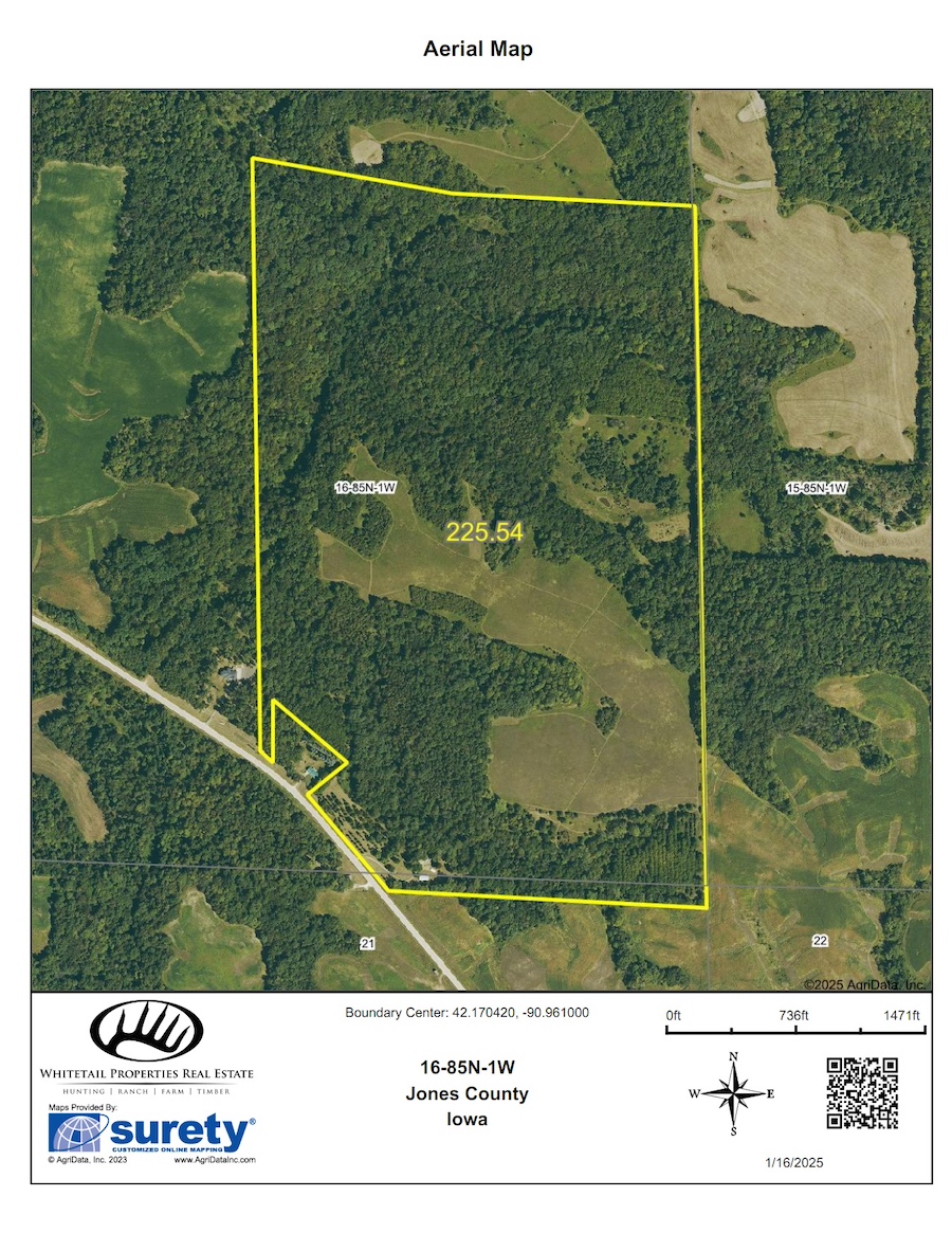 Situated on the north side of paved Highway E17, northeast of Wyoming and east of Scotch Grove in eastern Jones County, this property offers exceptional features. Adjacent to the Maquoketa River, it’s a certified tree farm recognized by the American Tree Farm System, a testament to its commitment to forest management, wildlife habitat, and responsible stewardship.