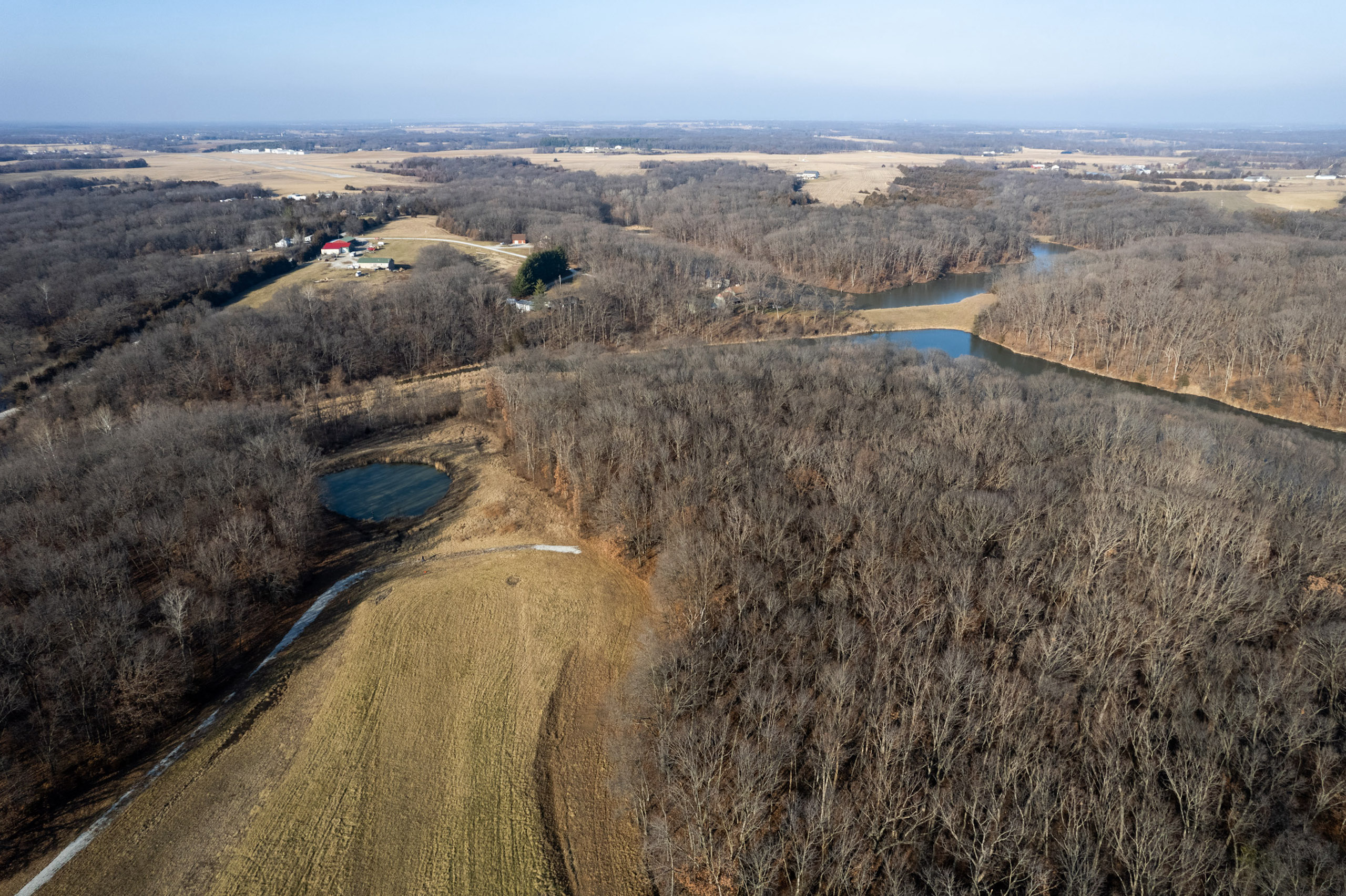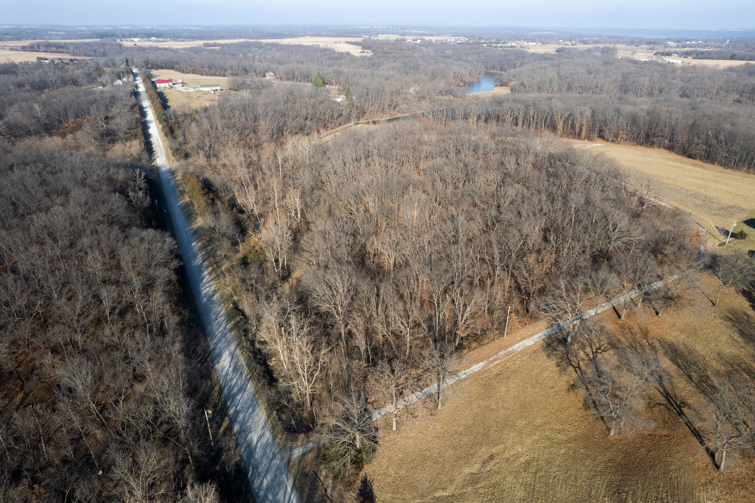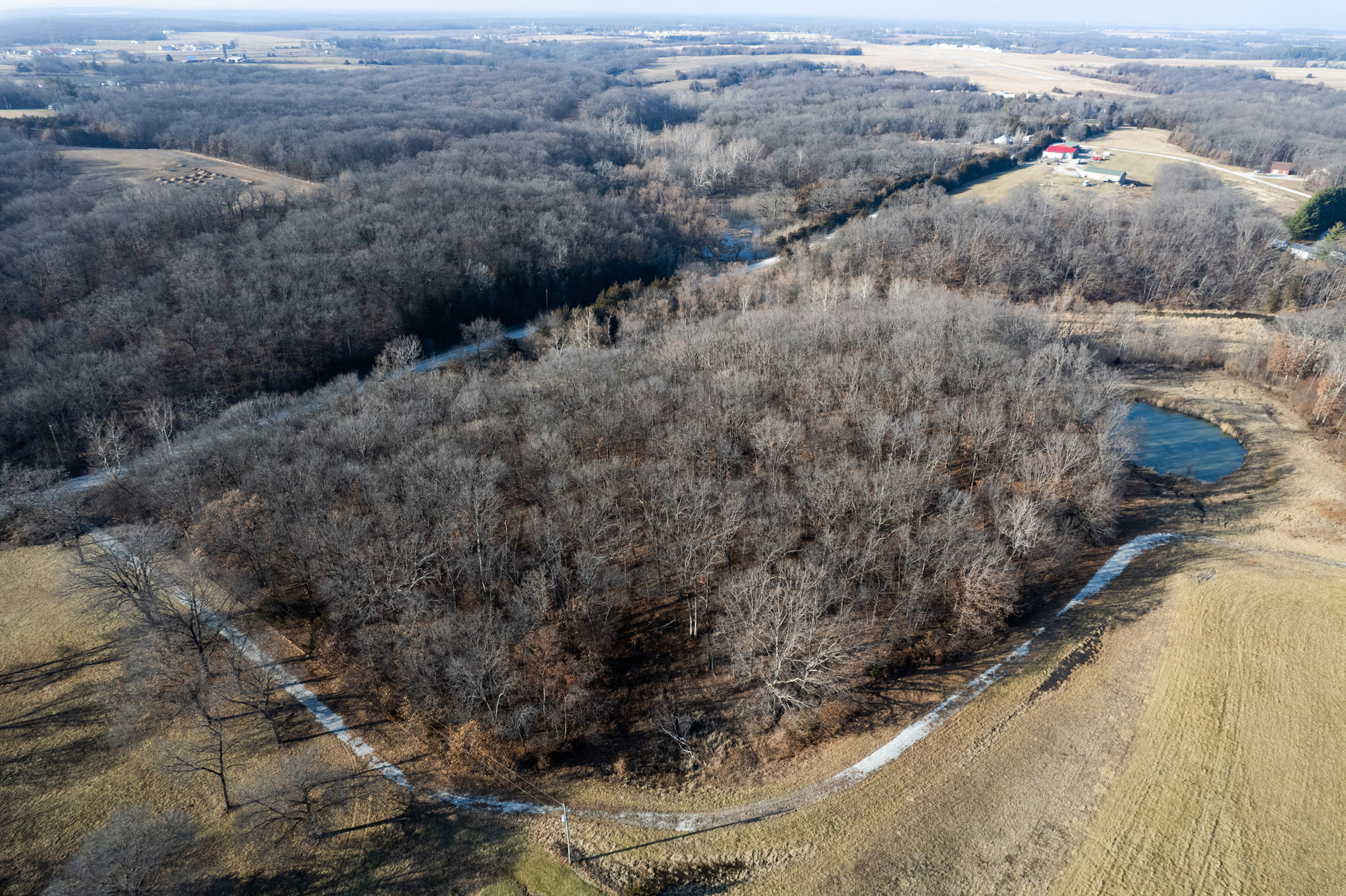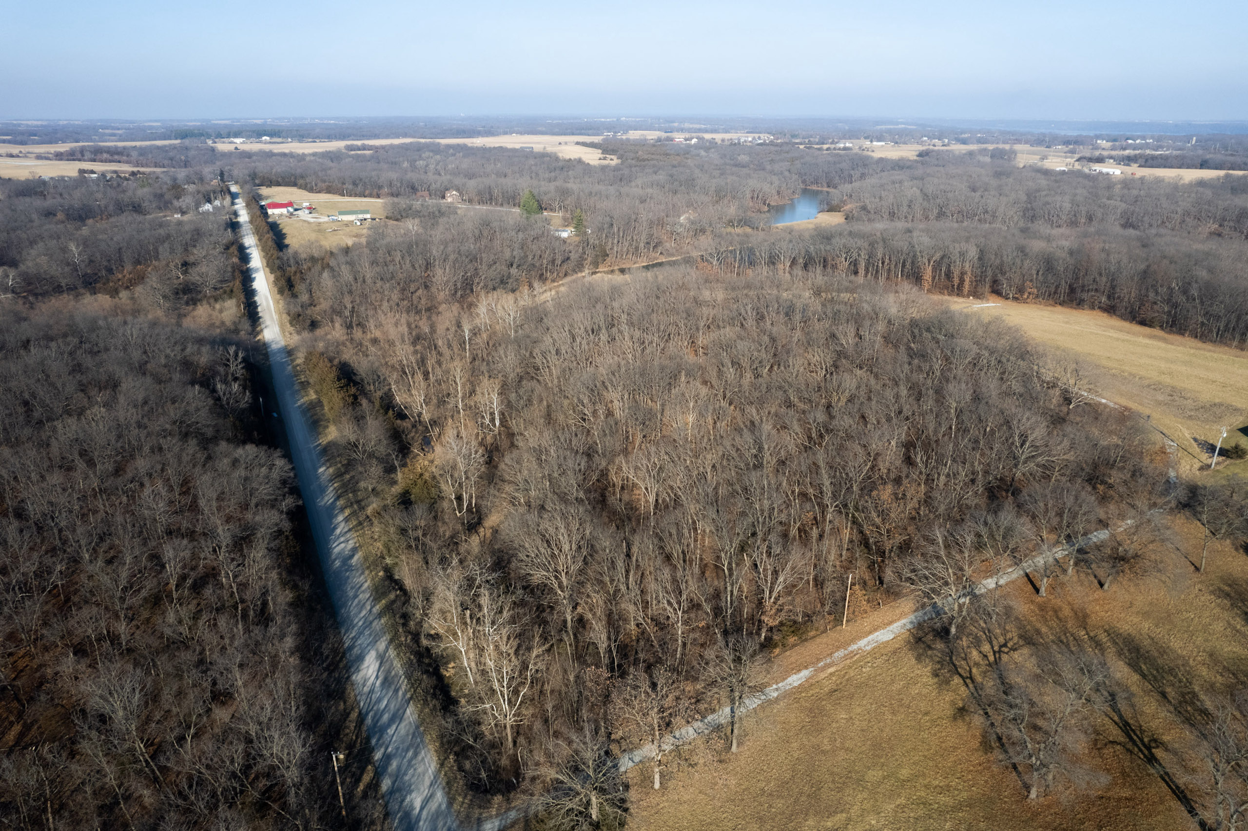 The property is 42.3 surveyed acres and has a private driveway from Wirtz Lane that leads to a ridgetop of Oak timber. Wrapping around the north and east faces of the land are McDowell Lake, a private body of water that is approximately 20 acres and was constructed in the late 1960s. It has a gated driveway, a small pond, and lake frontage. McDowell Lake is private and only accessible to the homeowner association members. This pristine lake is stocked with crappie, bass, and sunfish. Boats with electric trolling motors are permitted on the lake.