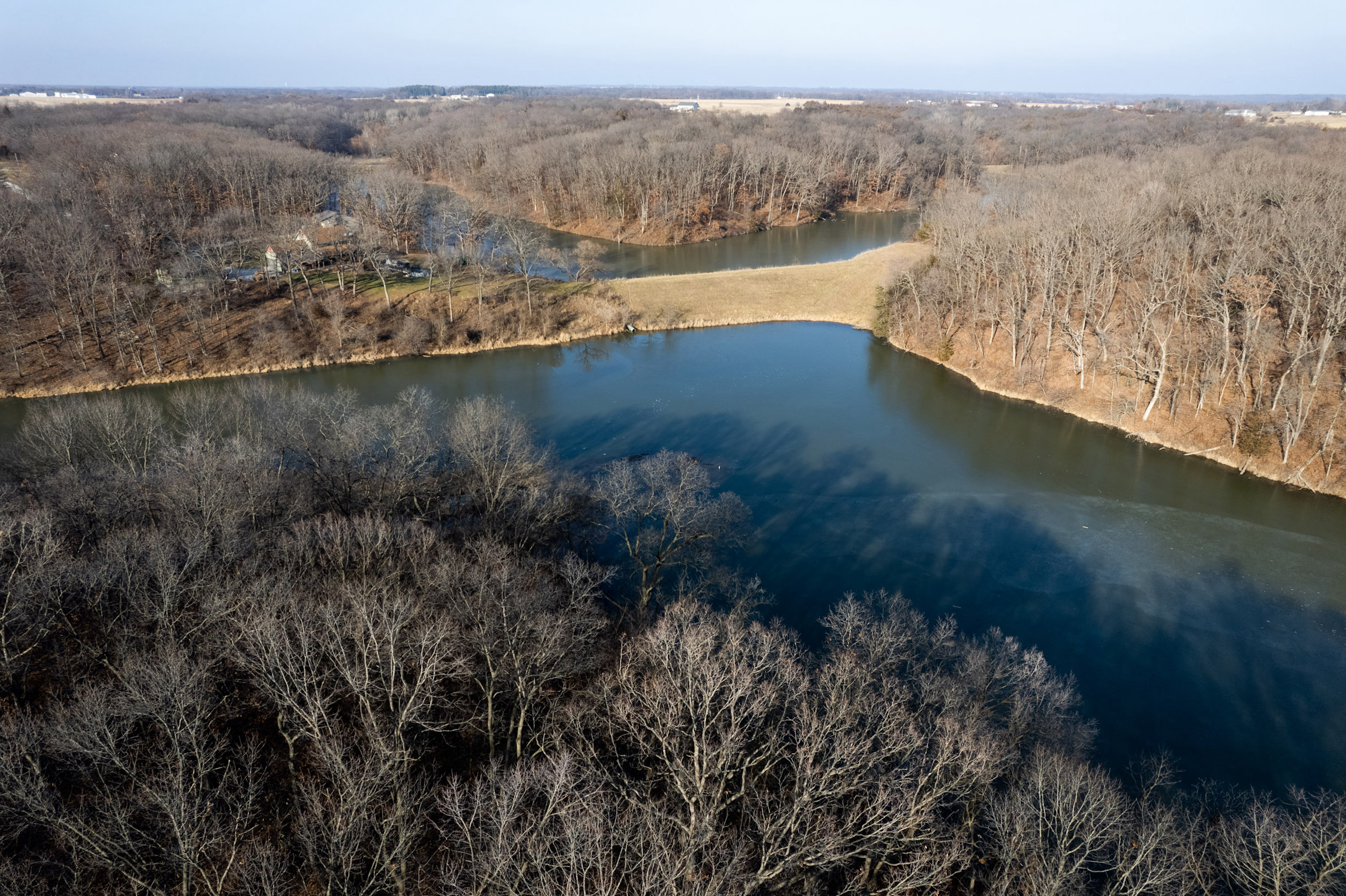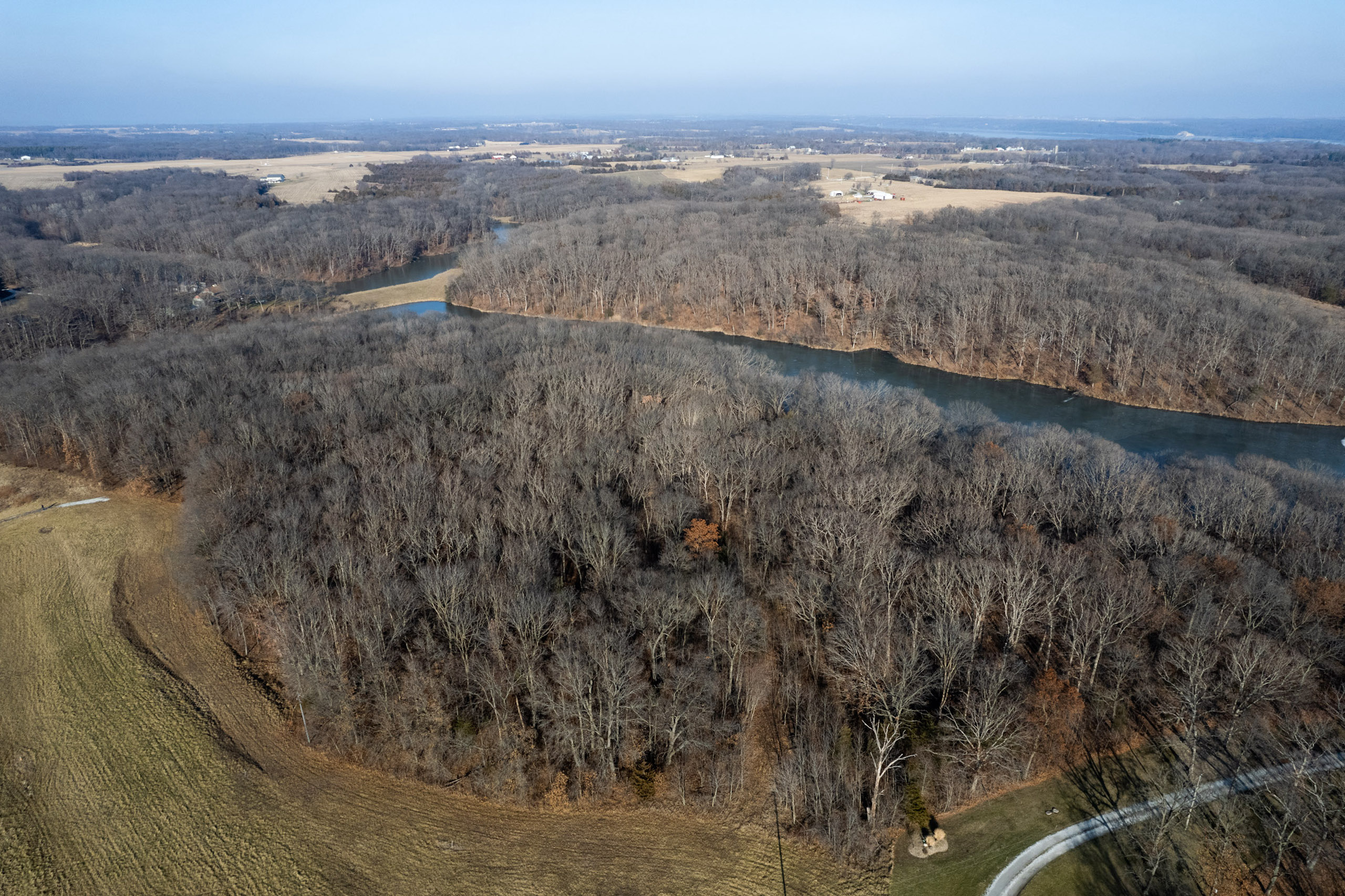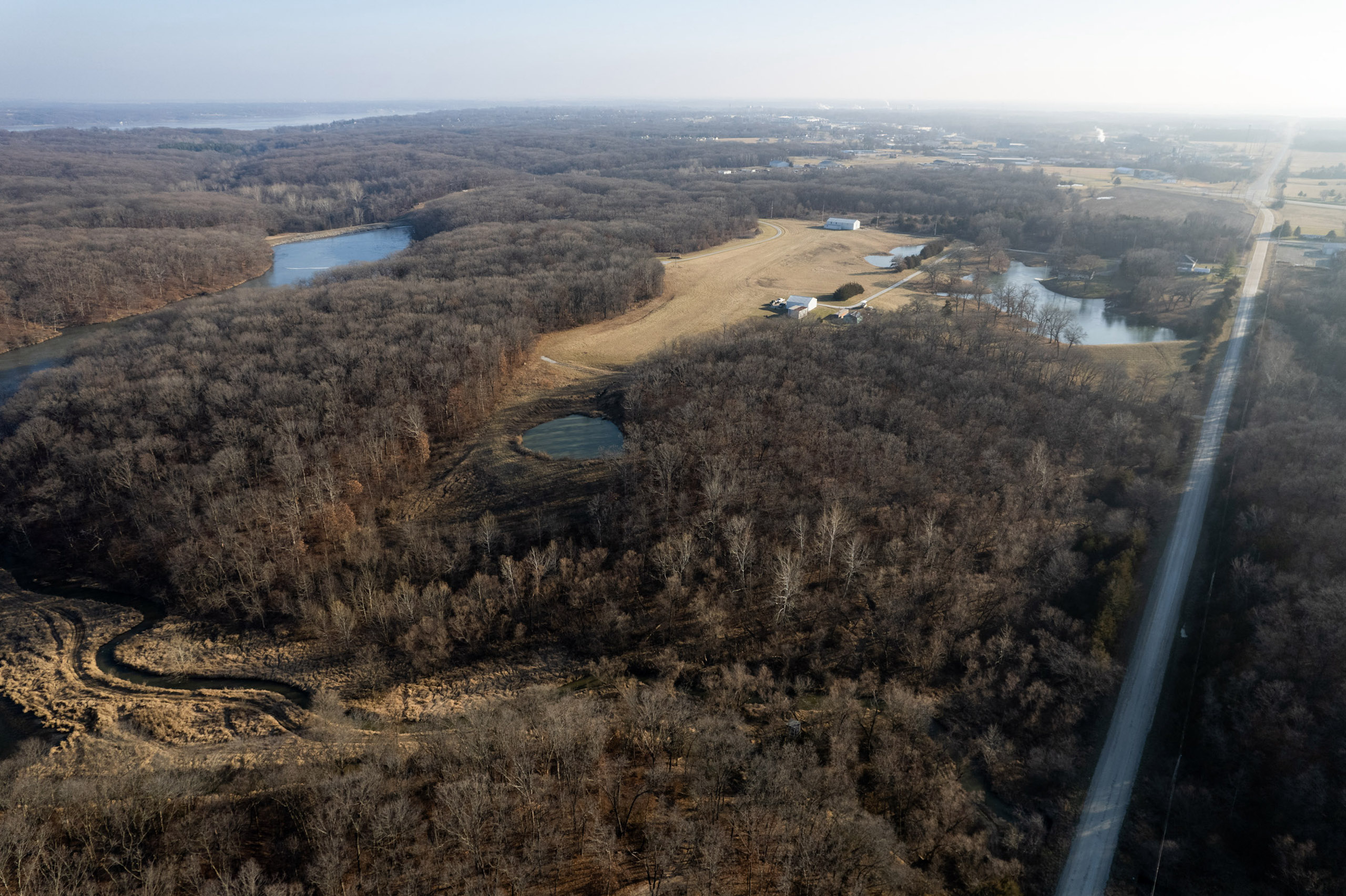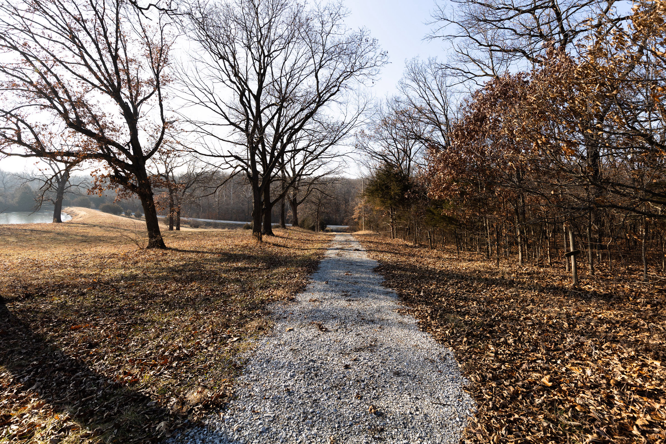 The property is 42.3 surveyed acres and has a private driveway from Wirtz Lane that leads to a ridgetop of Oak timber. Wrapping around the north and east faces of the land are McDowell Lake, a private body of water that is approximately 20 acres and was constructed in the late 1960s. It has a gated driveway, a small pond, and lake frontage. McDowell Lake is private and only accessible to the homeowner association members. This pristine lake is stocked with crappie, bass, and sunfish. Boats with electric trolling motors are permitted on the lake.
