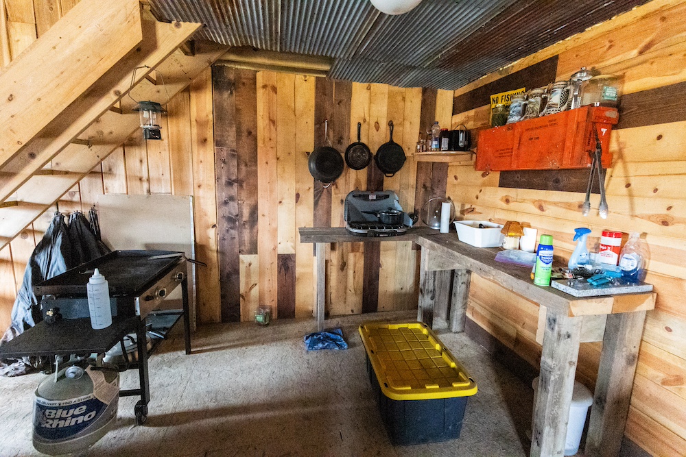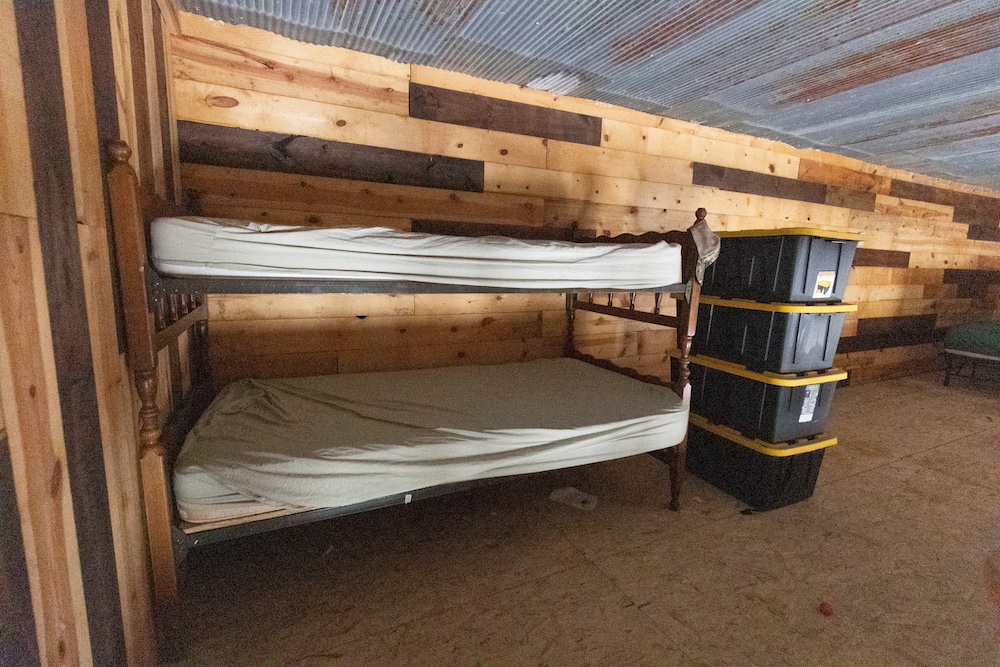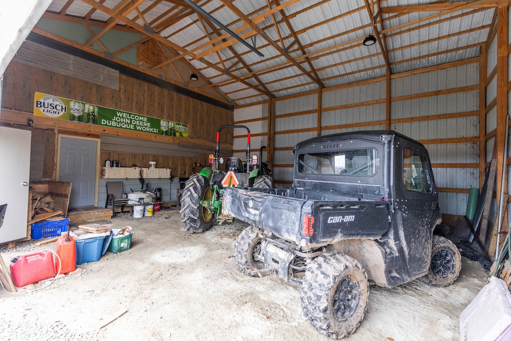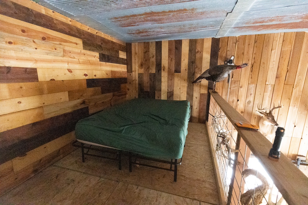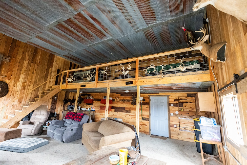 A 30 x 56 pole building at the entrance serves as a simple, effective hunting camp with equipment storage and rustic living space. It’s generator-powered, heated with a wood-burning stove and has a sleeping loft, keeping overhead and maintenance low.