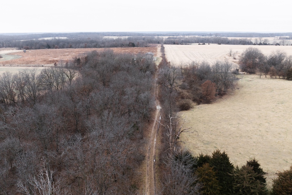 The owned driveway comes directly off Highway 218 and has a solid rock base beneath the grass surface. This is not an easement - the lane is exclusively part of the north parcel and puts you back into the farm, creating a private feel from the moment you enter.