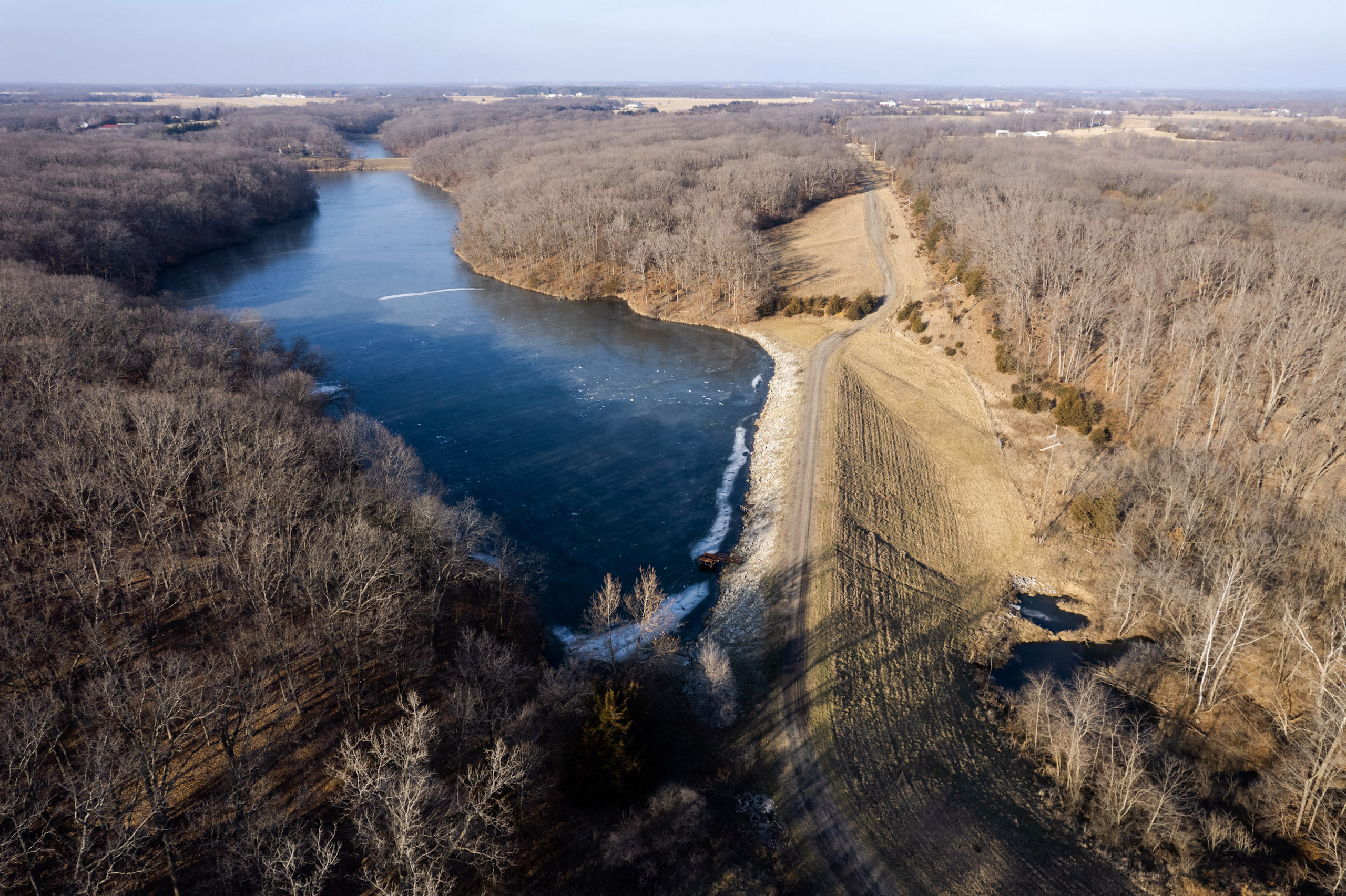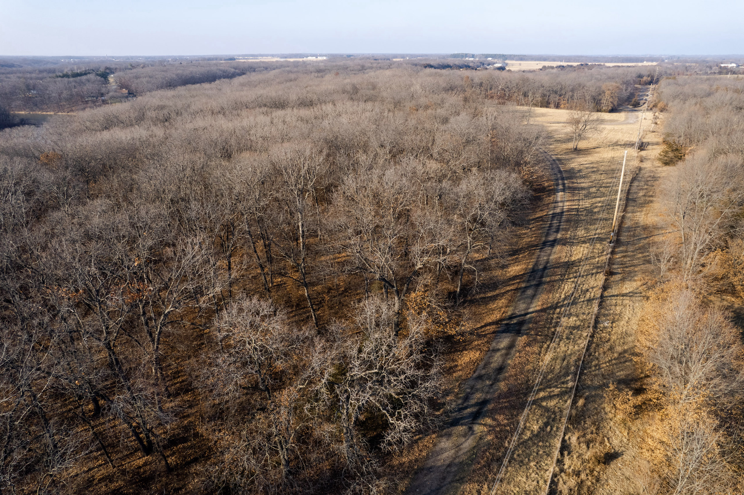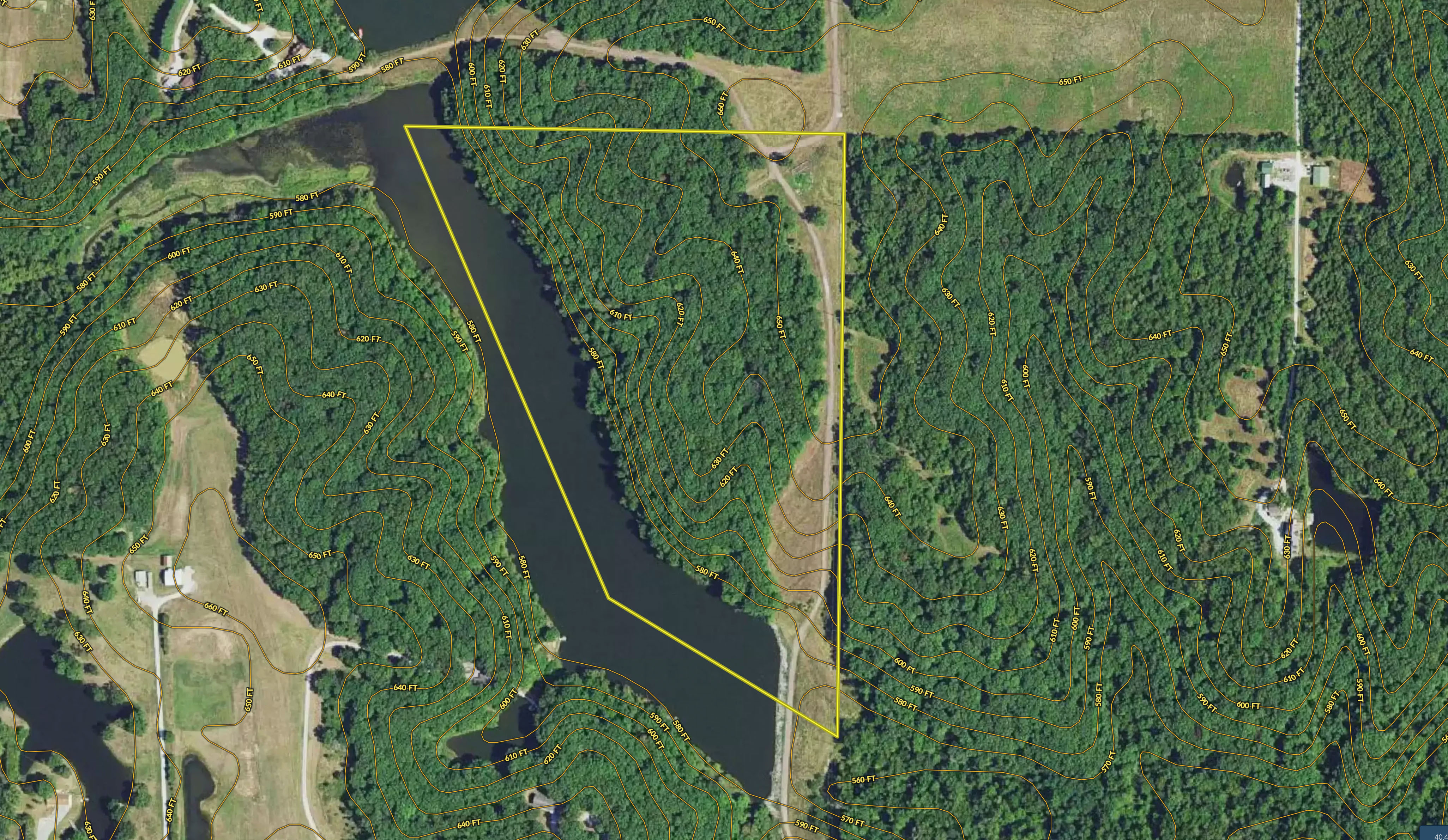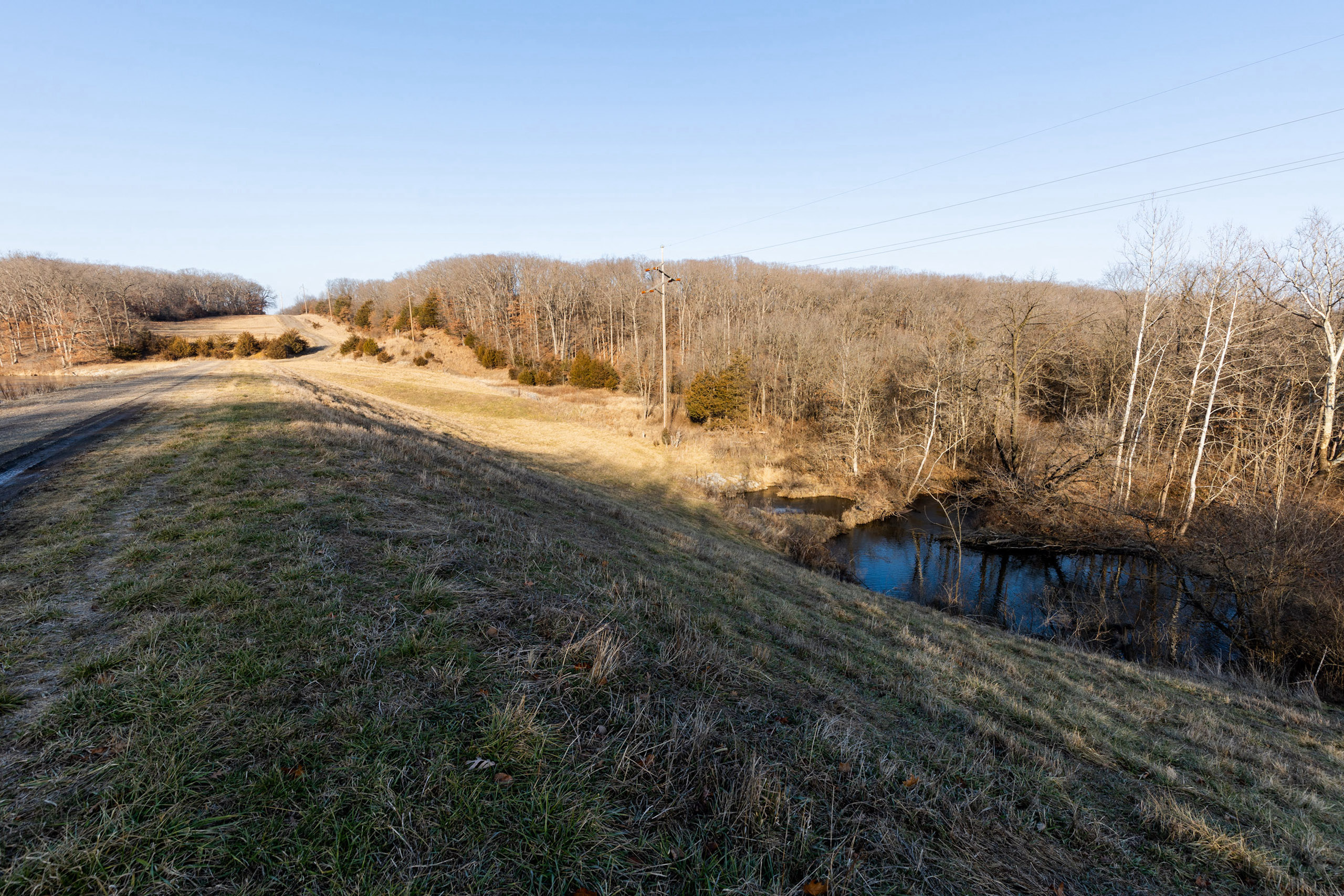 The property is 36.2 surveyed acres and has private road access across a large dam that leads to a ridgetop of Oak timber. This property borders the east side of McDowell Lake, a private body of water constructed in the late 1960s, and has approximately 20 surface acres. It has access to Highway 218, utilities, and lake frontage. McDowell Lake is private and only accessible to the homeowner association members. This pristine lake is stocked with crappie, bass, and sunfish. Boats with electric trolling motors are permitted on the lake.