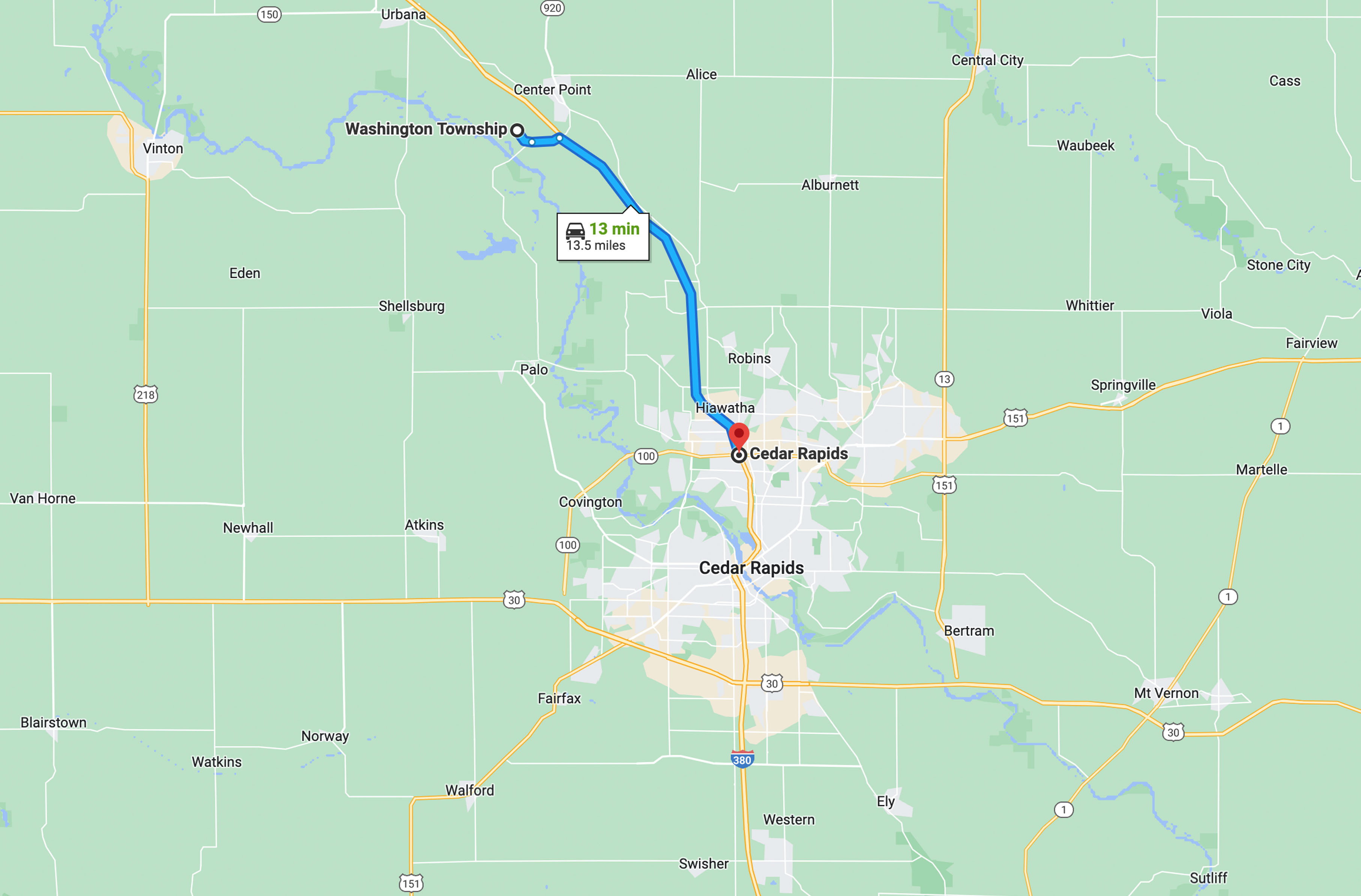 - 17 miles from downtown Cedar Rapids