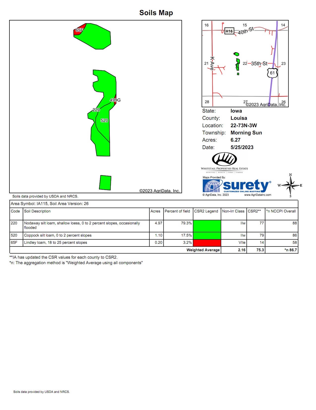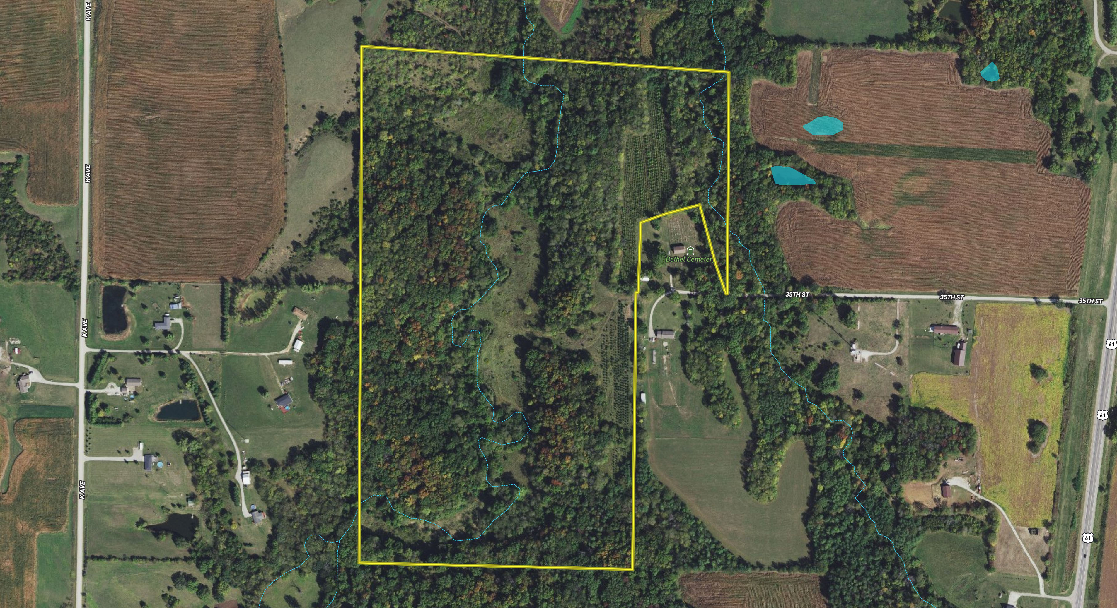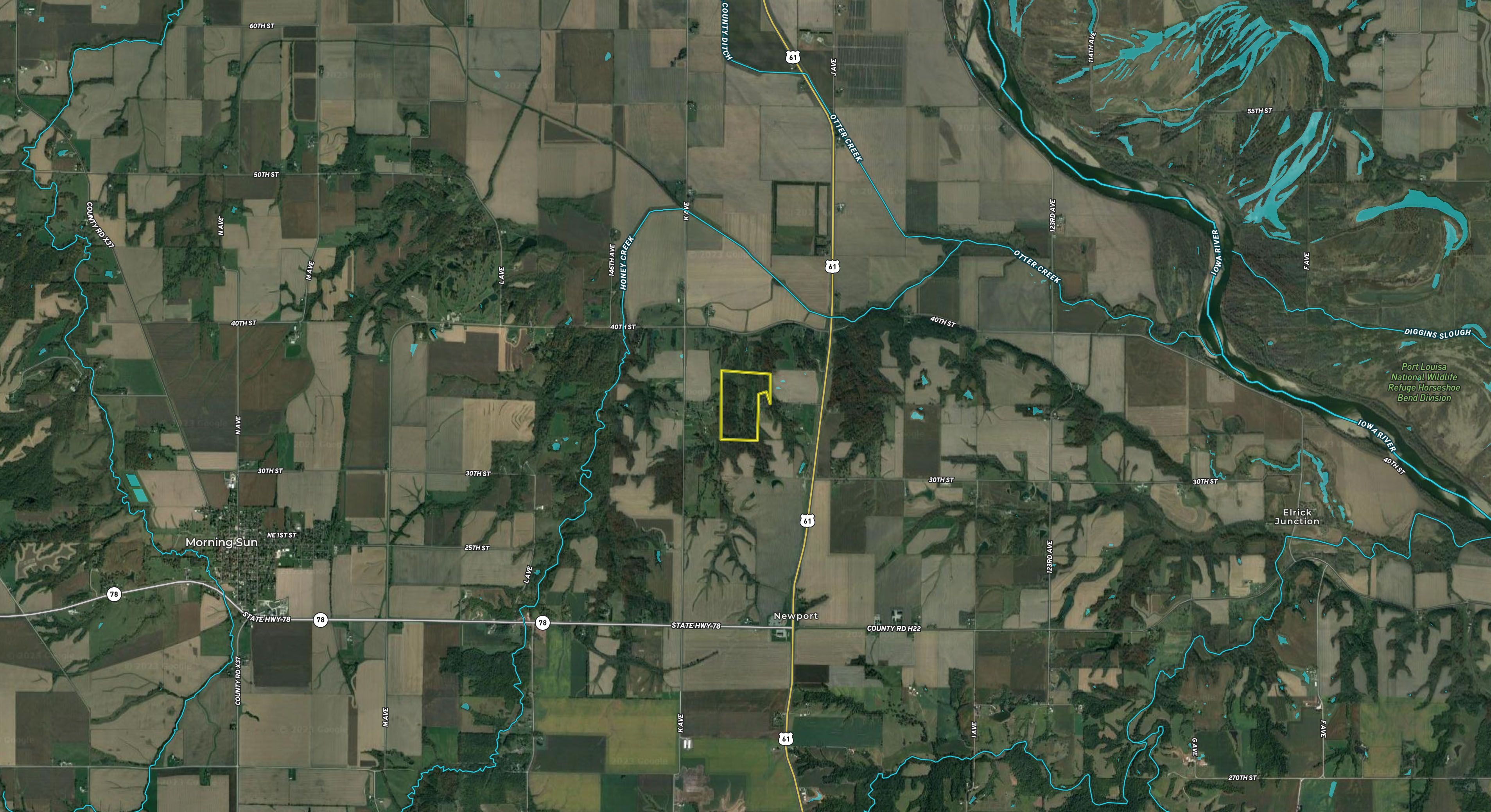 Located just east of Morning Sun, directly south of Wapello, and just a mile off Highway 61, the dead-end access allows for a secluded feel while still being easily accessible.