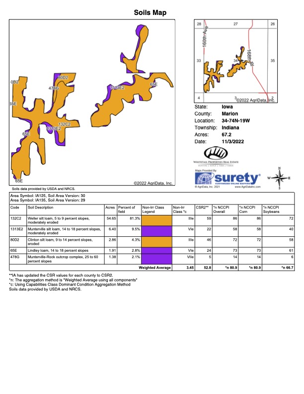 - Tillable acres average CSR2: 52.8