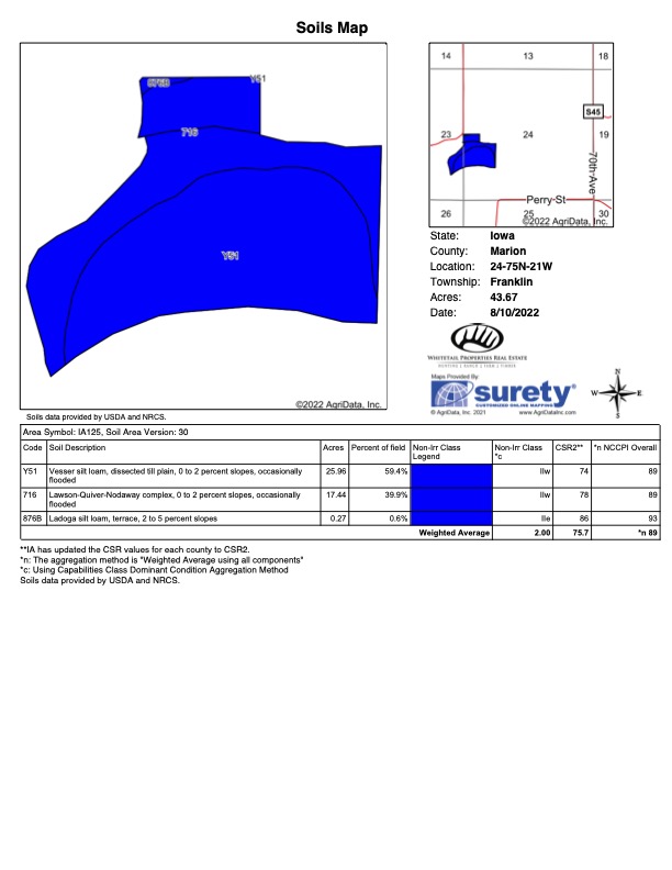 - High quality productive tillable/CRP acres carry a 75+ CSR2 avg
