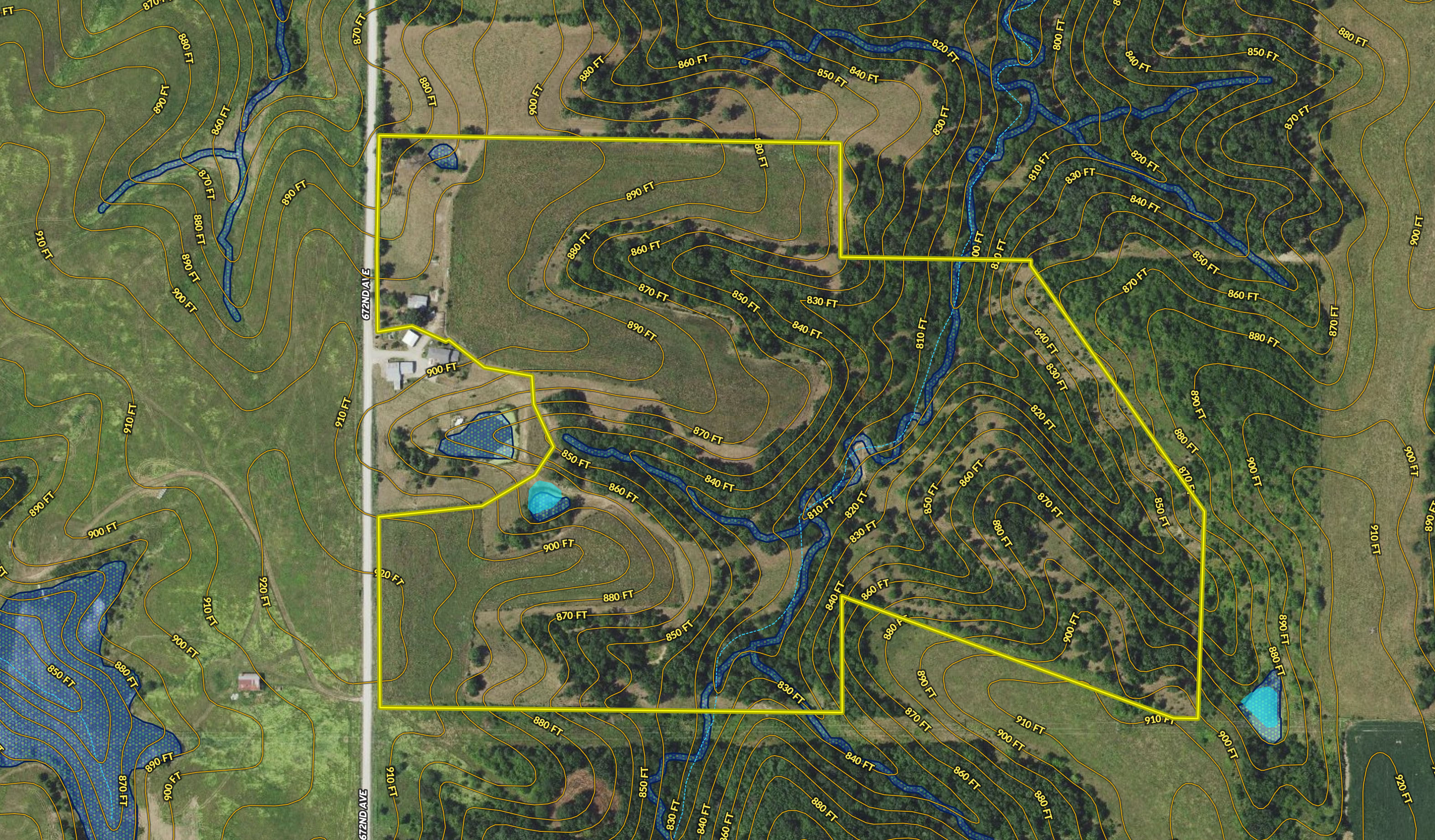 - A flat area near the road on the west side is close to the pond and offers a great building site