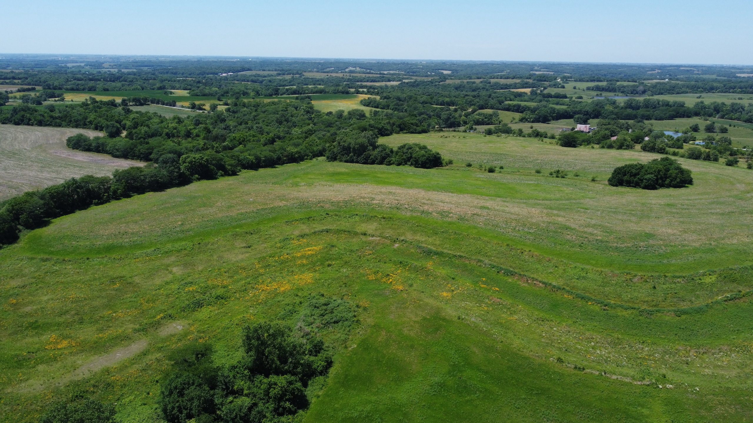 With 232.22-acres enrolled in CRP at an annual rate of $233.70/acre or $54,270/year through September 30, 2036 this farm offers a great guaranteed return for 15 years! An ROI like this in today’s market is hard to come by. It is enrolled in the CP38E program which contains big bluestem, indian grass, cavin rock switch, and ten different forbes. The CRP acres were just drilled this past fall, and when it reaches its full potential, it will add tons of wildlife habitat for whitetail deer and upland birds. The soils on this property carry an average CSR2 of 51.1. There is also a 6-acre field located in the Southeast corner of the property that could be put into production to add more income to the property. Also on the west side of the property is an older building site that has 2 sheds and a bin.