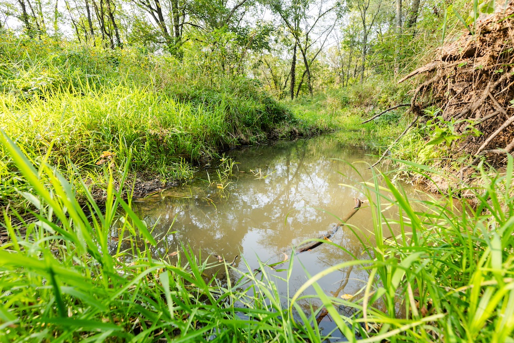 - Seasonal creek wraps around the side of the property