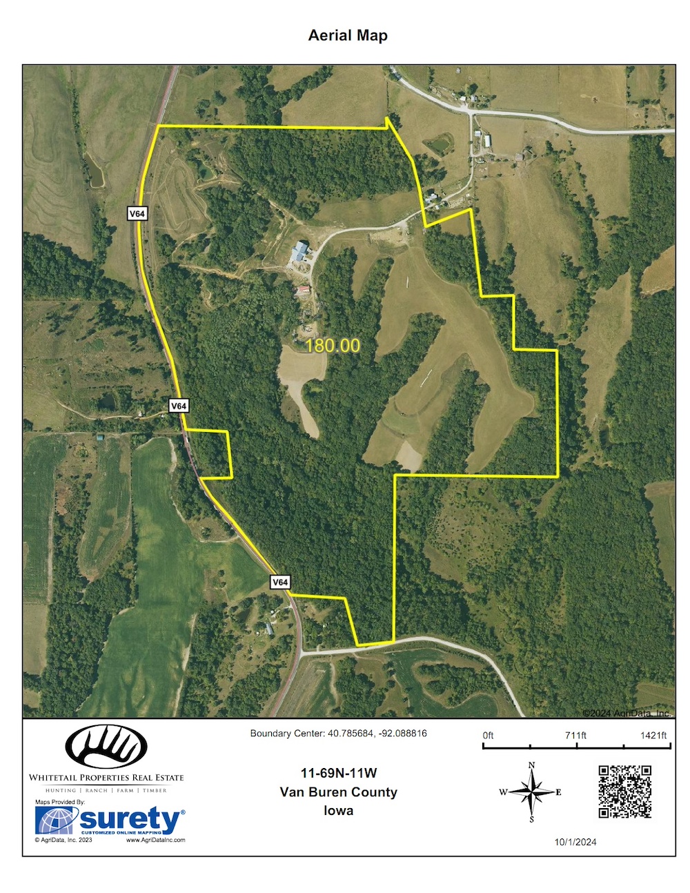 - 140 acres m/l in timber and brush, 40 open acres with great layout for food plots