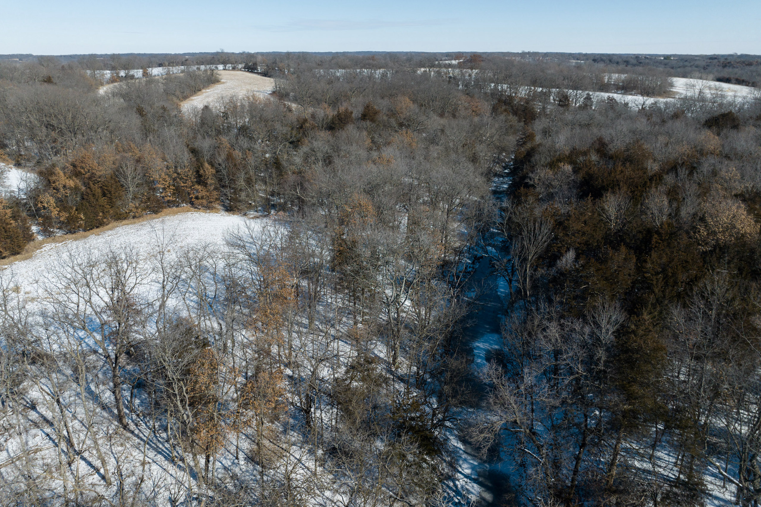 This potent hunting property in remote northeast Van Buren County has rolling topography, thick timber, creek bottom habitat, open acres, pinch points, and secluded food plot locations. Lying just south of Cedar Creek, this area is known for offering some of the most outstanding hunting in all of southern Iowa, and the components of this farm make it a mighty hunting opportunity for buyers wanting between 40 and 80 acres.