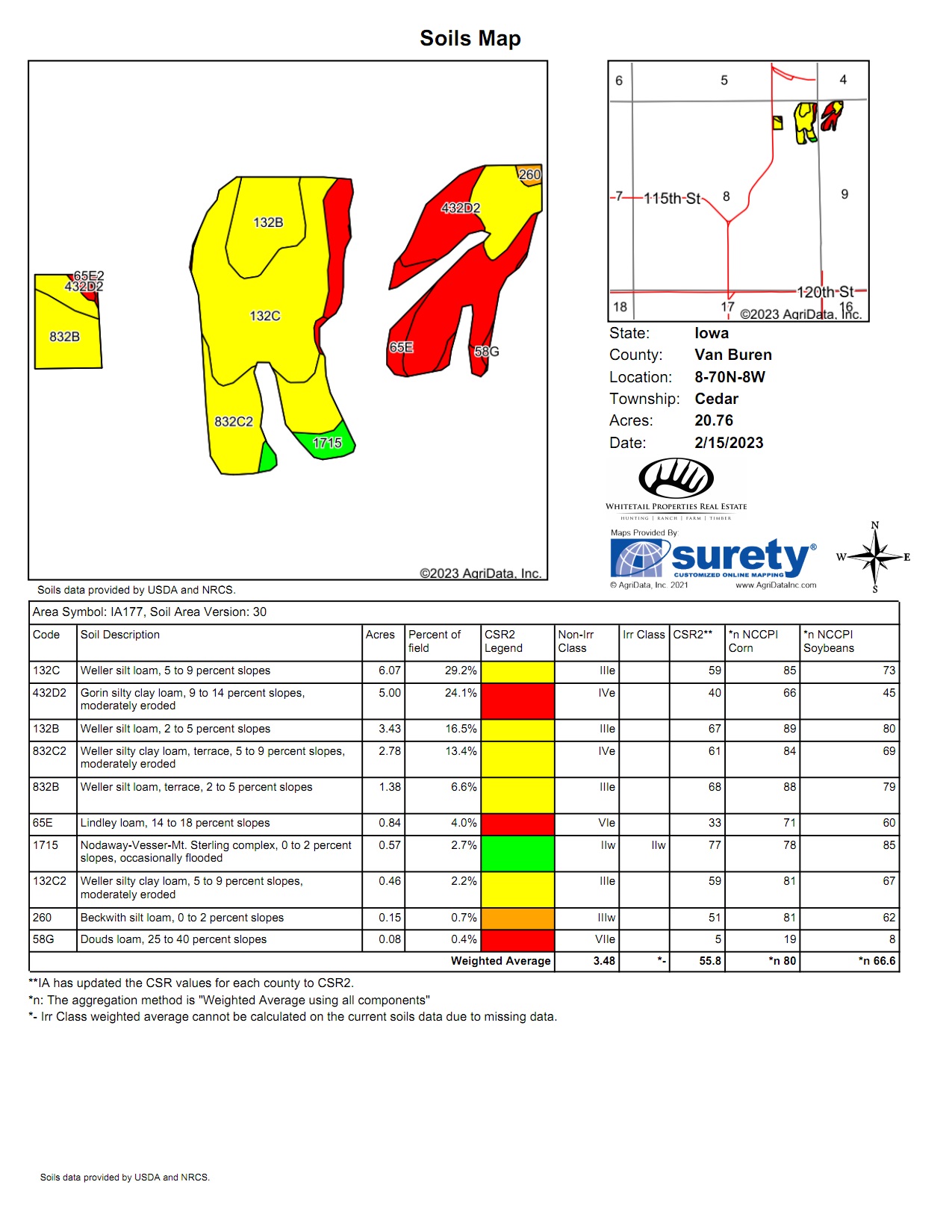 - Tillable: approximately 20 acres currently in hay has an average CSR2 of 55.8