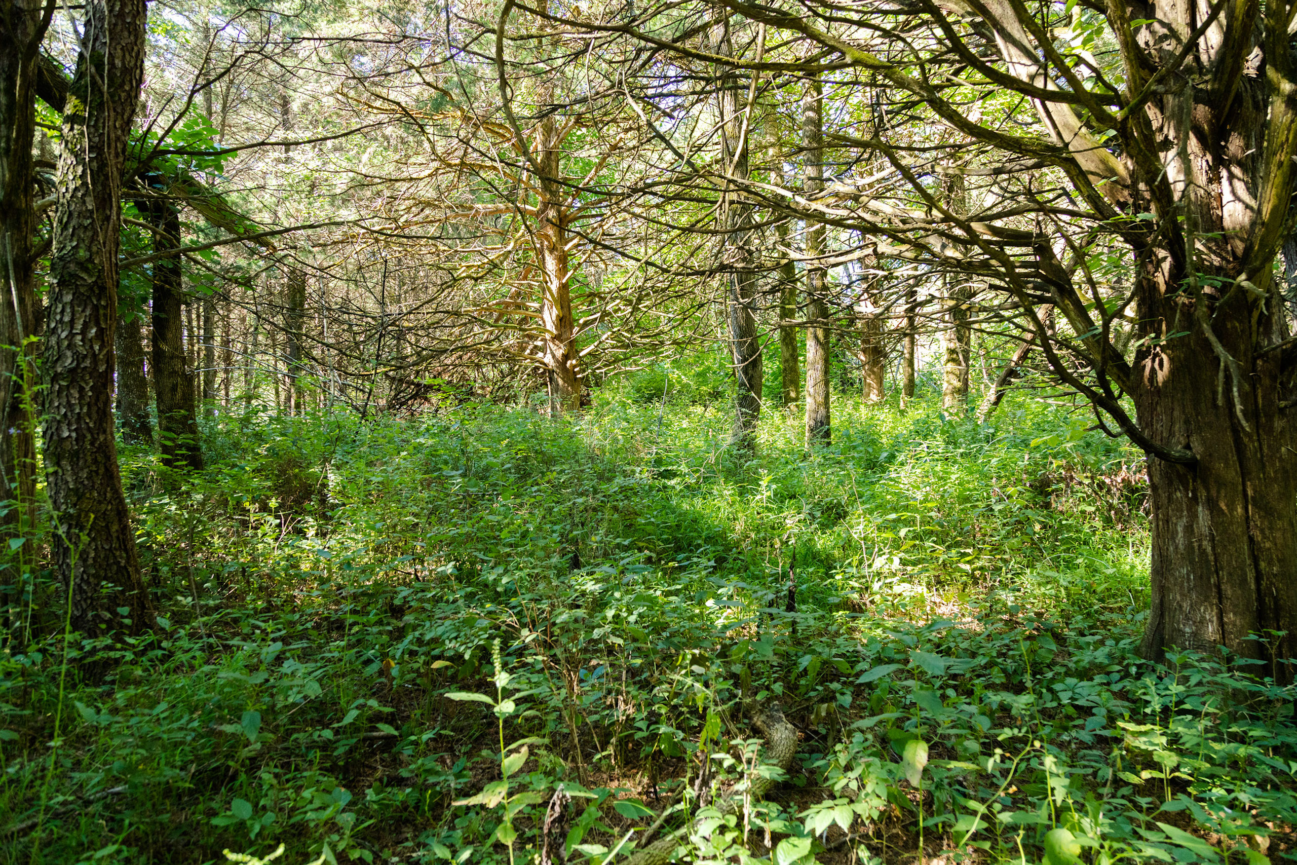 - Very thick old pasture and creek bottom timber, also has White and Red Oaks