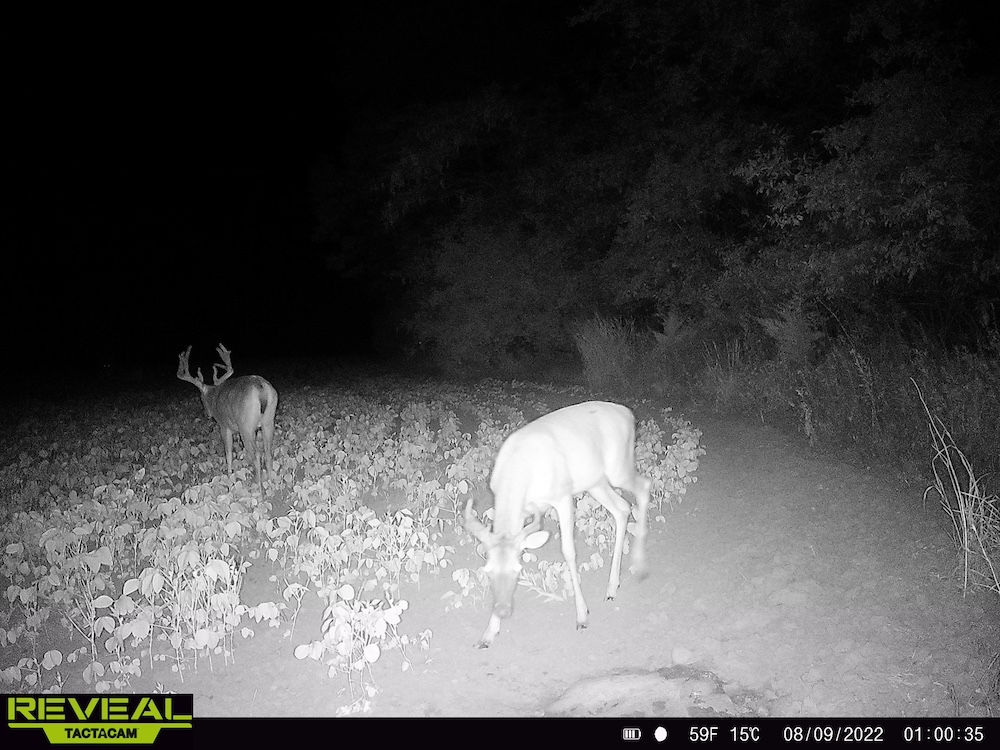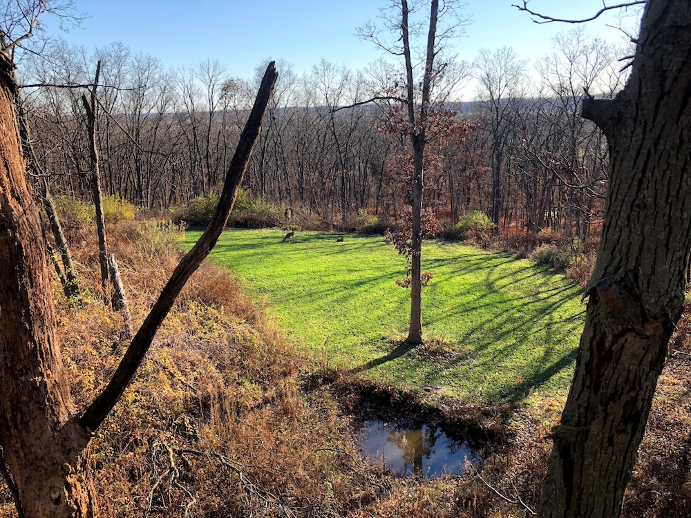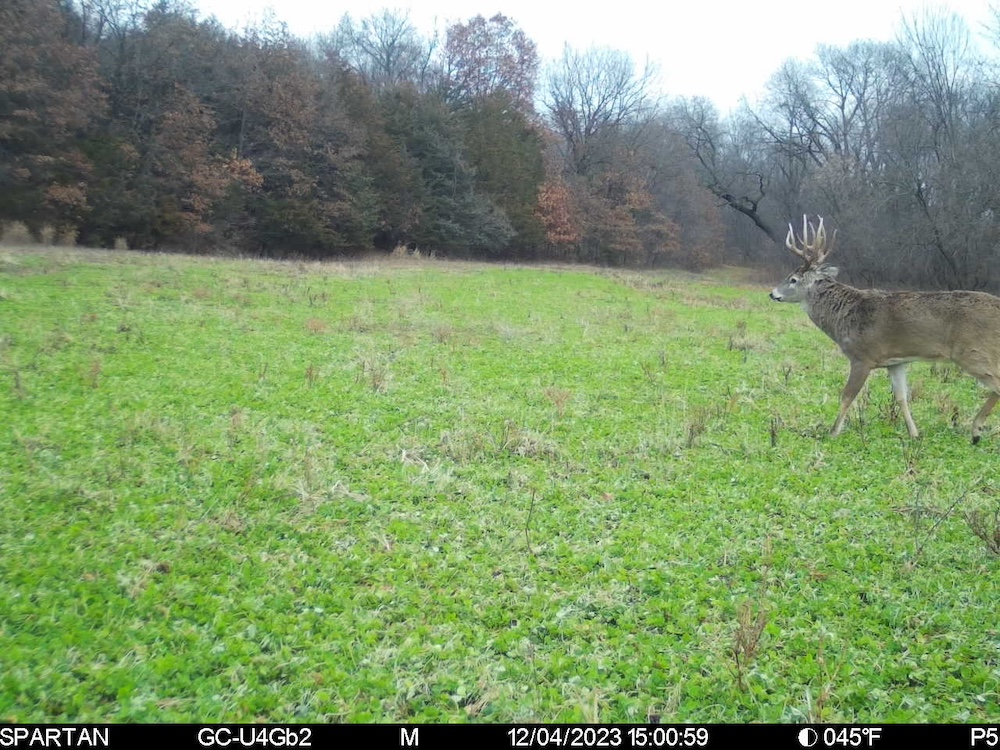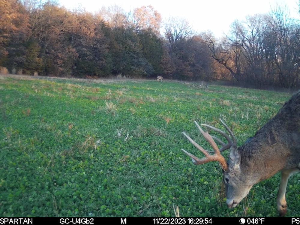 - Two hidden clover food plots for midday deer activity