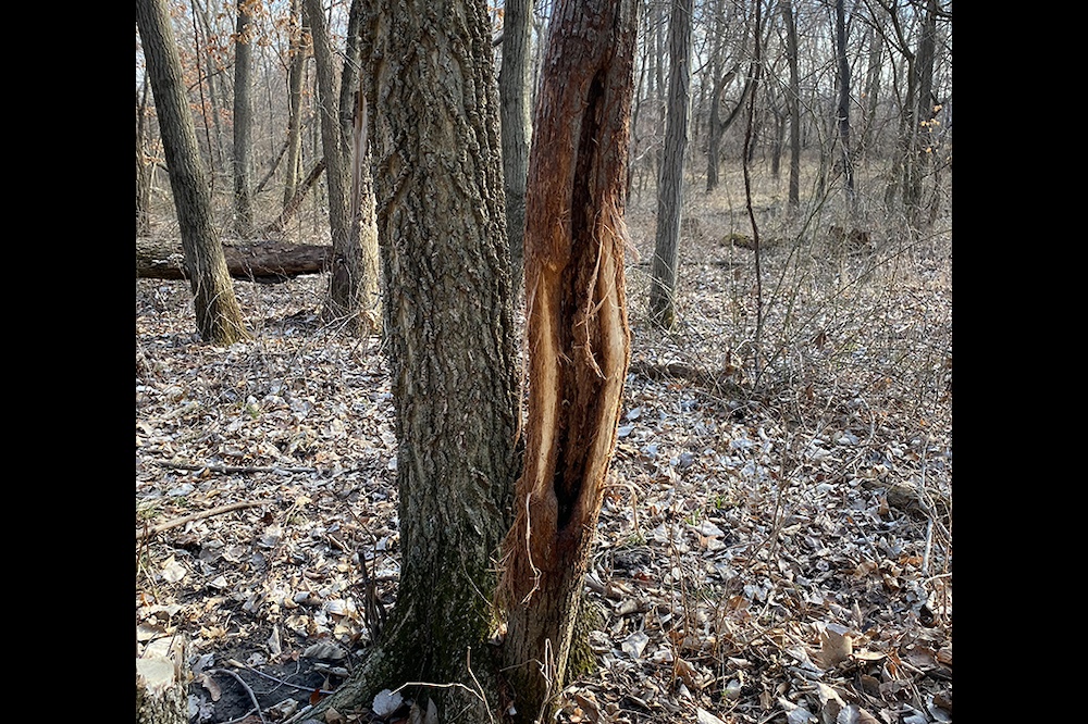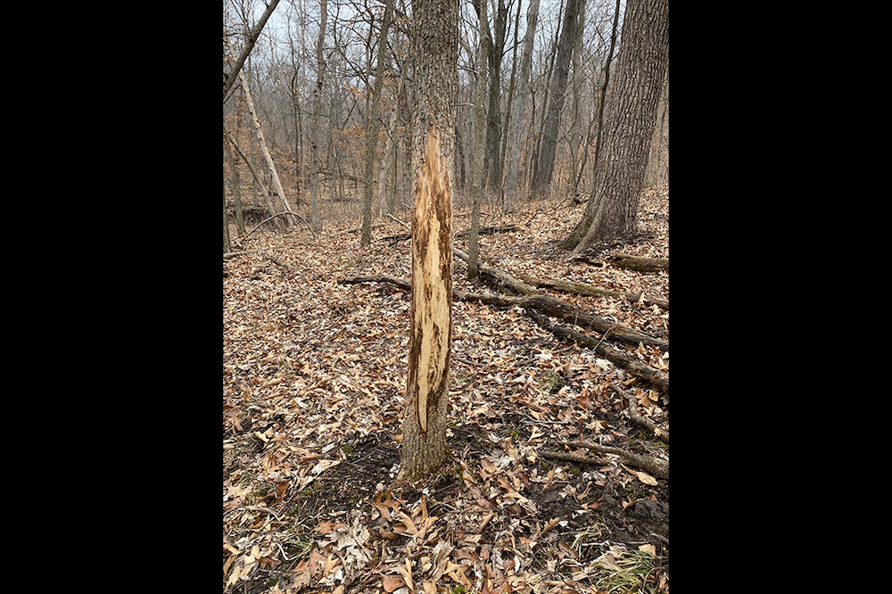 A redneck tower blind is positioned on the edge of the crop field, offering a chip shot for deer that enter the field’s inside corner. Timber stand improvement efforts in the past have enhanced acorn-producing mature oaks, providing habitat and potential future income.