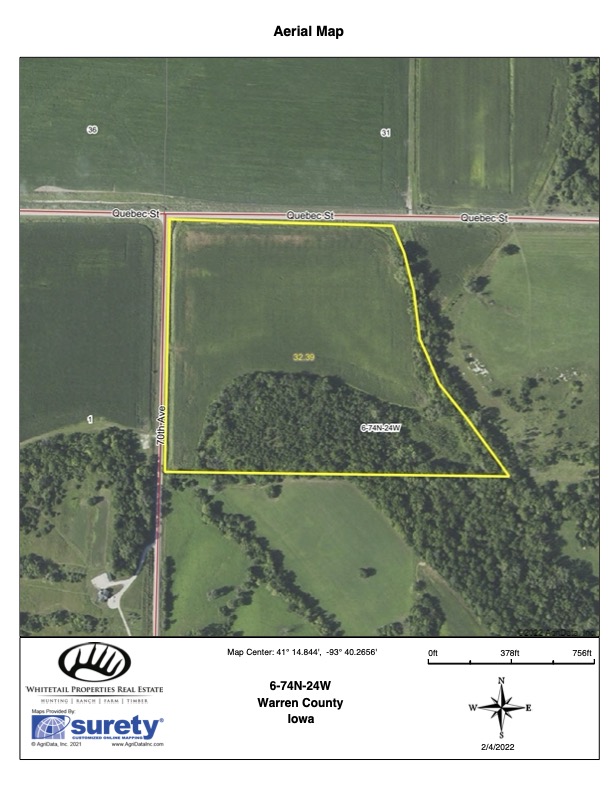 PRICE REDUCED!! Located in the highly sought-after Warren County, this surveyed 32.39-acre tract has it all and offers a lot of diversity. Starting with the 18 acres of tillable ground, which carries very quality 72.6 CSR2 dirt which will produce great crops and provide annual income. It also offers ideal spots for building your dream home or outbuilding with rural water and electricity available at the road. This property also offers great recreational value with the timber/cedar cover and has a great area for a food plot located in the southeast corner of the property. The amount of wildlife is abundant with deer and wild turkeys. There is also a creek that runs along the east side which creates a great rut spot for whitetail deer. This property offers everything from income to rec use with a great 50/50 combination. This property is conveniently located 13 minutes north of New Virginia, 20 minutes south of Indianola, and just 40 minutes south of the Greater Des Moines area. With the property being just 3/4 of a mile off of Highway R57 on Quebec Street it provides quick travel to the Greater Des Moines area. This farm checks A LOT of boxes for buyers in today’s market! Do not drag your feet on this one. Call to schedule a showing today!