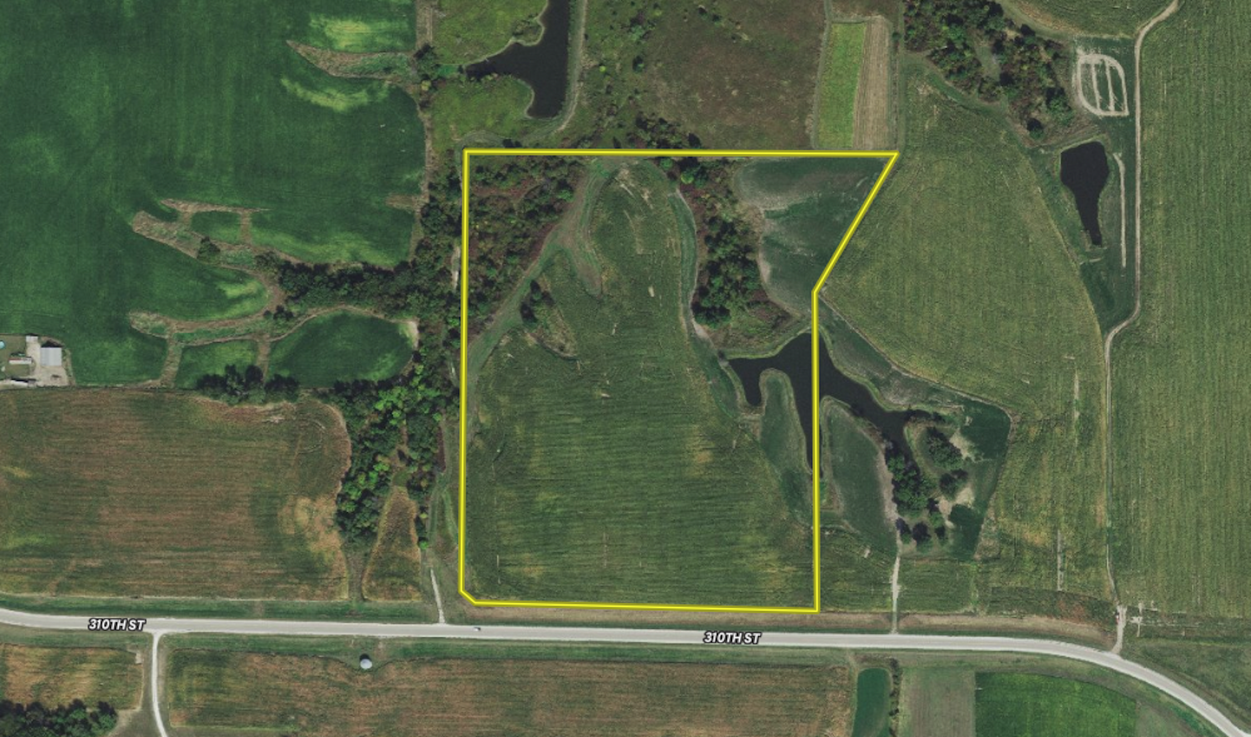 This property is located between Lake Darling and Brinton Timbers along the hard surface road W21. It has several amazing building sites, tillable, alfalfa, and three ponds! Two of the ponds have just finished being constructed by one of the most experienced pond builders in Southern Iowa. This farm has been significantly improved over the years with extensive terracing and alfalfa along the edges. A network of tiles feeds outlets into the new ponds, which means that they should always have clear water. One of the ponds is 30 feet deep at the dam wall, and an irregular bottom was intentionally created for ultimate fish habitat structure. There is a perfect building site overlooking the west pond and the rolling hills along the Skunk River Valley. The seller will also build the driveway to a building site of your choice, including the clay base and first layer of road stone for your driveway. Directly north is neighboring public hunting at Schmitter Heritage Area, with great upland bird, deer, and turkey hunting. If you’ve been waiting for a dream building site in a beautiful country setting, with a pond and income-producing acres, the opportunity is here to acquire what we think is one of the most prime building sites in the entire area. Call the listing agents today at (319) 853-1162 if you’re interested.