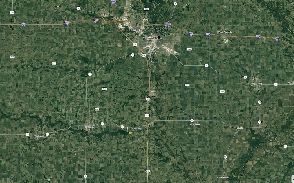 - Between Riverside and Kalona