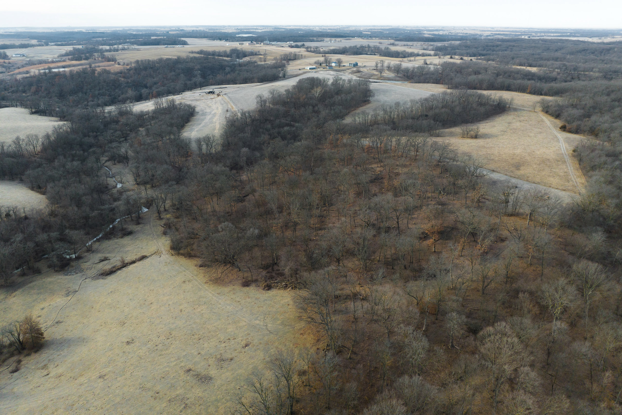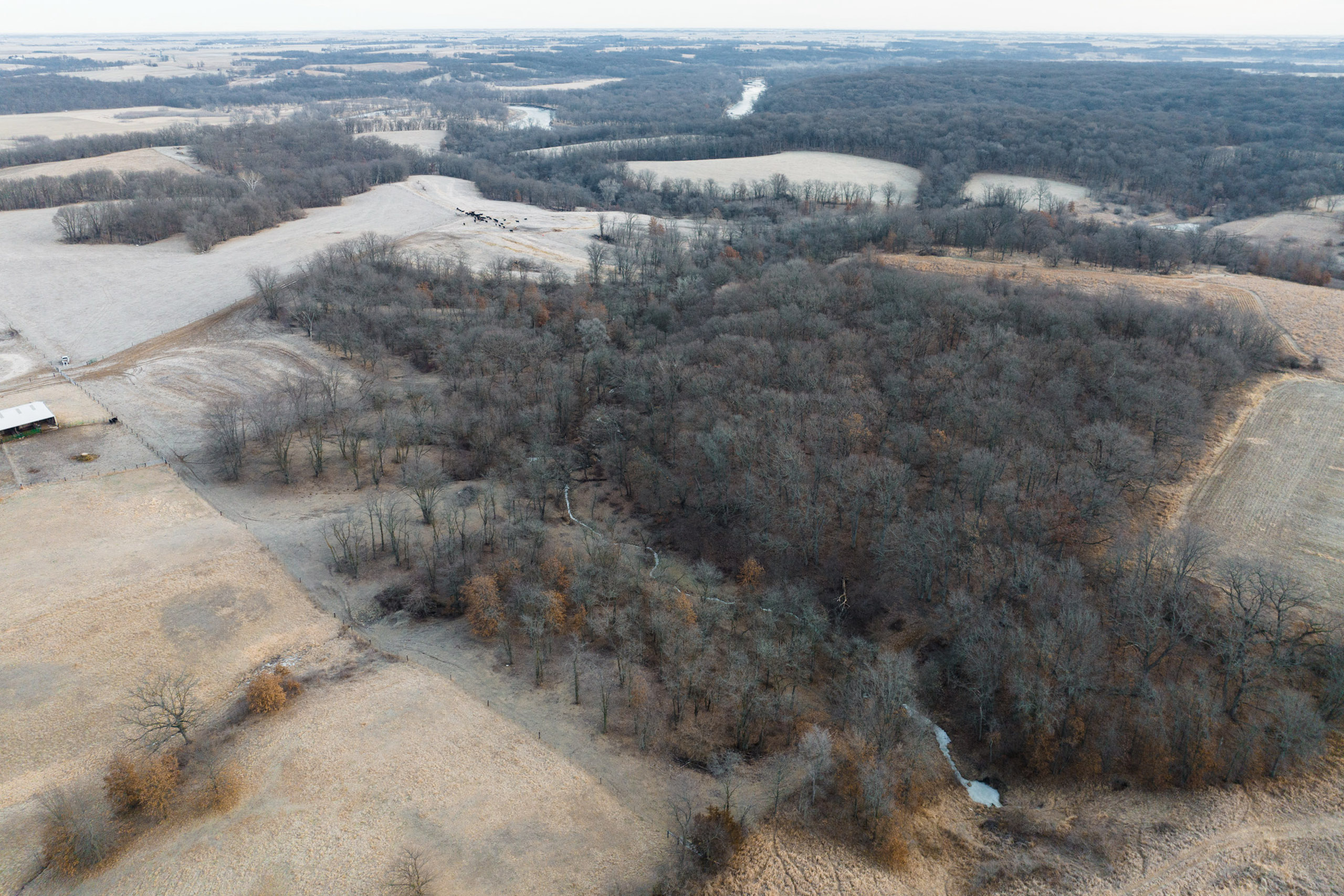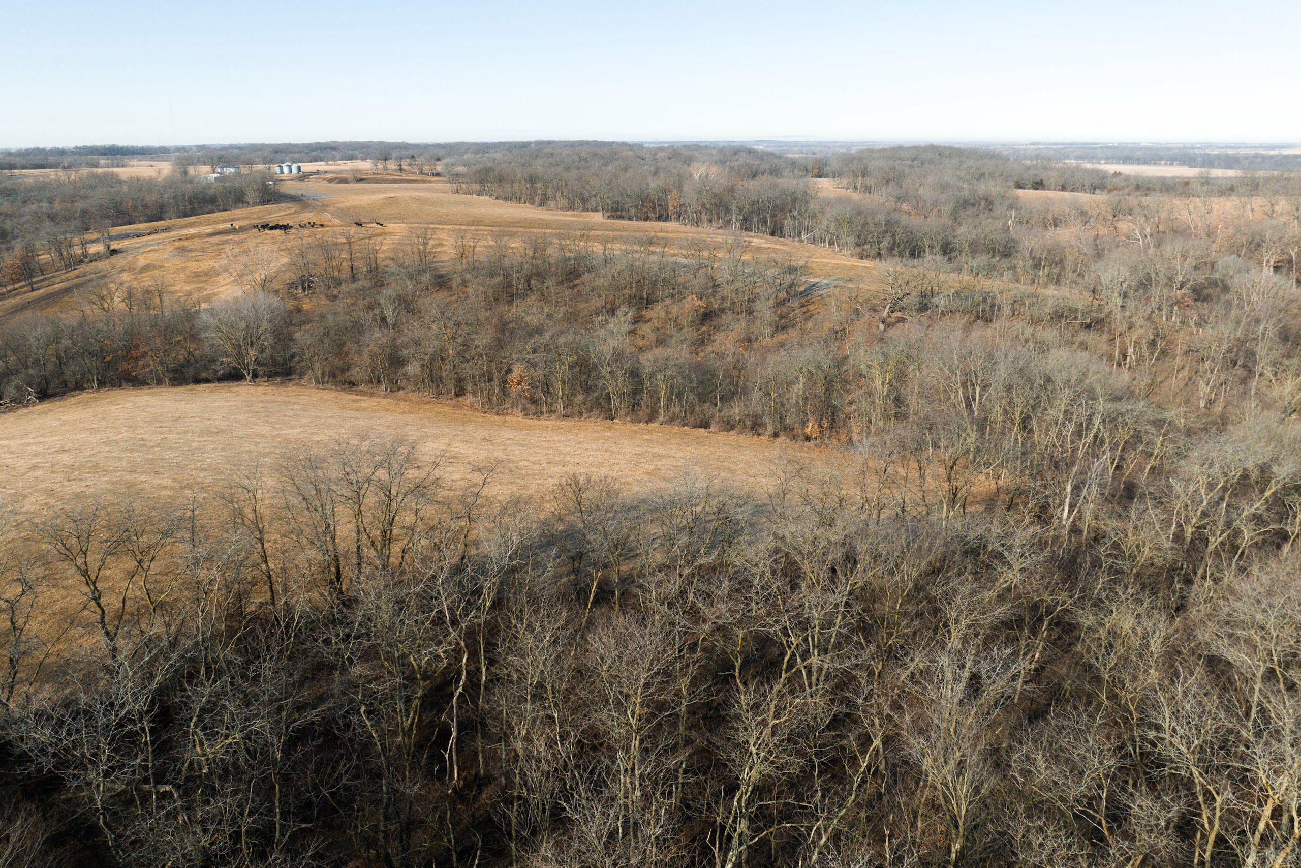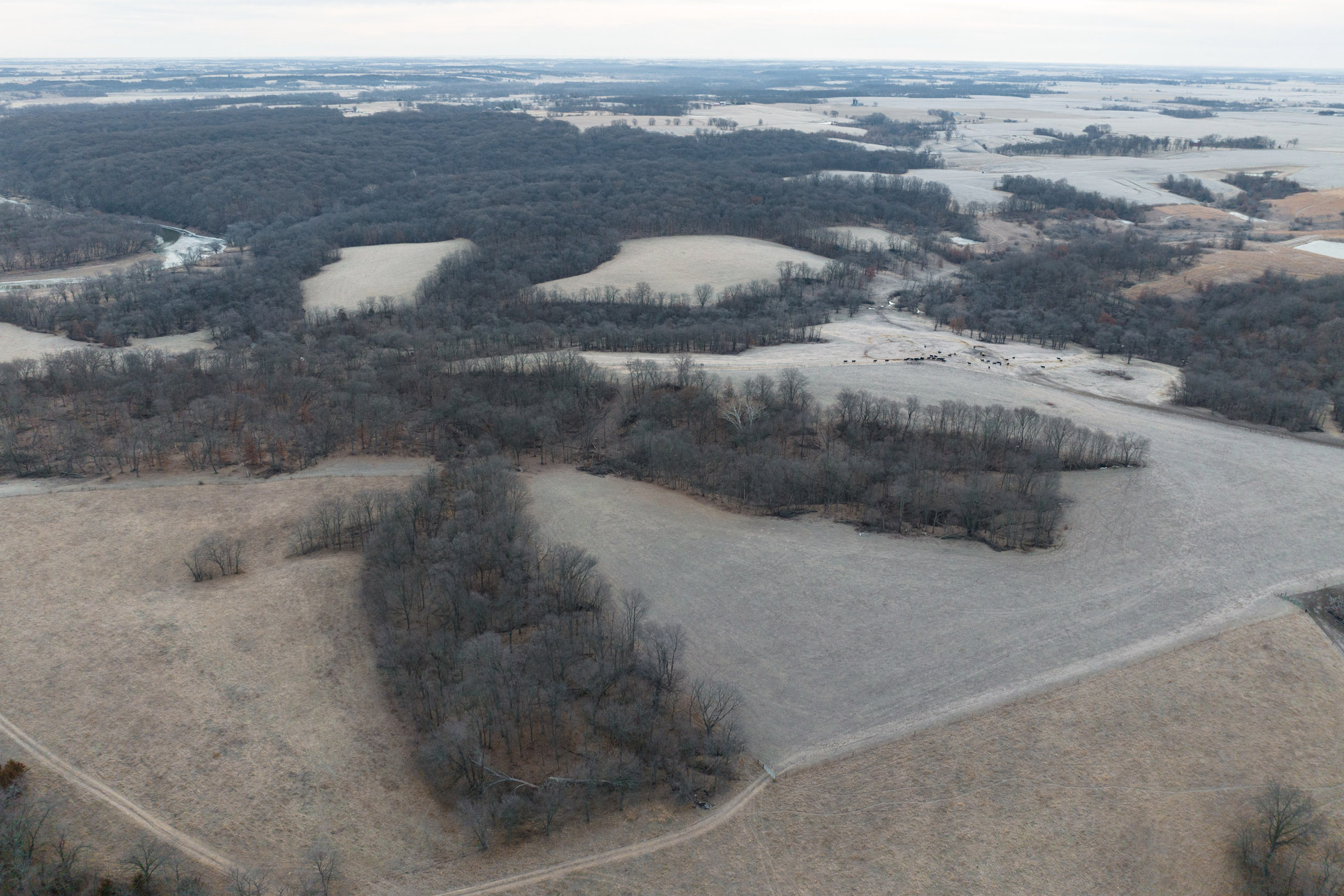 Cutting through the middle is a winding spring-fed creek, which offers clean flowing water year-round, a rare bonus for this part of Iowa. The entire perimeter of the property is lined with new fencing, and multiple interior pastures have been fenced, allowing for adequate grazing practices. Trails spread across the farm for easy access with equipment to every corner of the property. The cattle pastures offer multiple open areas that are flat enough for hay or row crop production if the next owner desires to transition the farm out of livestock grazing.