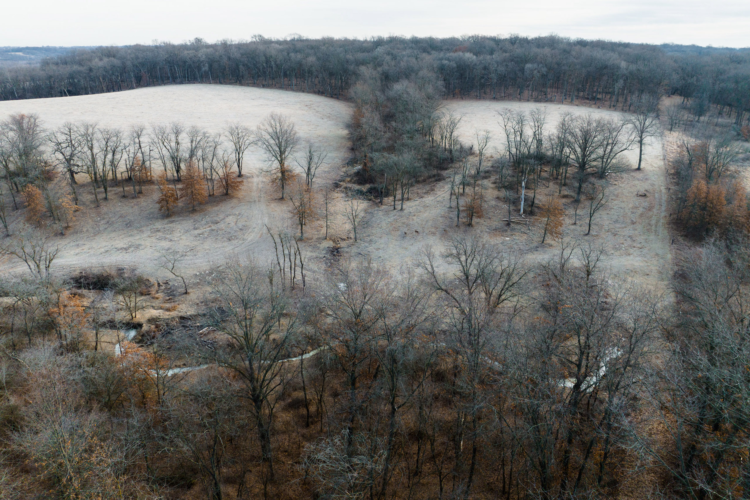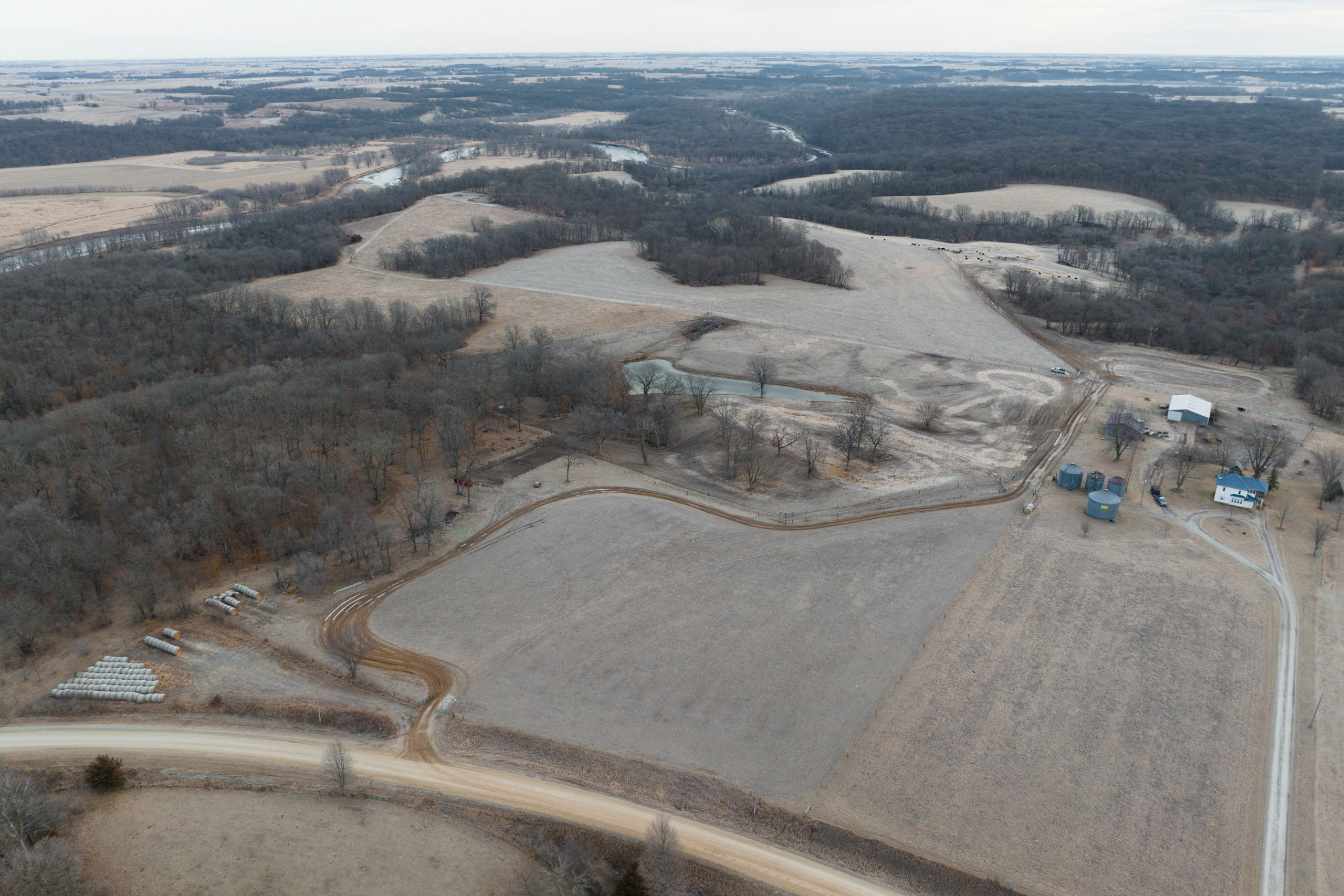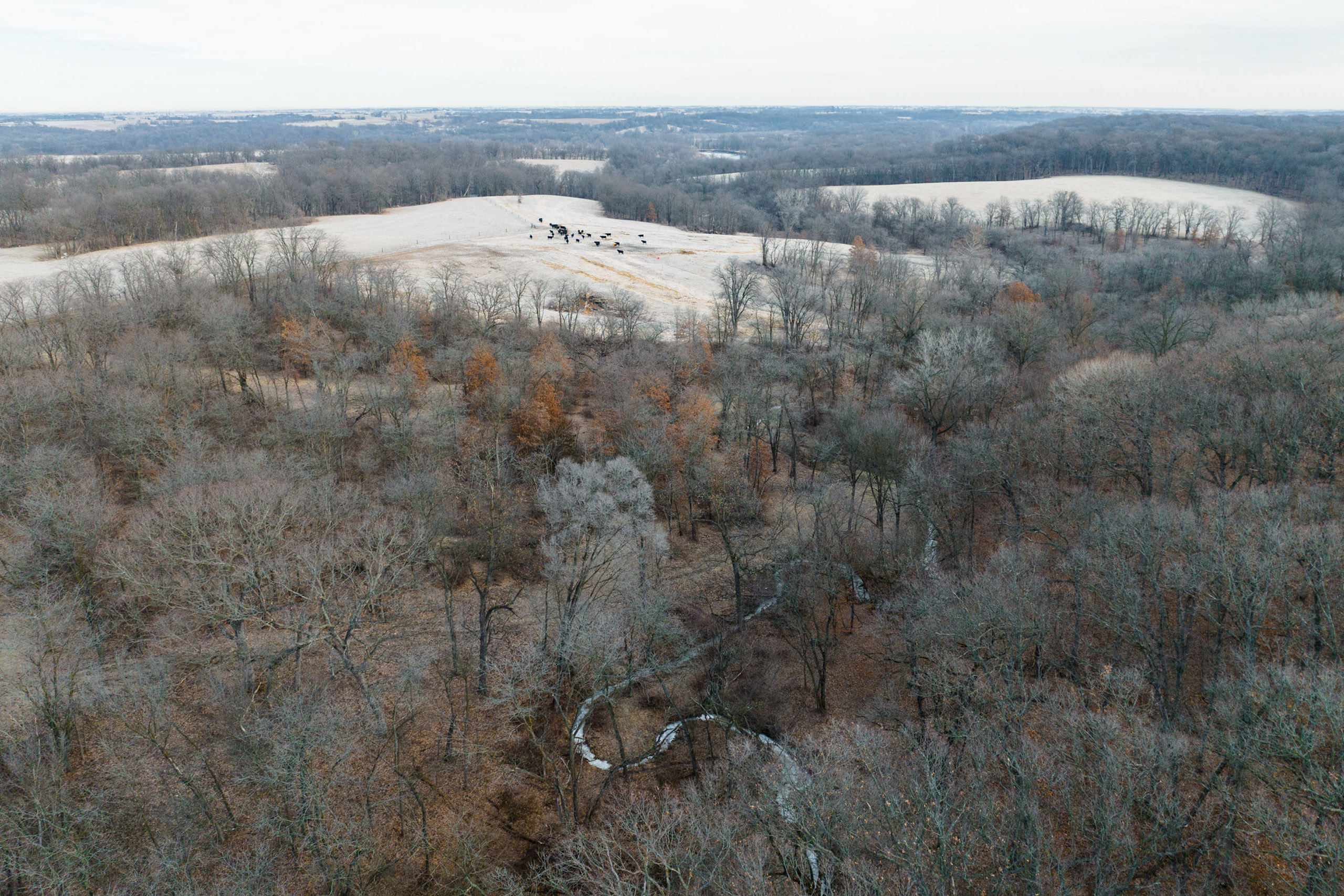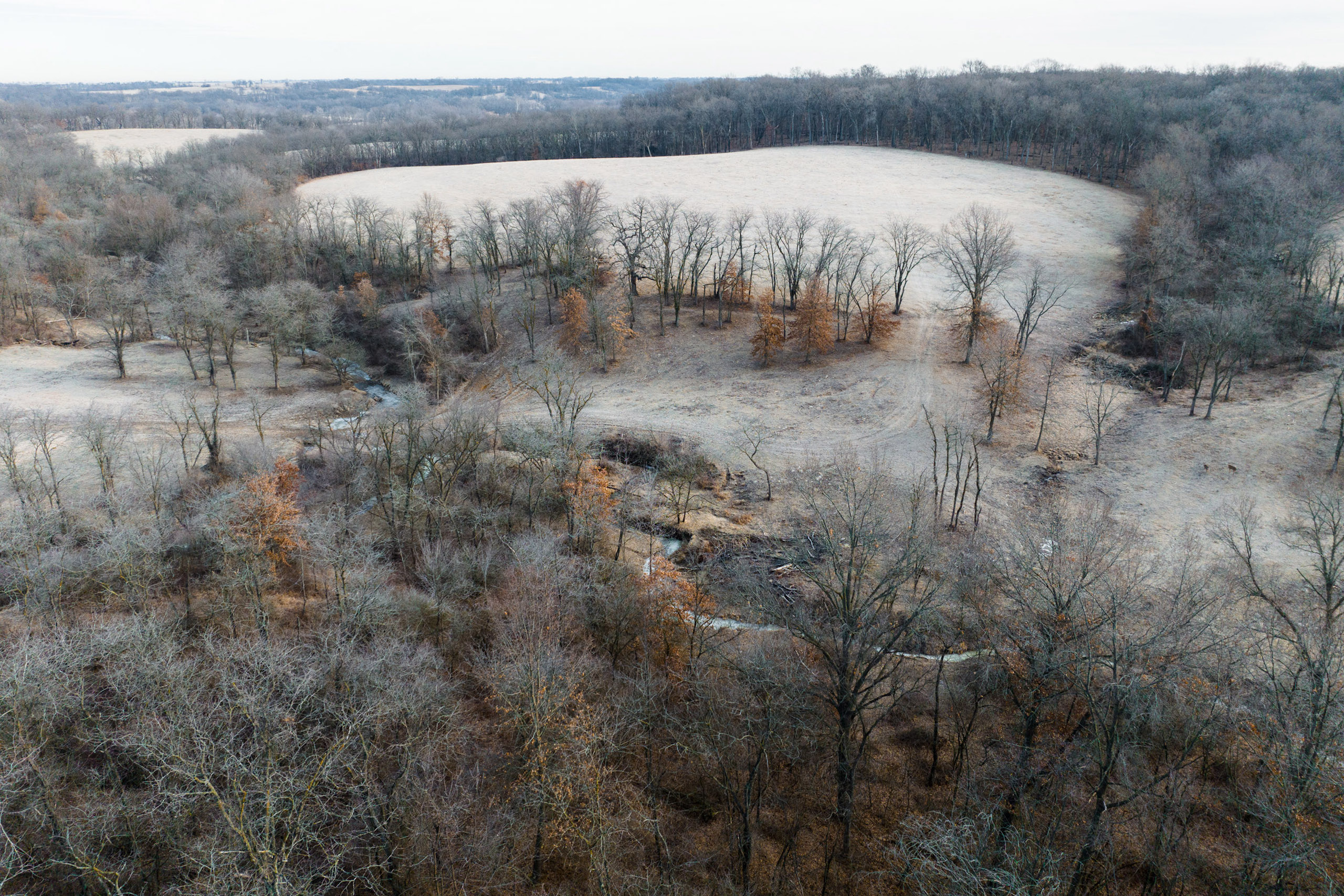 Cutting through the middle is a winding spring-fed creek, which offers clean flowing water year-round, a rare bonus for this part of Iowa. The entire perimeter of the property is lined with new fencing, and multiple interior pastures have been fenced, allowing for adequate grazing practices. Trails spread across the farm for easy access with equipment to every corner of the property. The cattle pastures offer multiple open areas that are flat enough for hay or row crop production if the next owner desires to transition the farm out of livestock grazing.