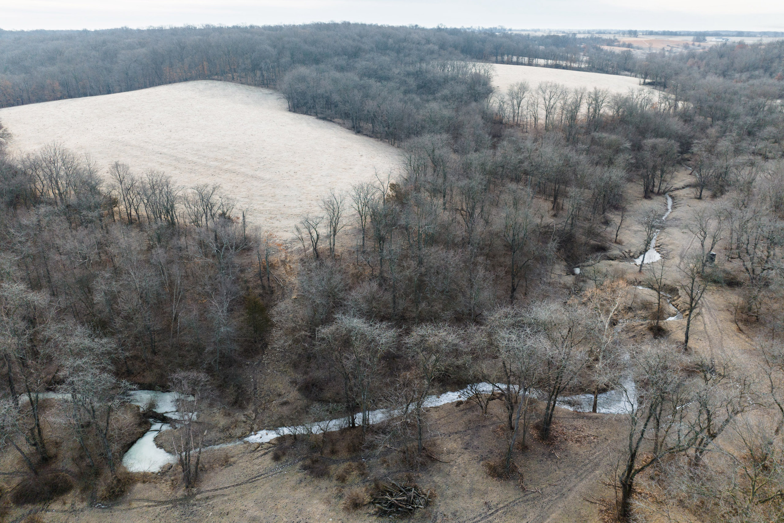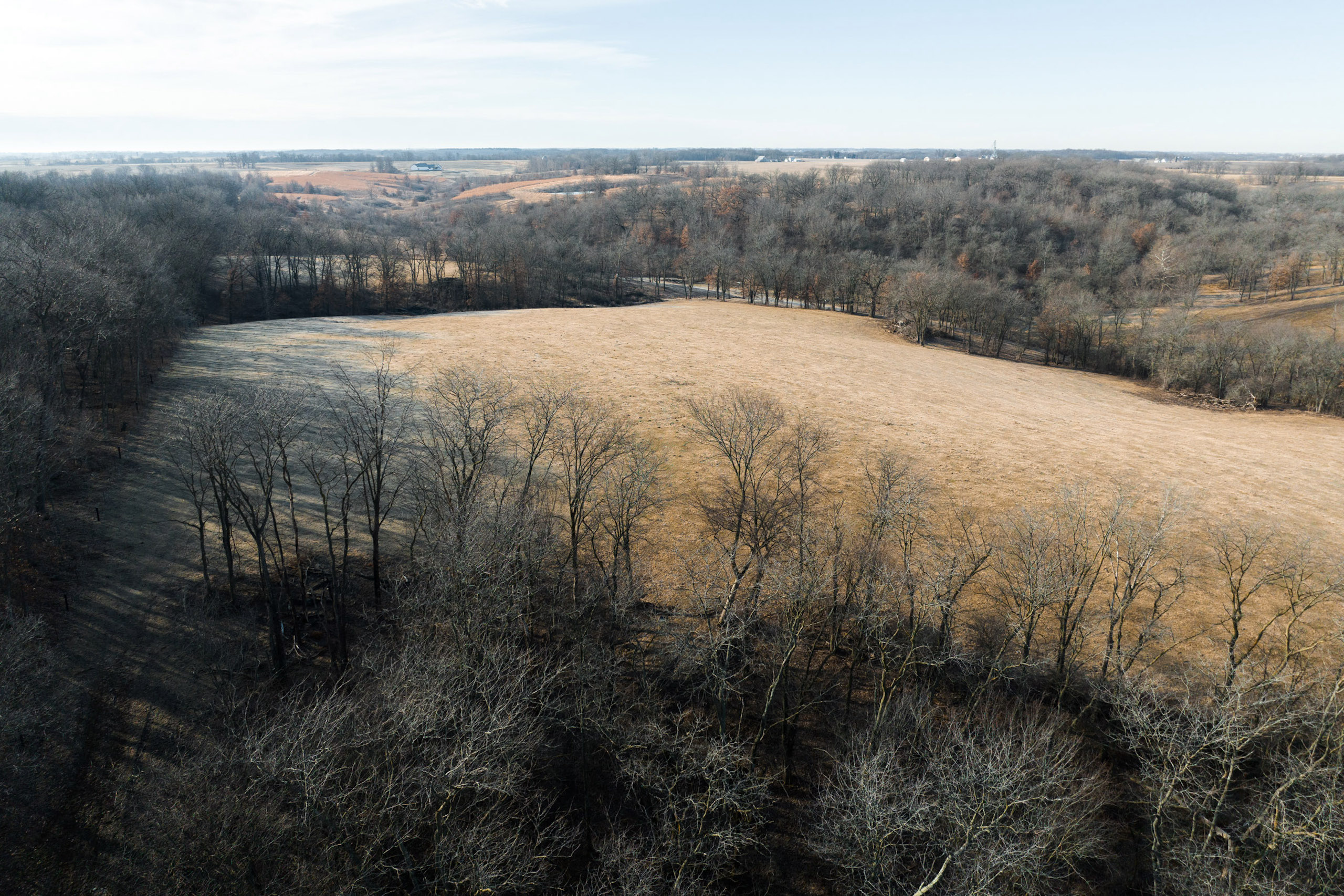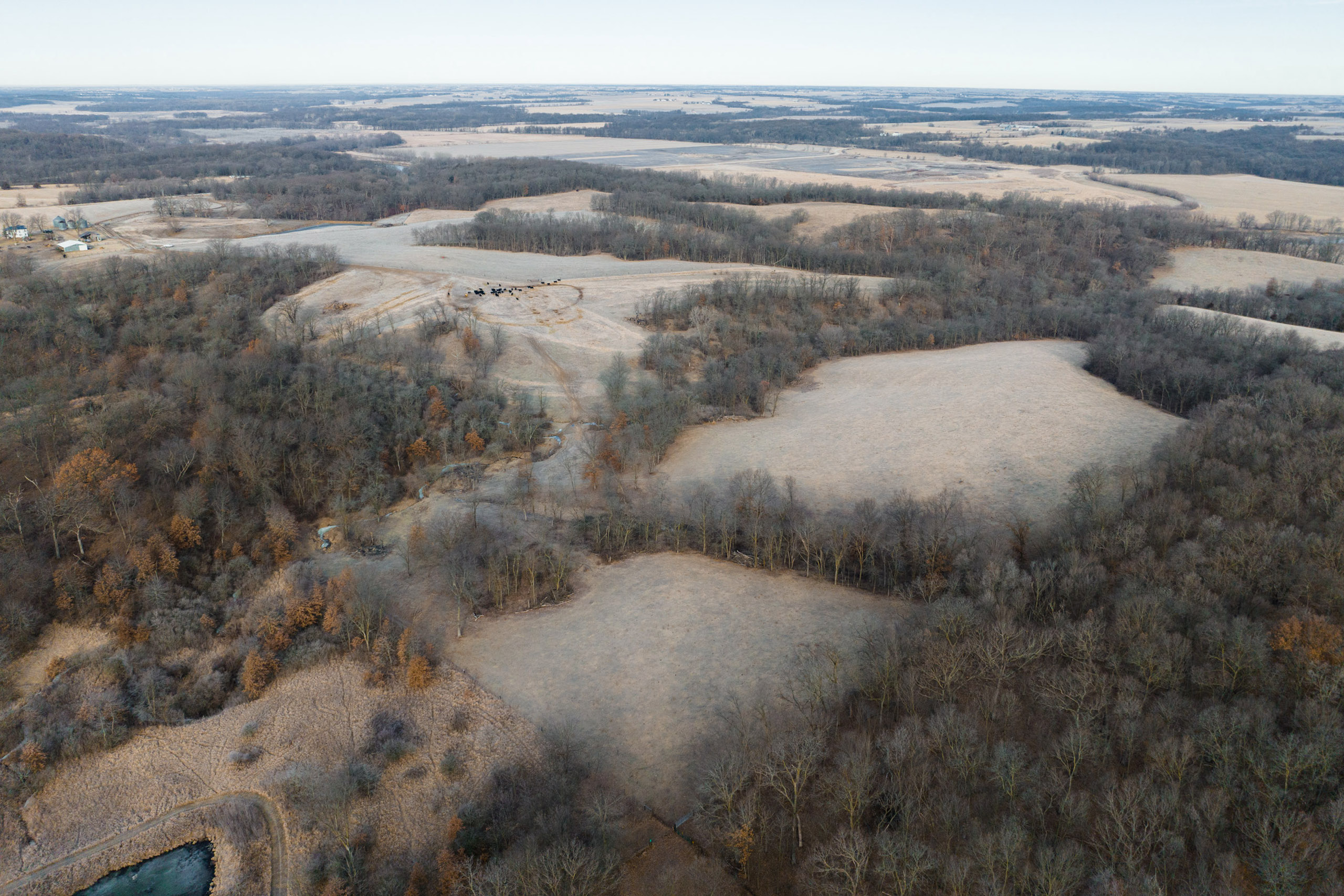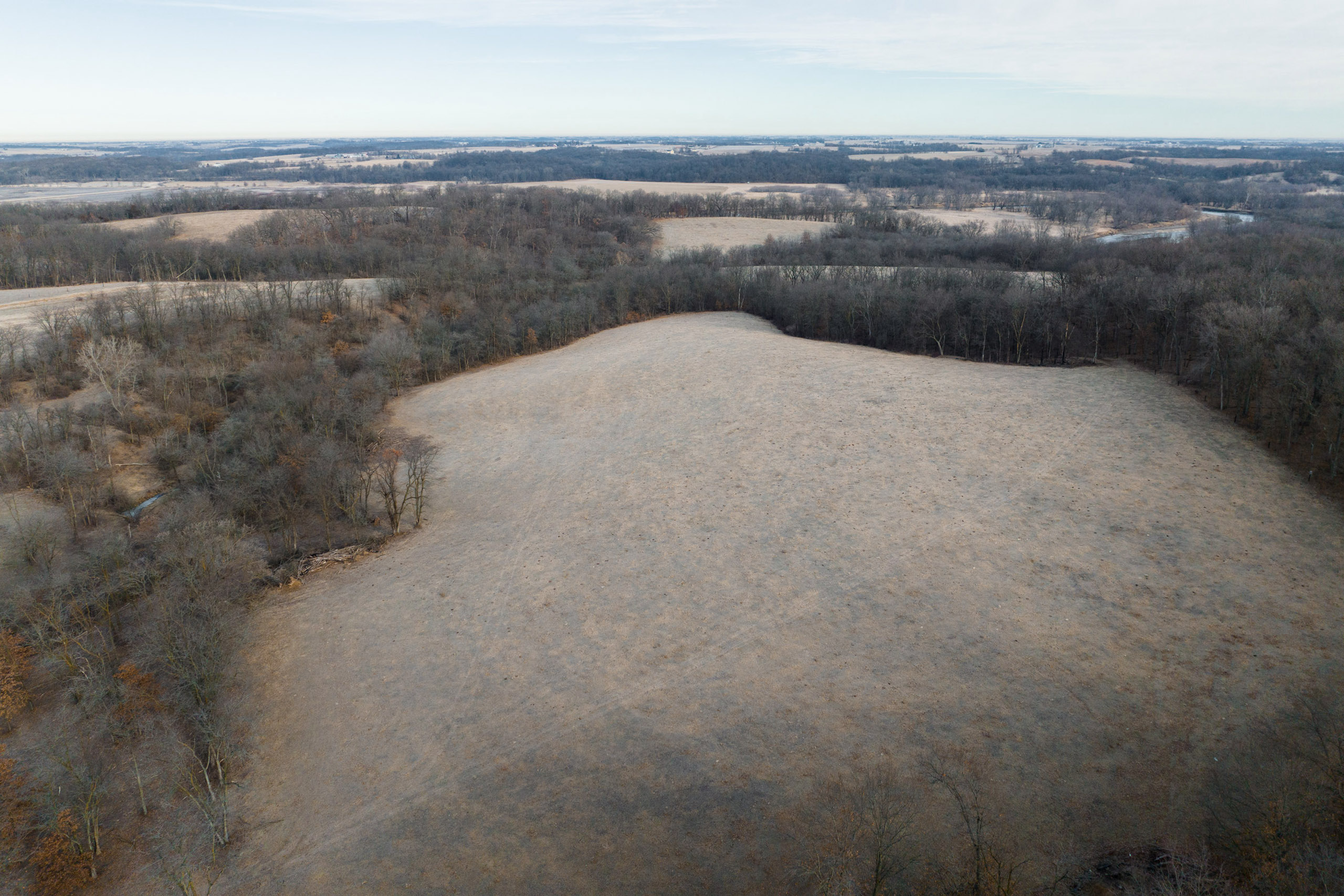 Only a few hundred yards off the road is a pond with multiple hilltops overlooking the water. Here would be a fantastic place to build a home or cabin in an area that would not disturb the rest of the farm. The road transitions to a blacktop just a hundred yards south of the entrance. Just a short two miles to the south is Lake Darling, a fantastic recreational park that does not allow antlered harvest.