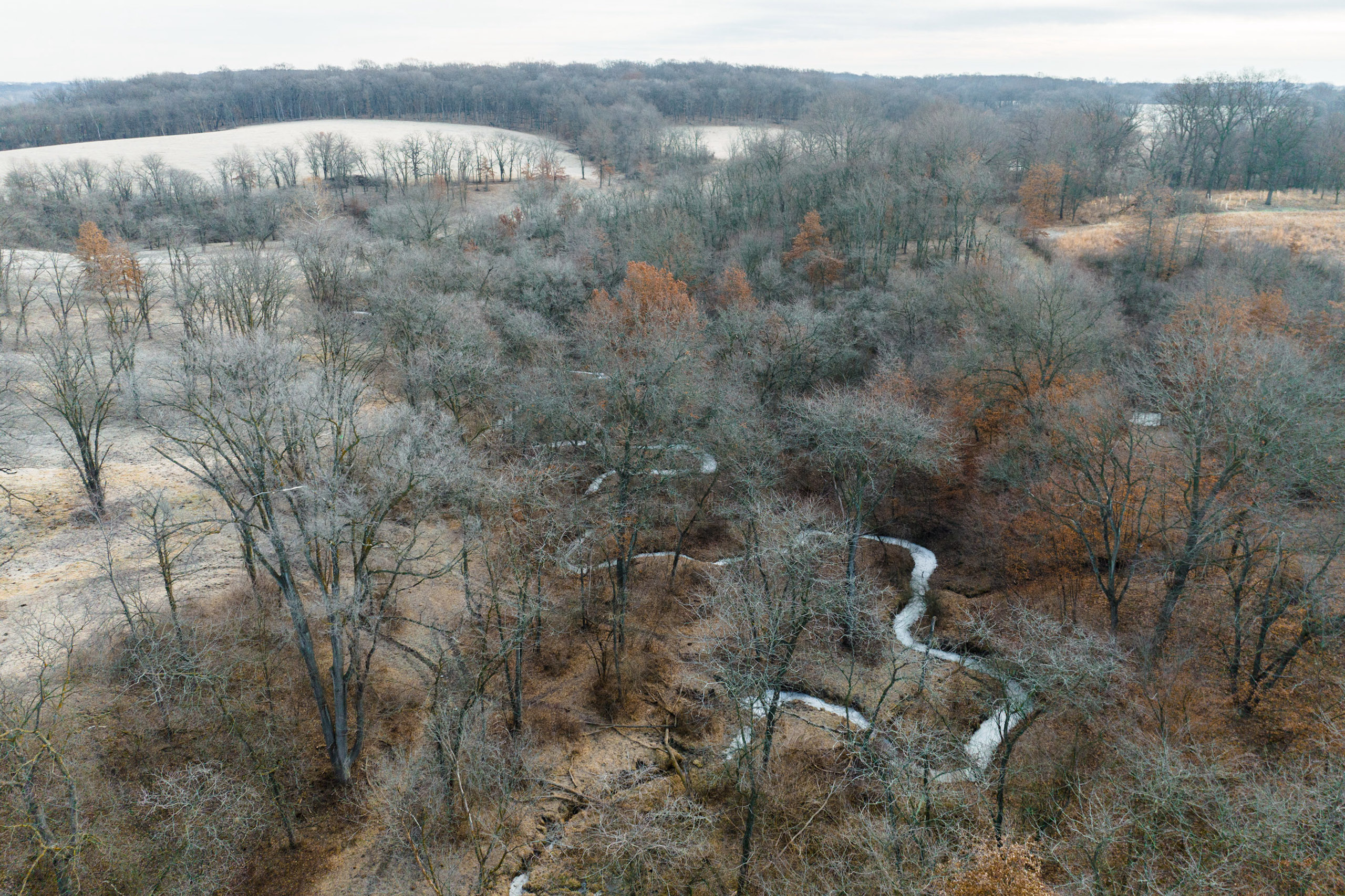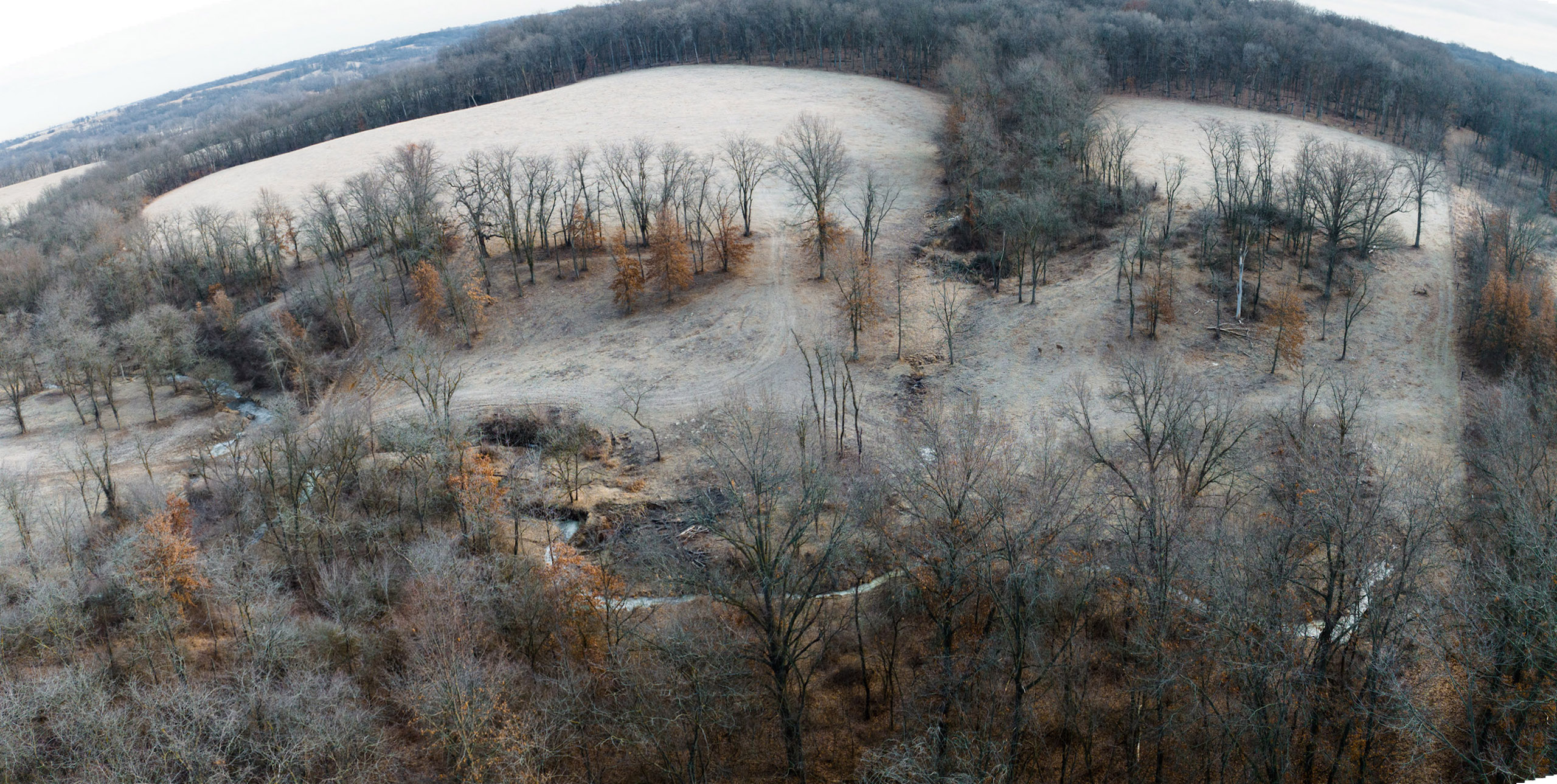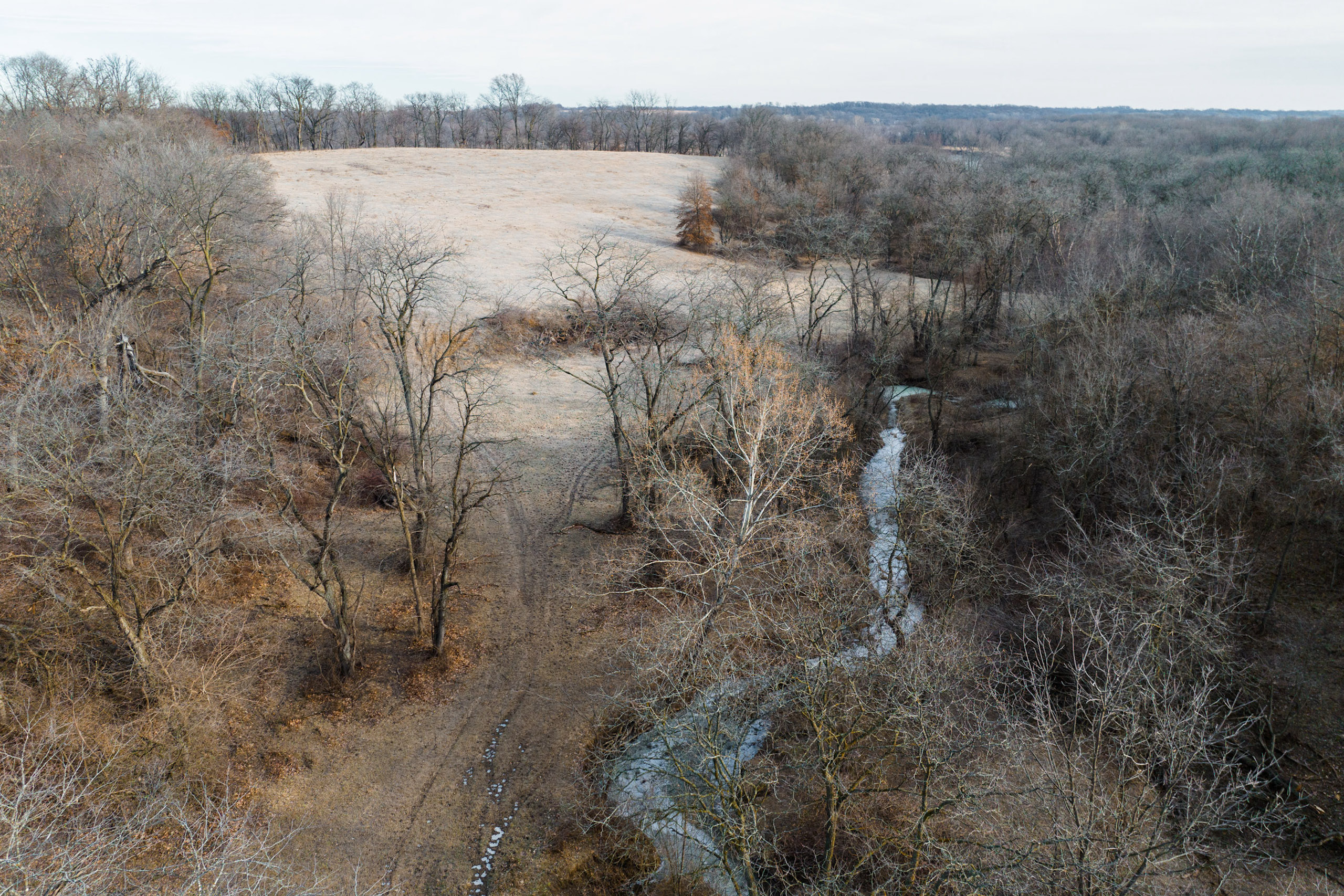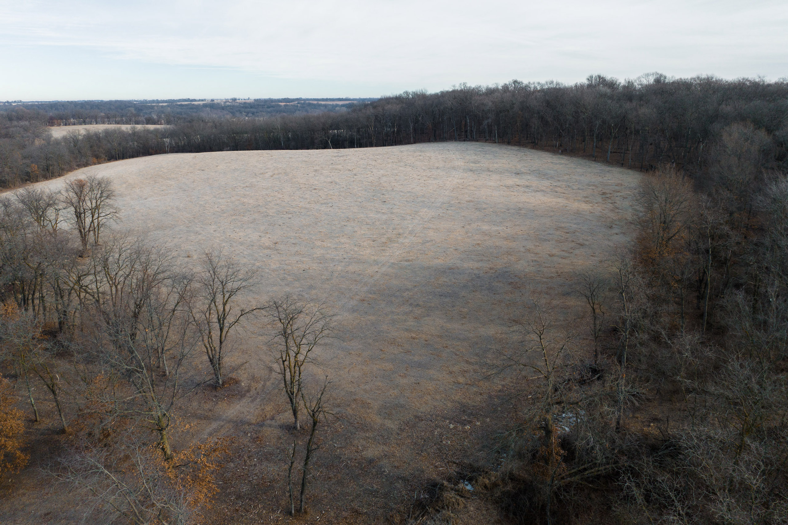 Only a few hundred yards off the road is a pond with multiple hilltops overlooking the water. Here would be a fantastic place to build a home or cabin in an area that would not disturb the rest of the farm. The road transitions to a blacktop just a hundred yards south of the entrance. Just a short two miles to the south is Lake Darling, a fantastic recreational park that does not allow antlered harvest.