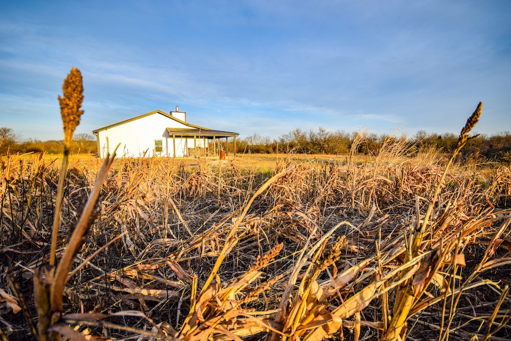 The lodge with 1800 sf of living area, built in 2023 by a very sought-after builder in the area, comes complete with high-end finishes in the kitchen and baths, which include eye-catching solid surface tops and beautiful tile work. A Generac generator is in place should a storm steal your power. A safe-room/vault is in place for the possible tornadic event, and a long wrap-around covered porch is waiting for you at the end of an enjoyable day on the farm. The Lodge has an attached oversized shop with tall ceilings, automatic overhead doors, and a utility sink.