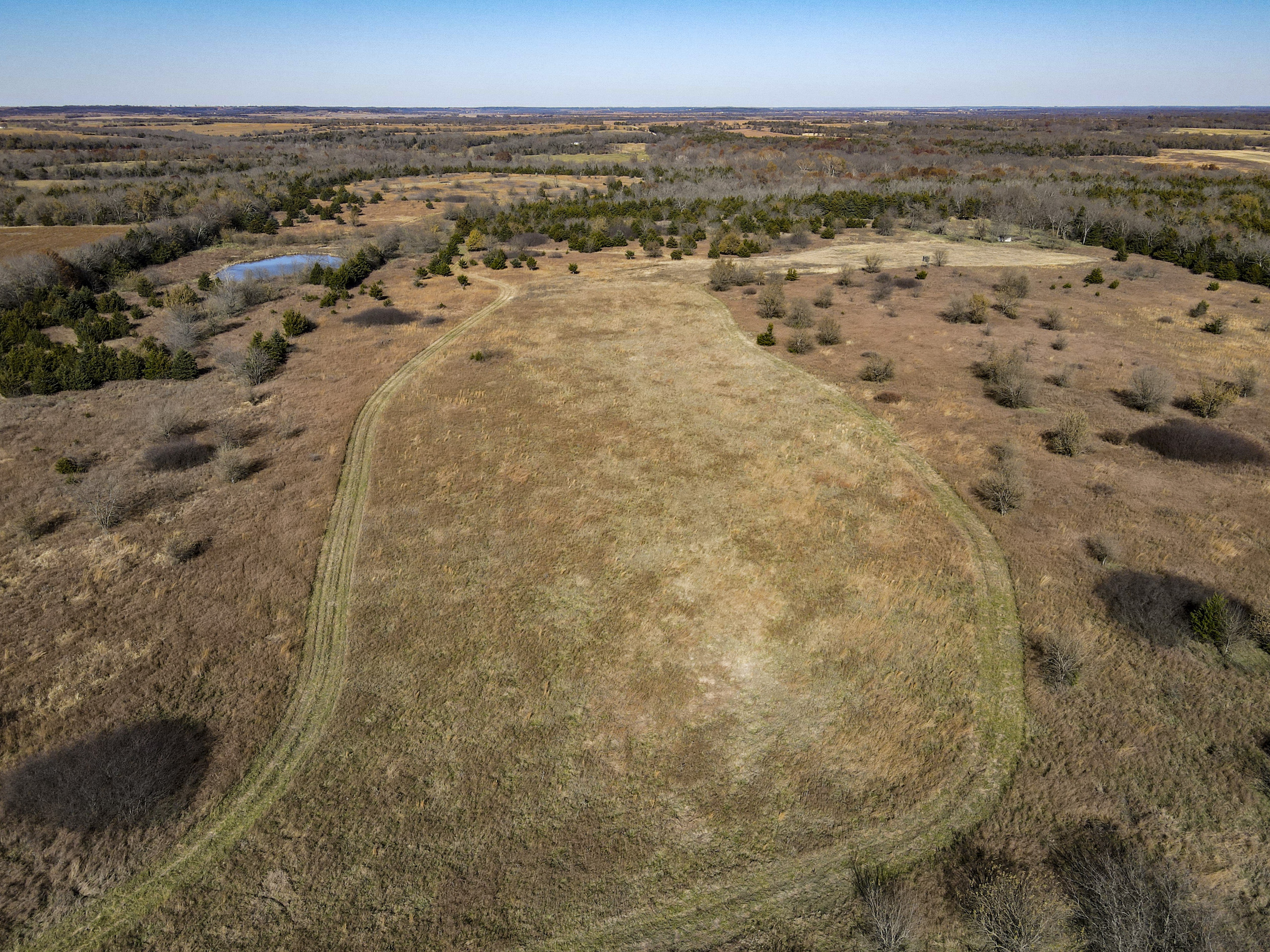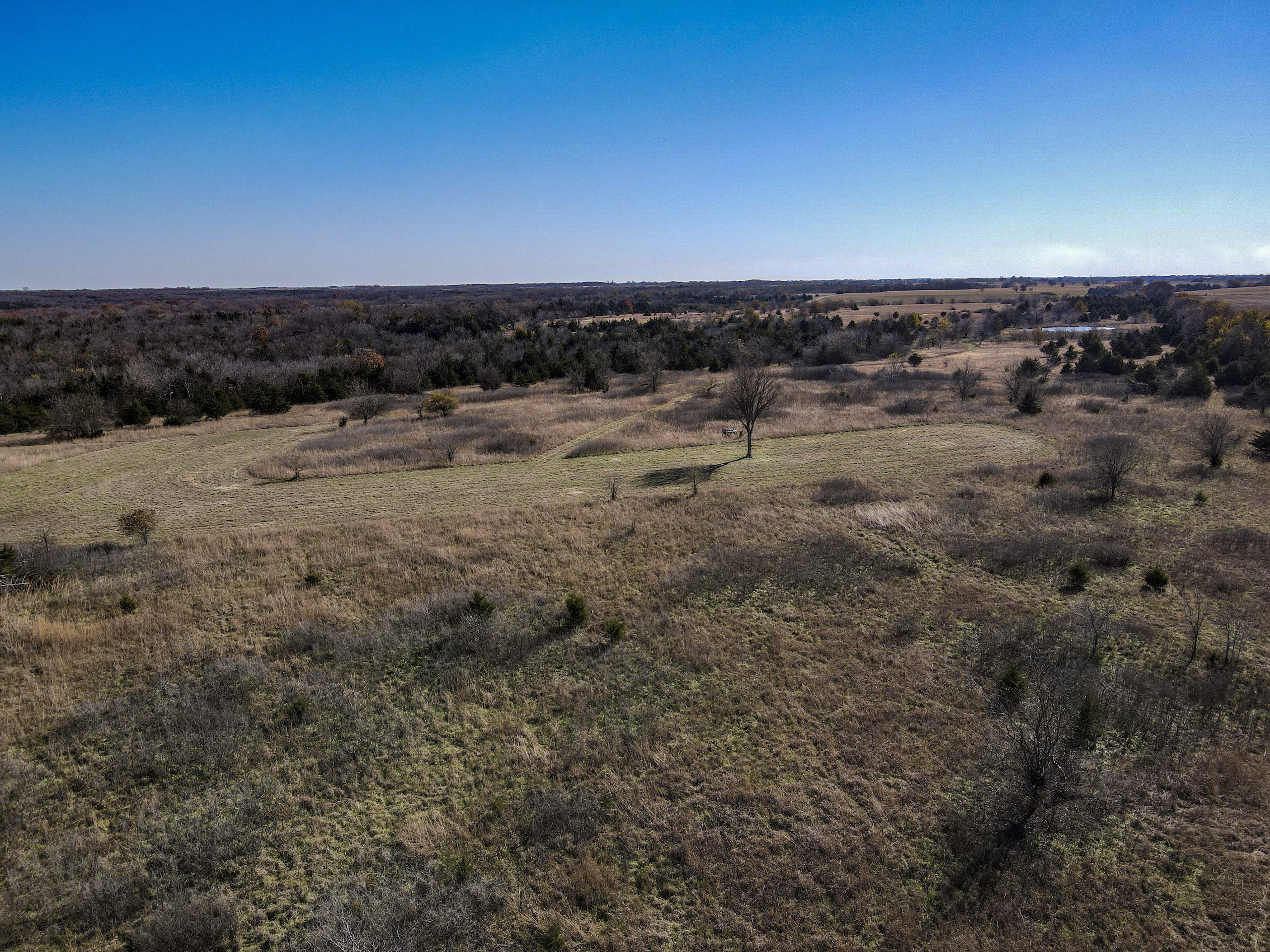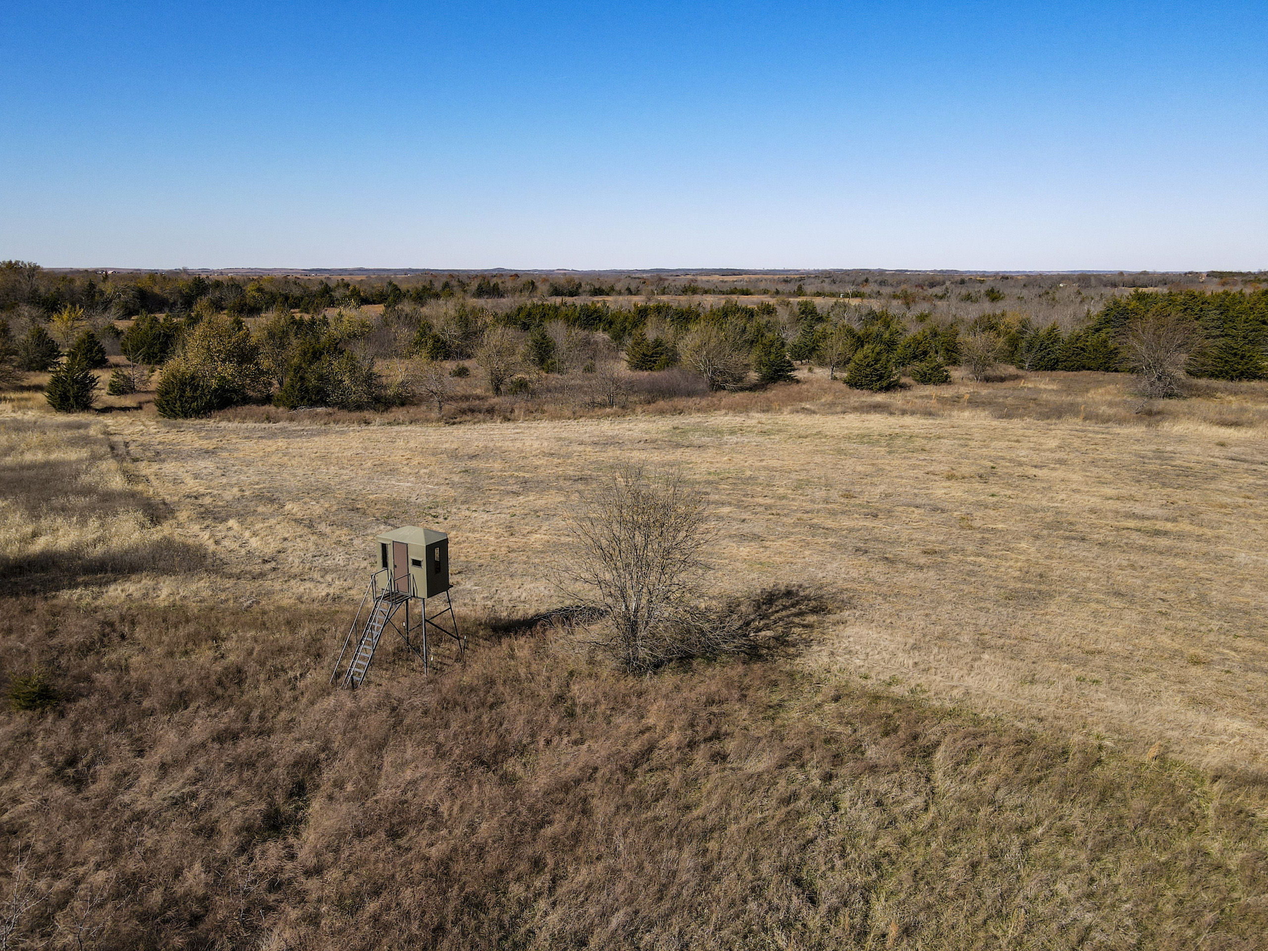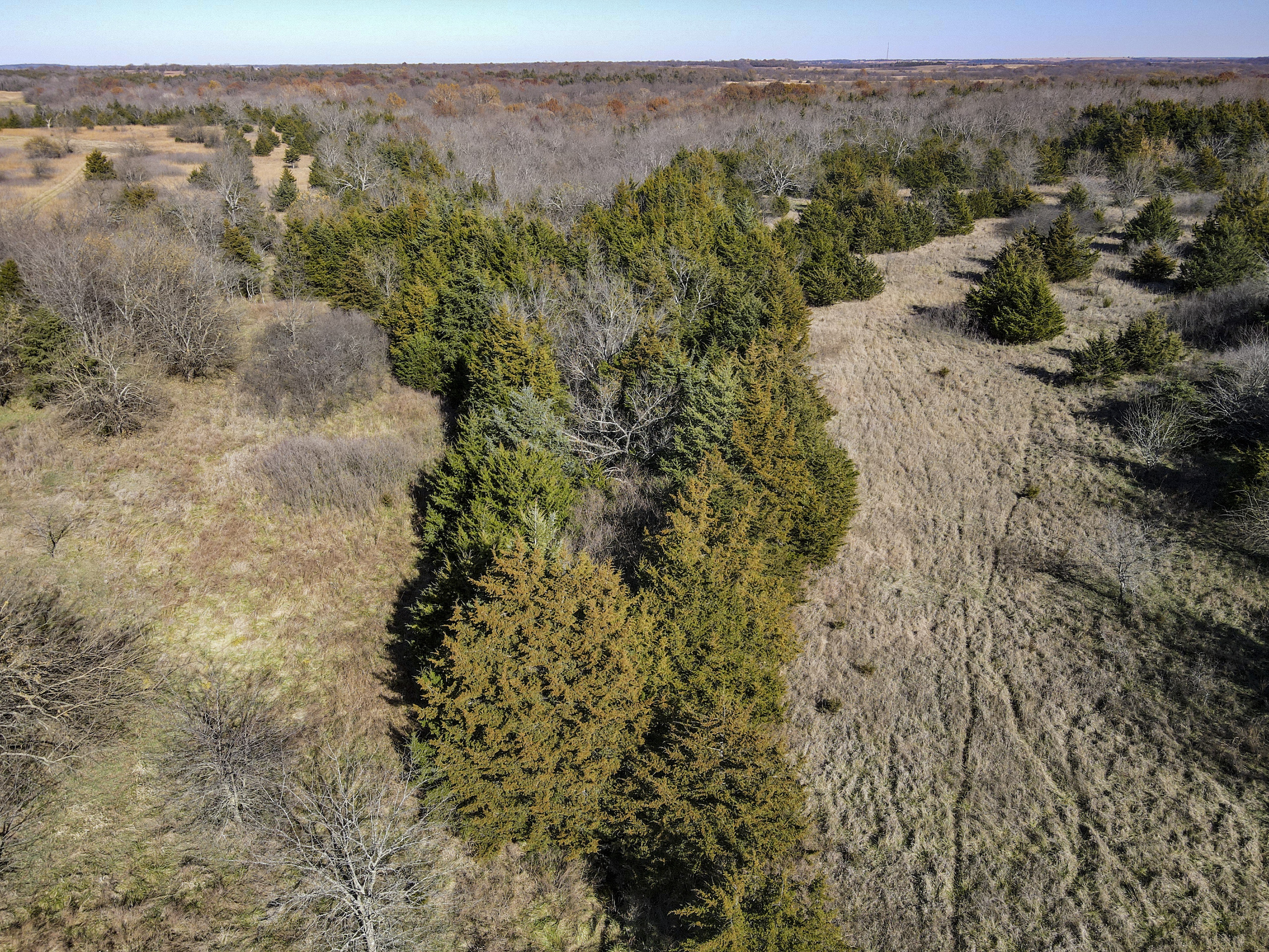 Situated within a carefully managed area for high-end mature deer these 120 acres are conveniently located near the Anderson and Linn County line. With years of no grazing and limited pressure, this farm is flush with brushy areas, quality stand of native grass, and several deep pockets of larger timber. Timber habitat includes a wide range of hardwood trees including big cedars, oaks, sycamore, and some walnuts. The more open areas are thick with small brush and plum thickets with cedars mixed in making for excellent bedding for deer and other wildlife and birds. There are several blinds, feeders, and food plots that have been maintained by the current owner and the hunt spots are easily accessible from a consistently mowed trail system. There are also several small springs that feed a few small ponds that are great for the wildlife and certainly would see a few ducks to set in over the fall months. This general area, which is SW of Centerville and NE of Kincaid, is just a touch over an hour from Olathe and the south KC metro area. Known for excellent deer and turkey hunting, this part of Kansas has seen a high demand for good recreational tracts this size and the availability of listings is limited. There is also excellent county road access and nice views from possible build sites and yet the farm still maintains limited road frontage. Electric does run along 1100 Road on the southern property border so it is likely availability would be there for a cabin or homesite if so desired. Please contact the listing agent if you wish to schedule a viewing of this property.