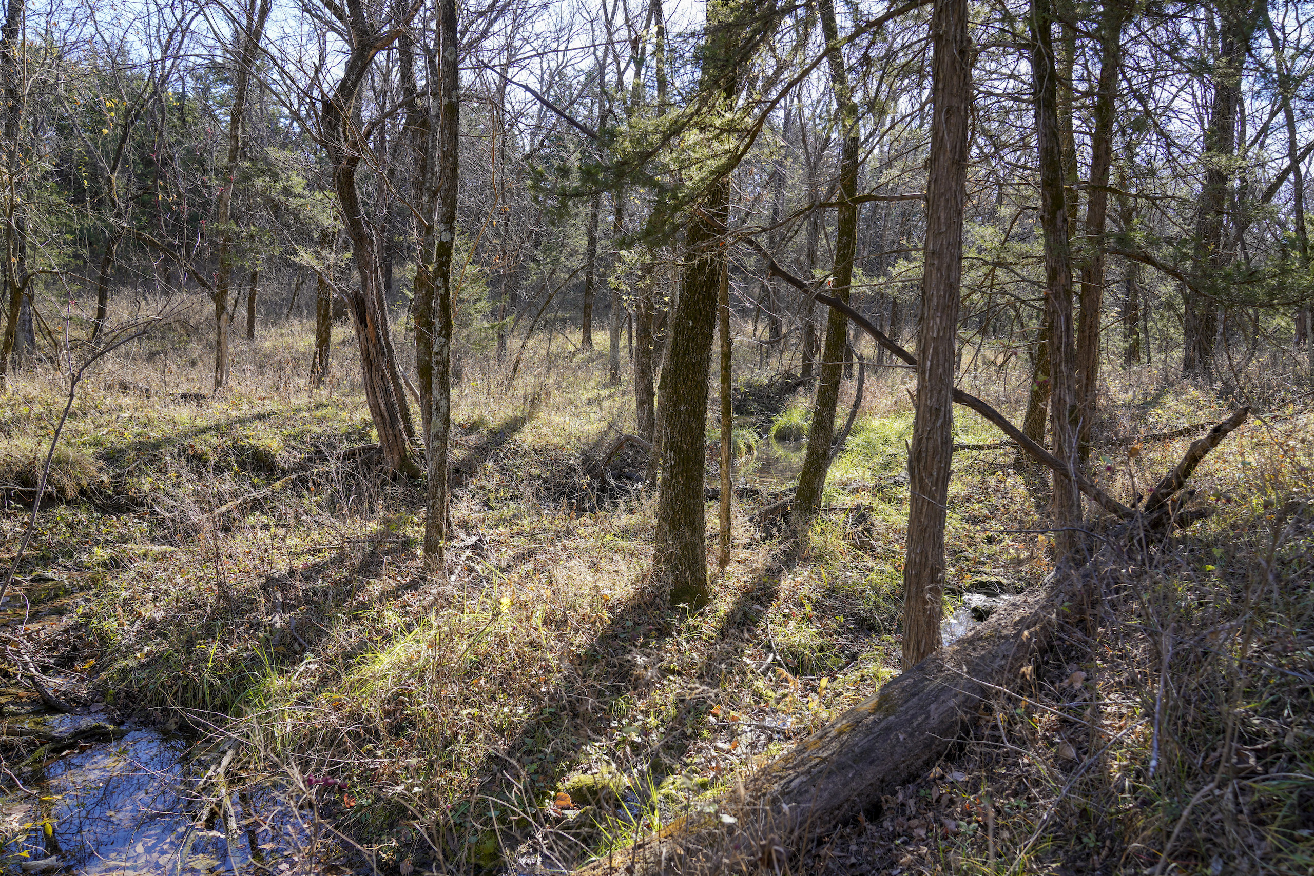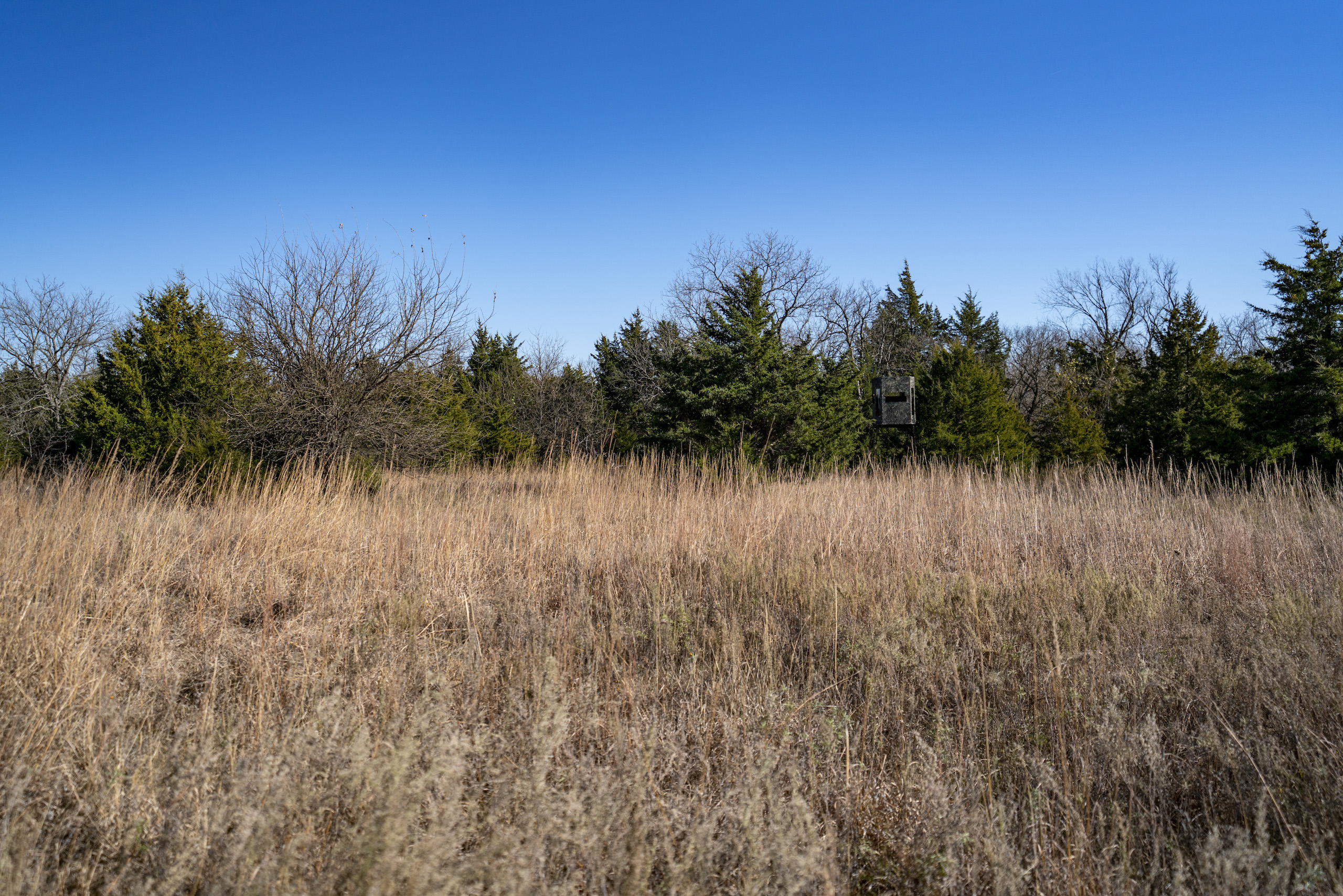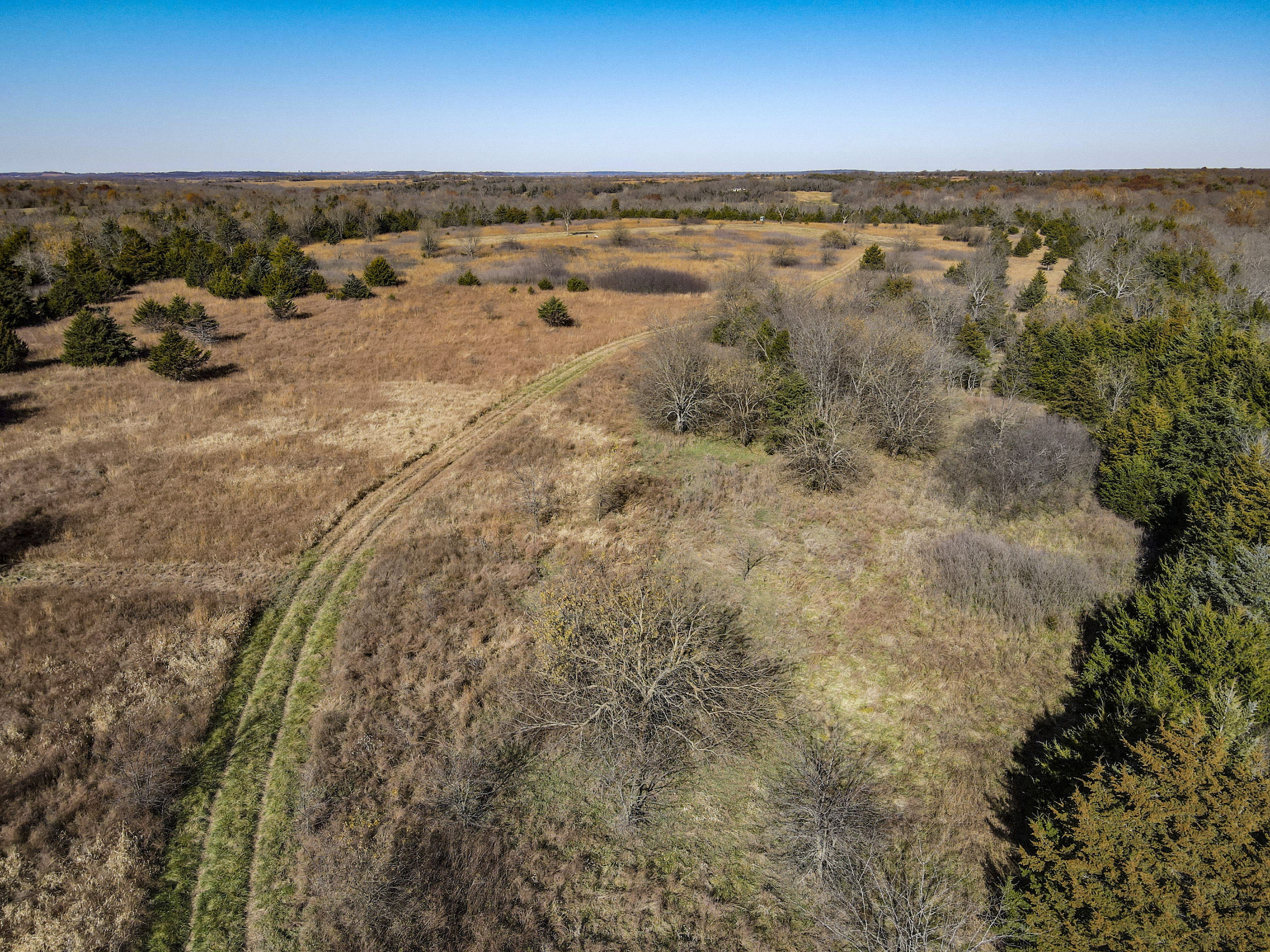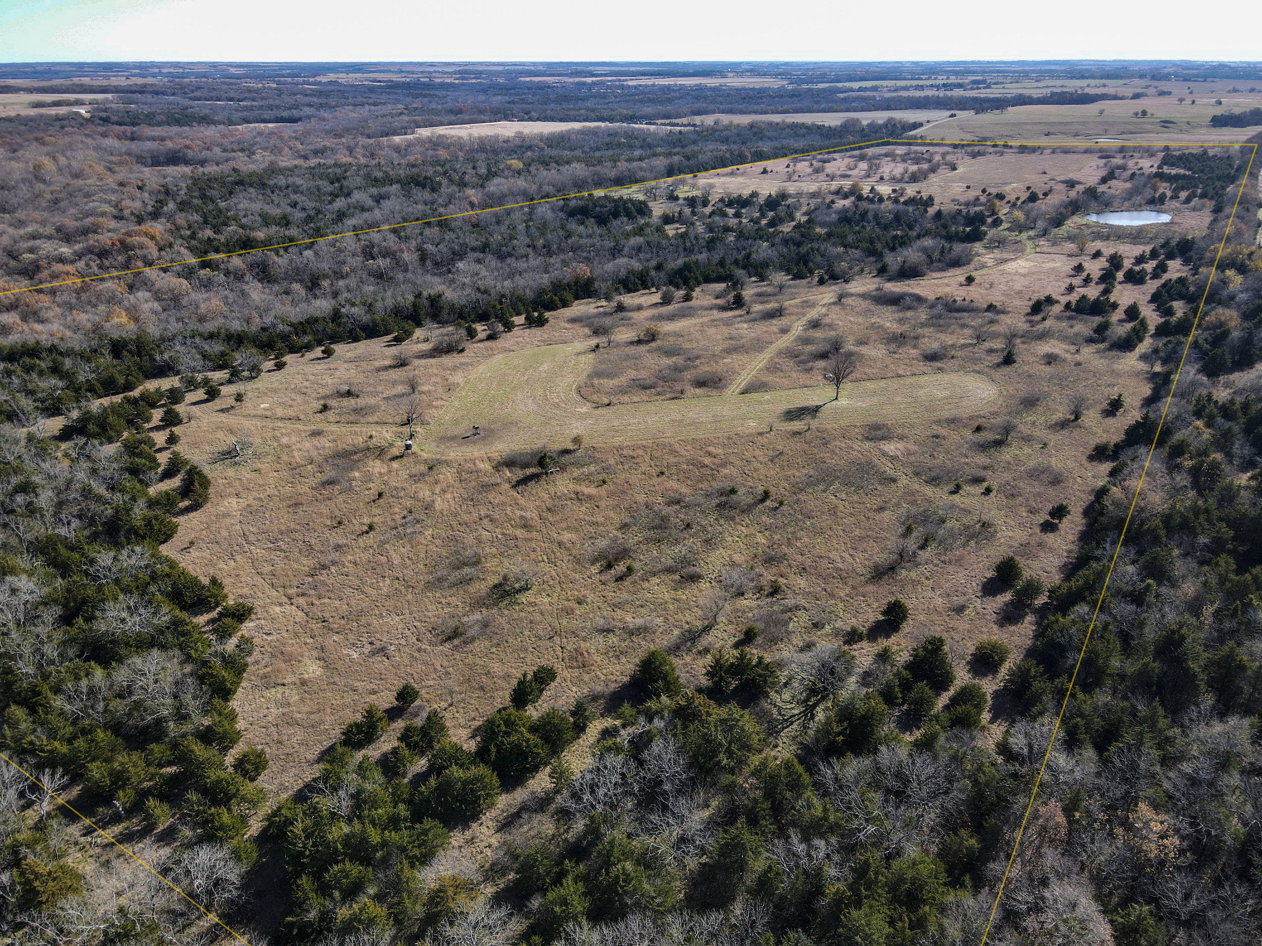 Situated within a carefully managed area for high-end mature deer these 120 acres are conveniently located near the Anderson and Linn County line. With years of no grazing and limited pressure, this farm is flush with brushy areas, quality stand of native grass, and several deep pockets of larger timber. Timber habitat includes a wide range of hardwood trees including big cedars, oaks, sycamore, and some walnuts. The more open areas are thick with small brush and plum thickets with cedars mixed in making for excellent bedding for deer and other wildlife and birds. There are several blinds, feeders, and food plots that have been maintained by the current owner and the hunt spots are easily accessible from a consistently mowed trail system. There are also several small springs that feed a few small ponds that are great for the wildlife and certainly would see a few ducks to set in over the fall months. This general area, which is SW of Centerville and NE of Kincaid, is just a touch over an hour from Olathe and the south KC metro area. Known for excellent deer and turkey hunting, this part of Kansas has seen a high demand for good recreational tracts this size and the availability of listings is limited. There is also excellent county road access and nice views from possible build sites and yet the farm still maintains limited road frontage. Electric does run along 1100 Road on the southern property border so it is likely availability would be there for a cabin or homesite if so desired. Please contact the listing agent if you wish to schedule a viewing of this property.