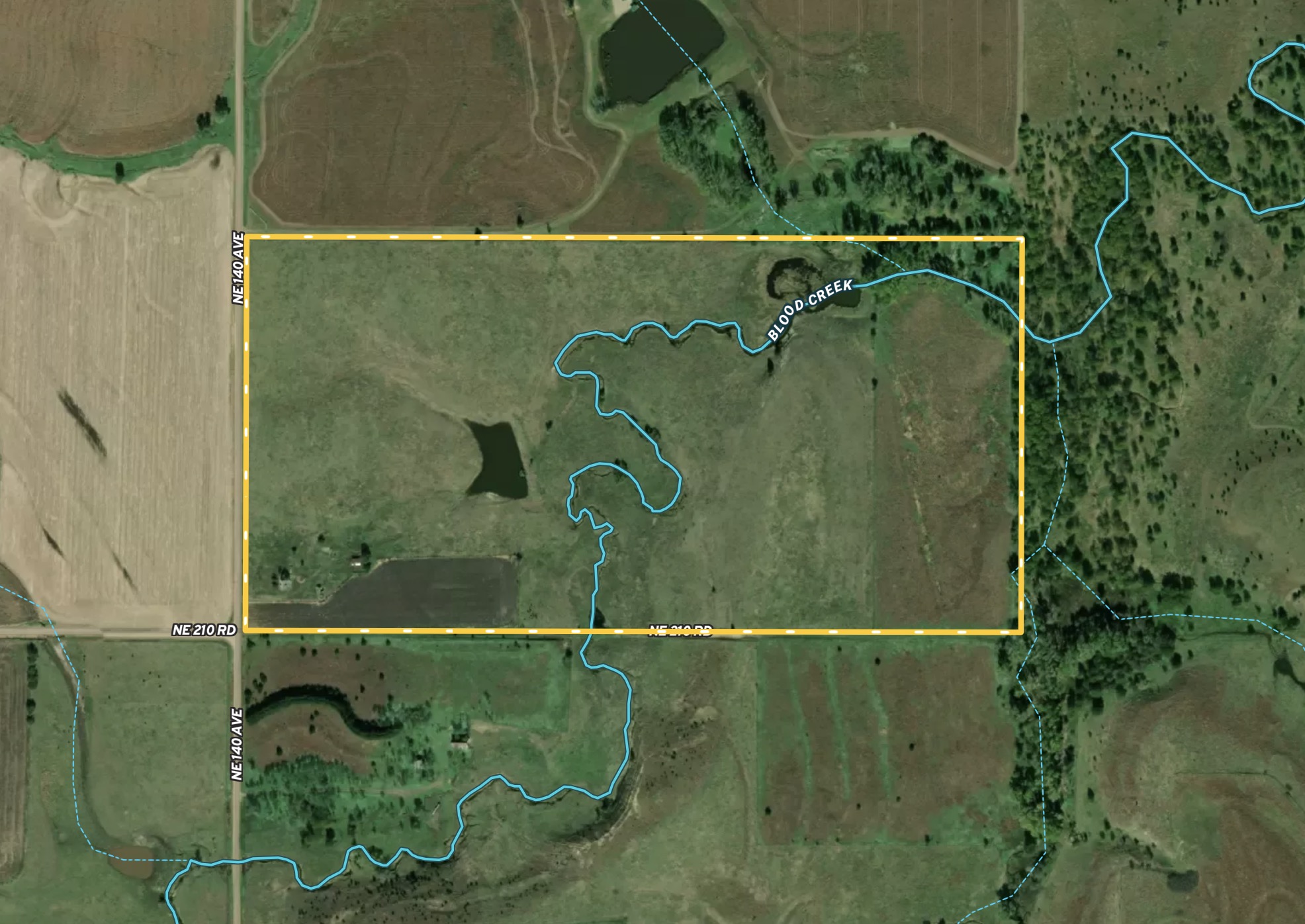 - Blood Creek runs through the center of the property