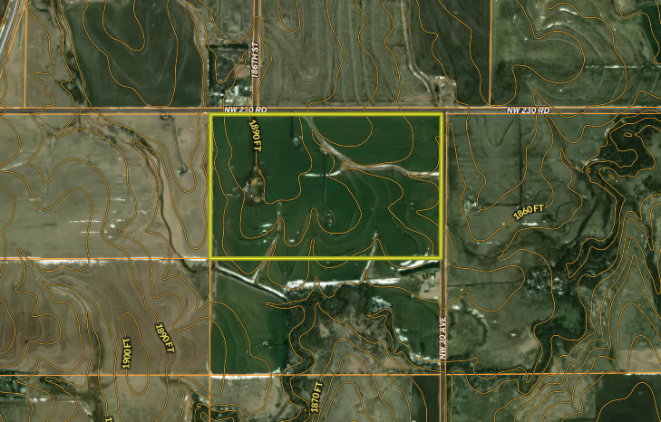 Some of the best farm ground in each county seems to never come up for sale. The opportunity to purchase a property of this quality rarely comes available within Barton County. Situated in northern Barton County, only 1 half mile east of Highway 281 on Northwest 230 Road, you will find this premiere track of farm ground. Nearly 100% tillable land, considering a waterway drainage and oil well site, will make up the difference. This property is currently all soybean stock, with a tenant planning on planting a fall crop this spring. The owner and tenant are on a cash rental agreement, and possession will fall after the 2024 fall harvest. Call one of the listing agents to get more info on the cash rental agreement. Situated within this property are 3 different oil wells, with the seller’s mineral interest being 3.8% of the 1/8 royalty interest (.00483591). If your interested in purchasing other land within this area, we are also offering 73 acres only a mile away owned by the same seller. Be sure to check that listing out on our agent page as well.