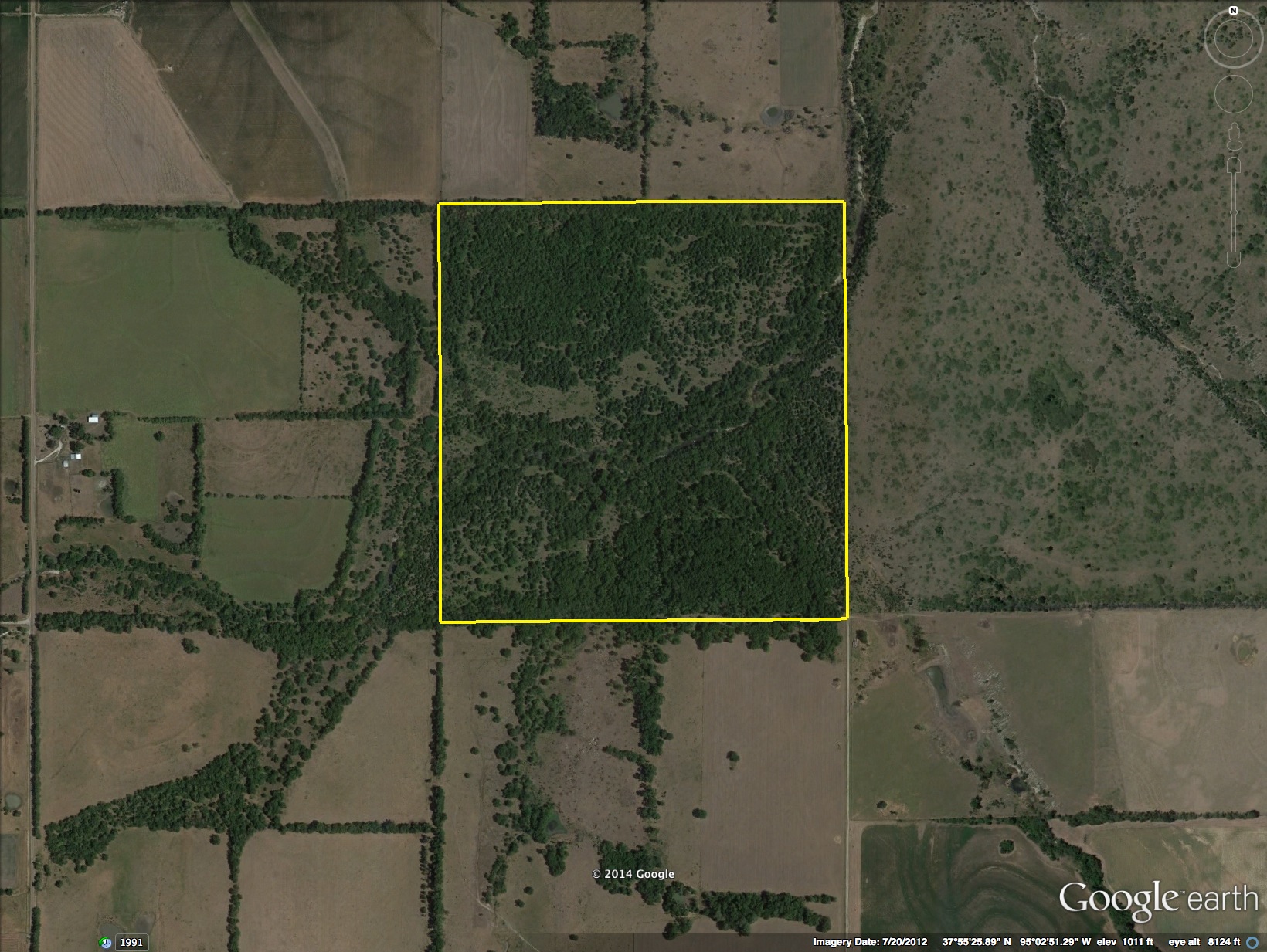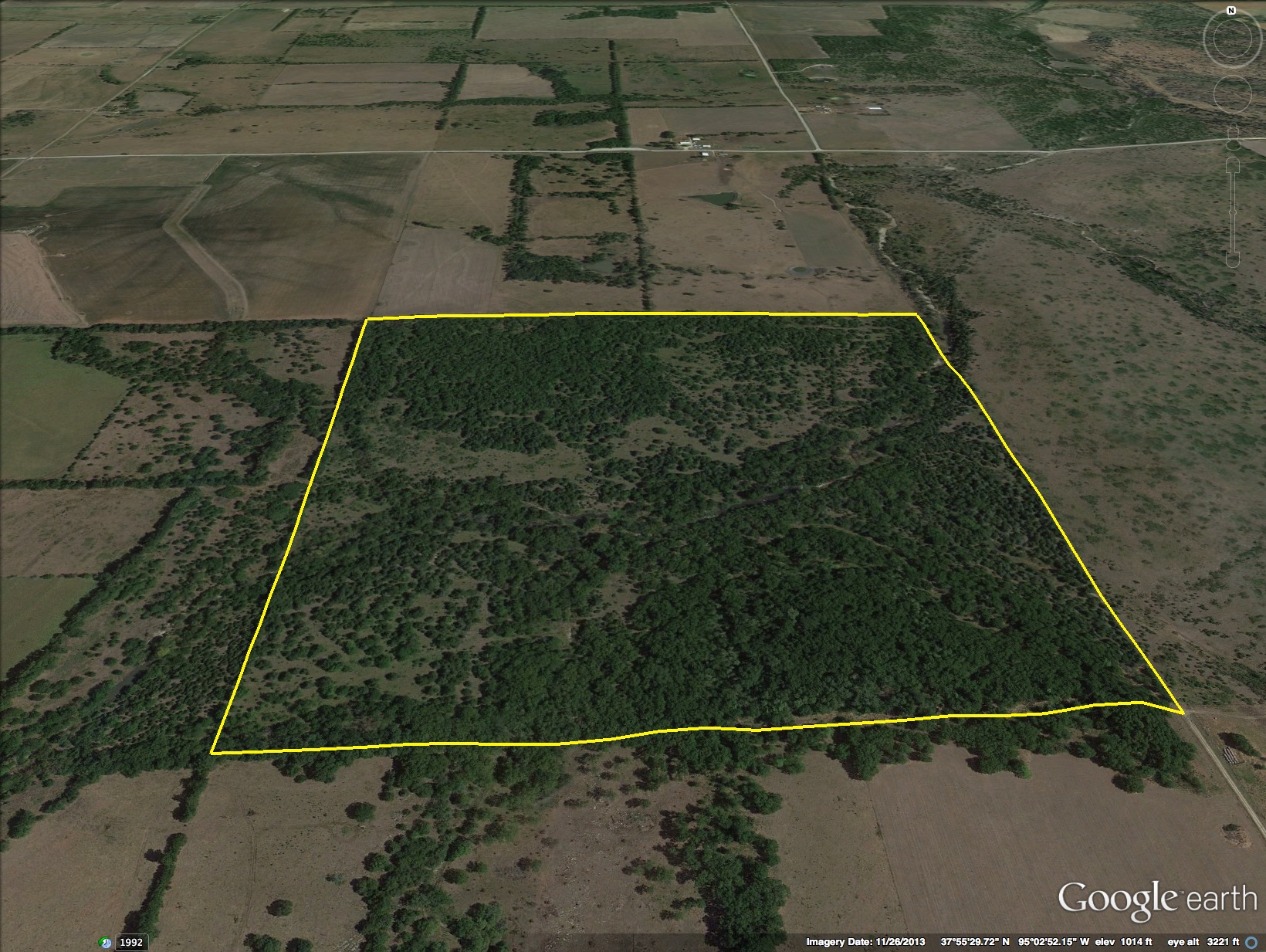 - Big timber surrounding a flowing creek that always has water and cuts through heart of farm