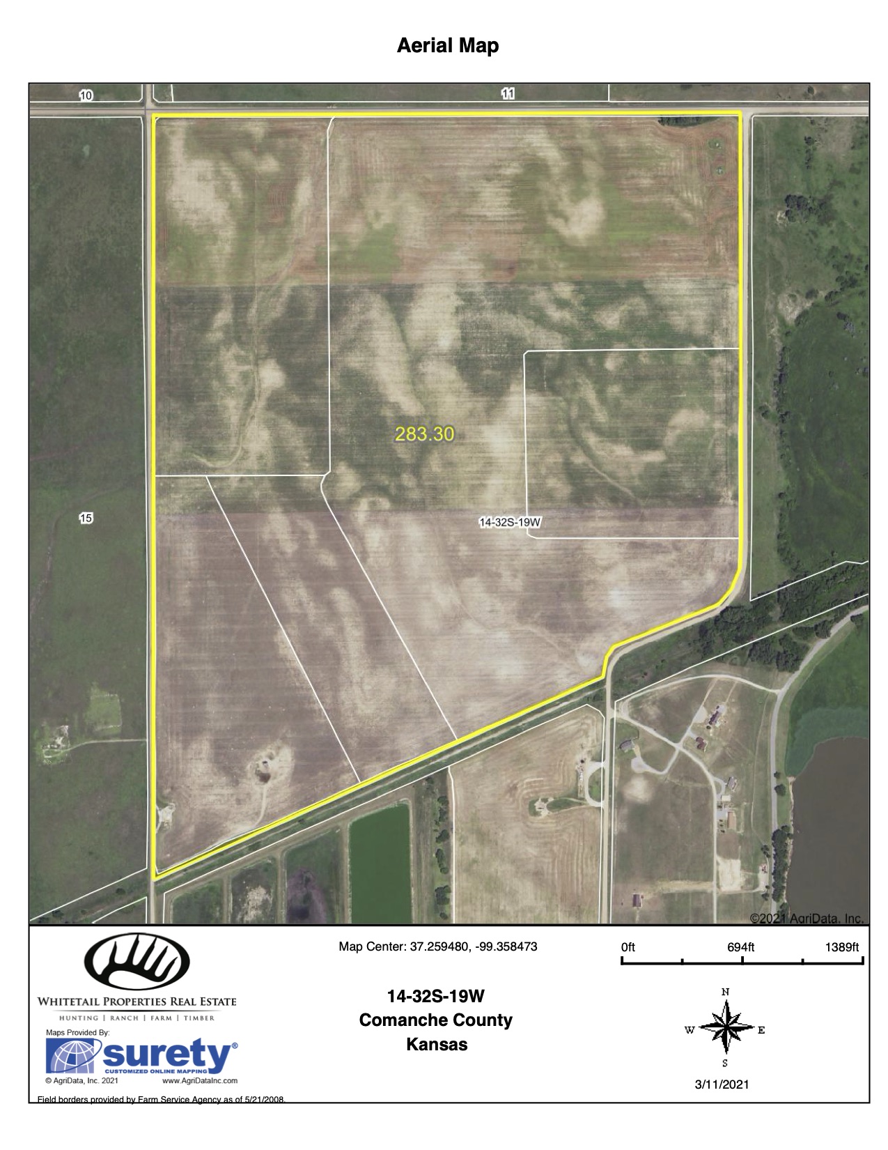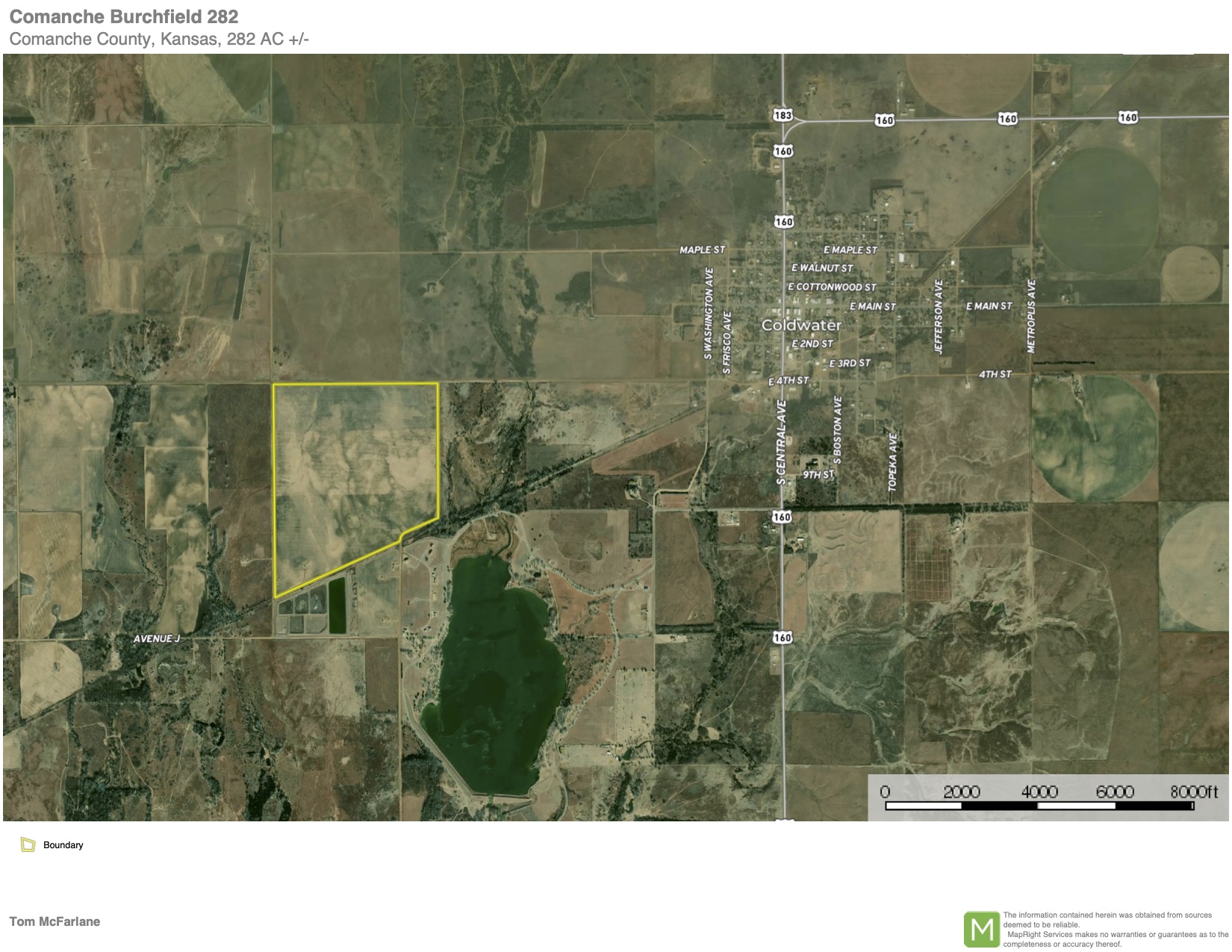 Located just 1 mile west of the town of Coldwater and near the Coldwater lake, this tillable tract is almost all tillable with quality soils. With 282 acres total and 280 acres in production, this property will make for strong addition for any farming operation locally. The farm has great access with county road frontage on 3 sides and retired railroad right of way on the south end. There is currently about ⅓ of the acres in wheat and the remaining acres have been laid out and are still in stubble from last summer. The majority of the soils are Class III with a strong percentage being both Case and Clark clay loams. The farm is mostly flat with just 1-2% slopes and no terraces. The property does have power available and is near the lake so a build site would be an option if so desired. Please contact the listing agent for any additional information.