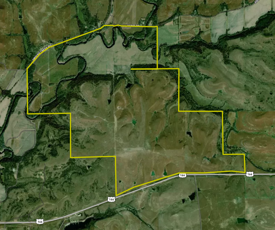 This ranch lies in an area made up of large landowners and little hunting pressure, compared to other parts of the world. The ranch puts out a significant income with 265 acres of bottom ground tillable and a pasture lease of the open grassland on the south end of the ranch. The Rancher renting the grass is running a yearling operation which runs from April to August, giving the grass plenty of time to recover each year. It’s very common to see a hundred deer on a trip around the perimeter of the property. With multiple access points from paved highway and paved county roads on the North and South ends of the Ranch, huntability could not be any better. An older but updated farm house also makes for a comfortable stay for hunters or a family residence.