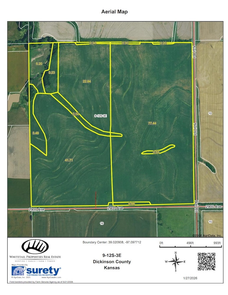 Offering a chance to own a nice tillable quarter in northern Dickinson County. This tract consists primarily of Class II Crete Silty Loam, great for any crops the area allows. All acres are currently planted to a cover crop and will be ready for spring planting. Possession is flexible and will be determined at the time of the sale. Don't miss out on this!