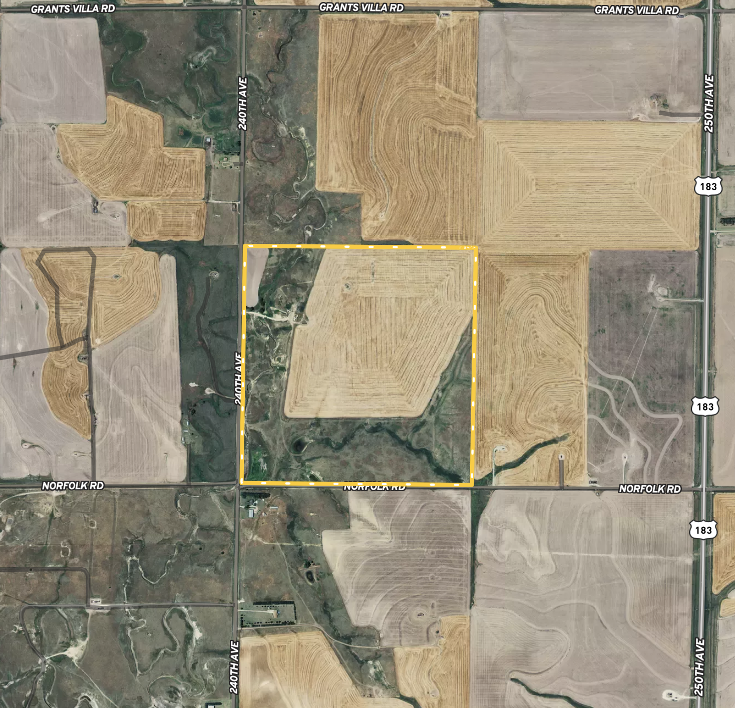 Just 7 miles South of Hays, KS sits this nice tract of cropland and native grass pastureland with fertile cropland soils, good fence, and a nice pond right off 240th Ave. With over 81 acres of tillable land consisting primarily of Class II silt loam soils this farm will make a very nice addition to a local farm operator who could use some grass for grazing livestock as well. The 75 acres of fenced pasture has a nice sized pond near the center and another drainage at the very SW corner which holds a good amount of water as well. The fences are in great shape and there is good access to the farm off of both 240th Ave and Norfolk Road. This farm is located only 1/2 mile West of HWY 183! If you are in the market for some good pasture or cropland, this property has both! Give us a call!