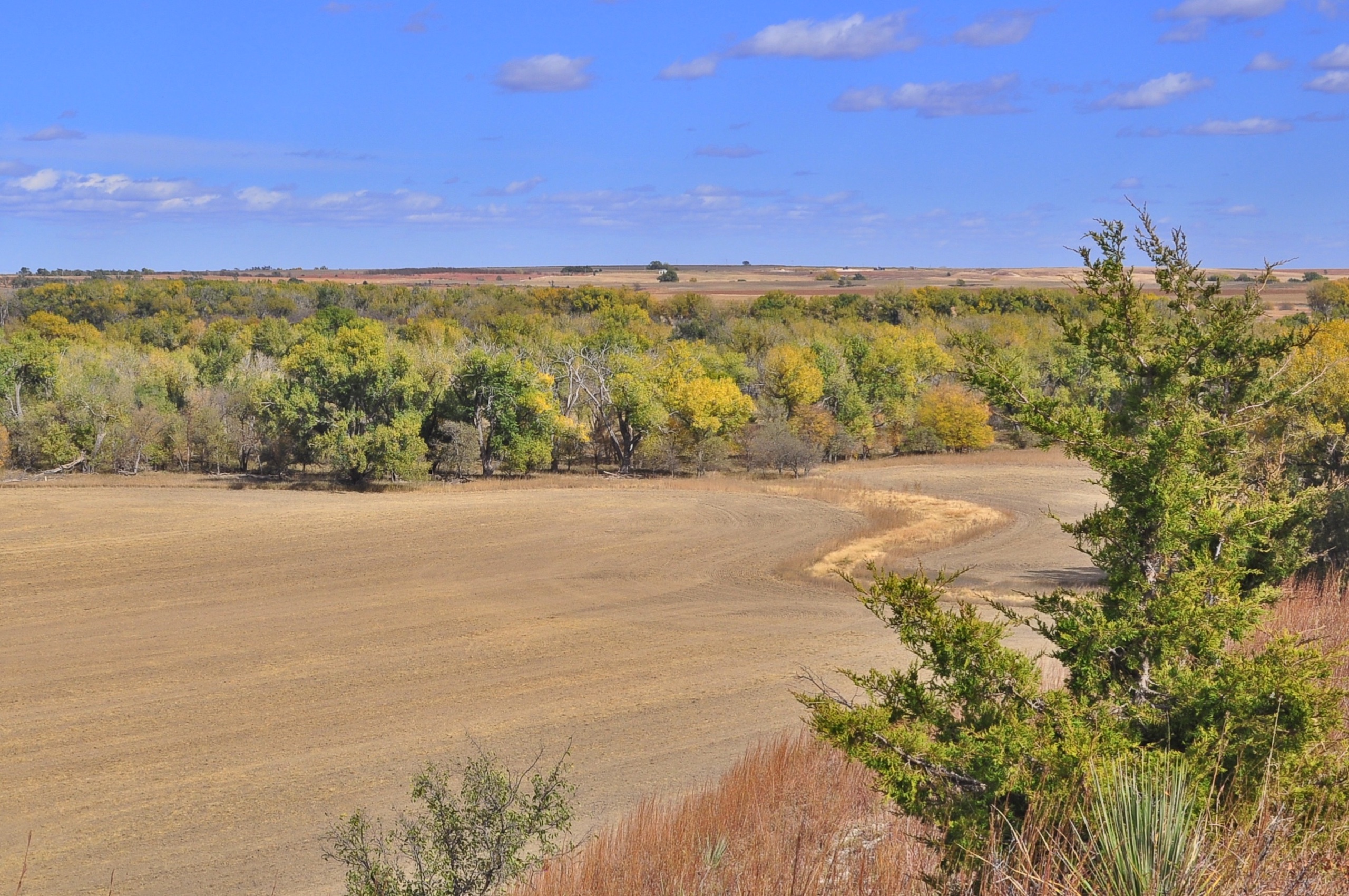 The turkey hunting on this property is equally as good as the whitetail hunting. Several Rio Grande turkeys roost in the tall cottonwood trees within the Saline River bottom and fly down in the mornings to feed and strut in the fields.